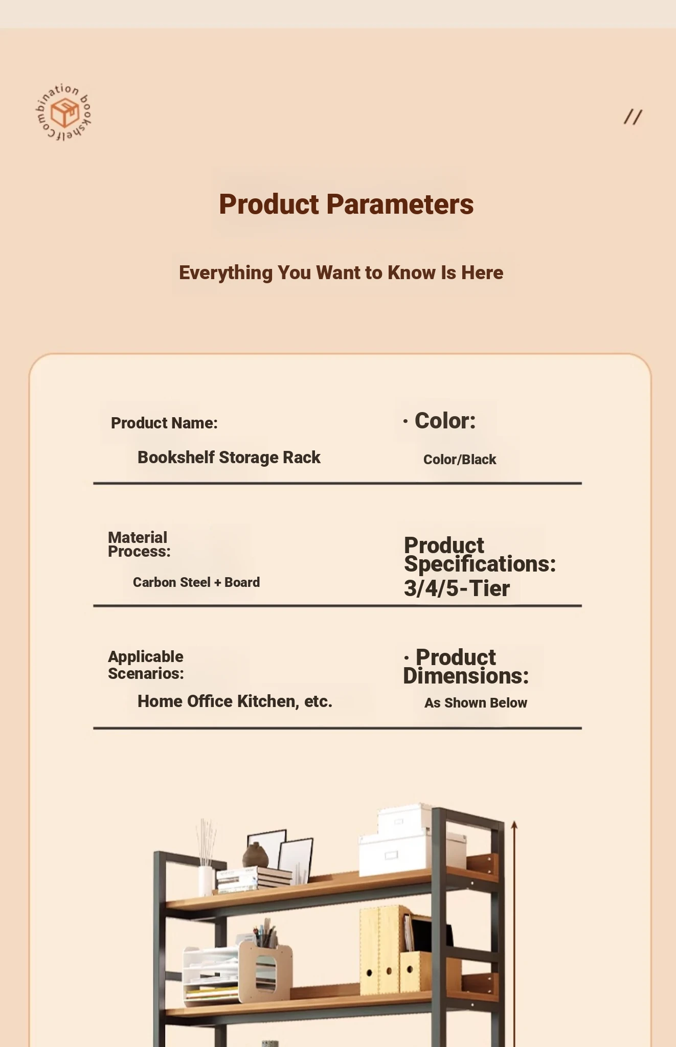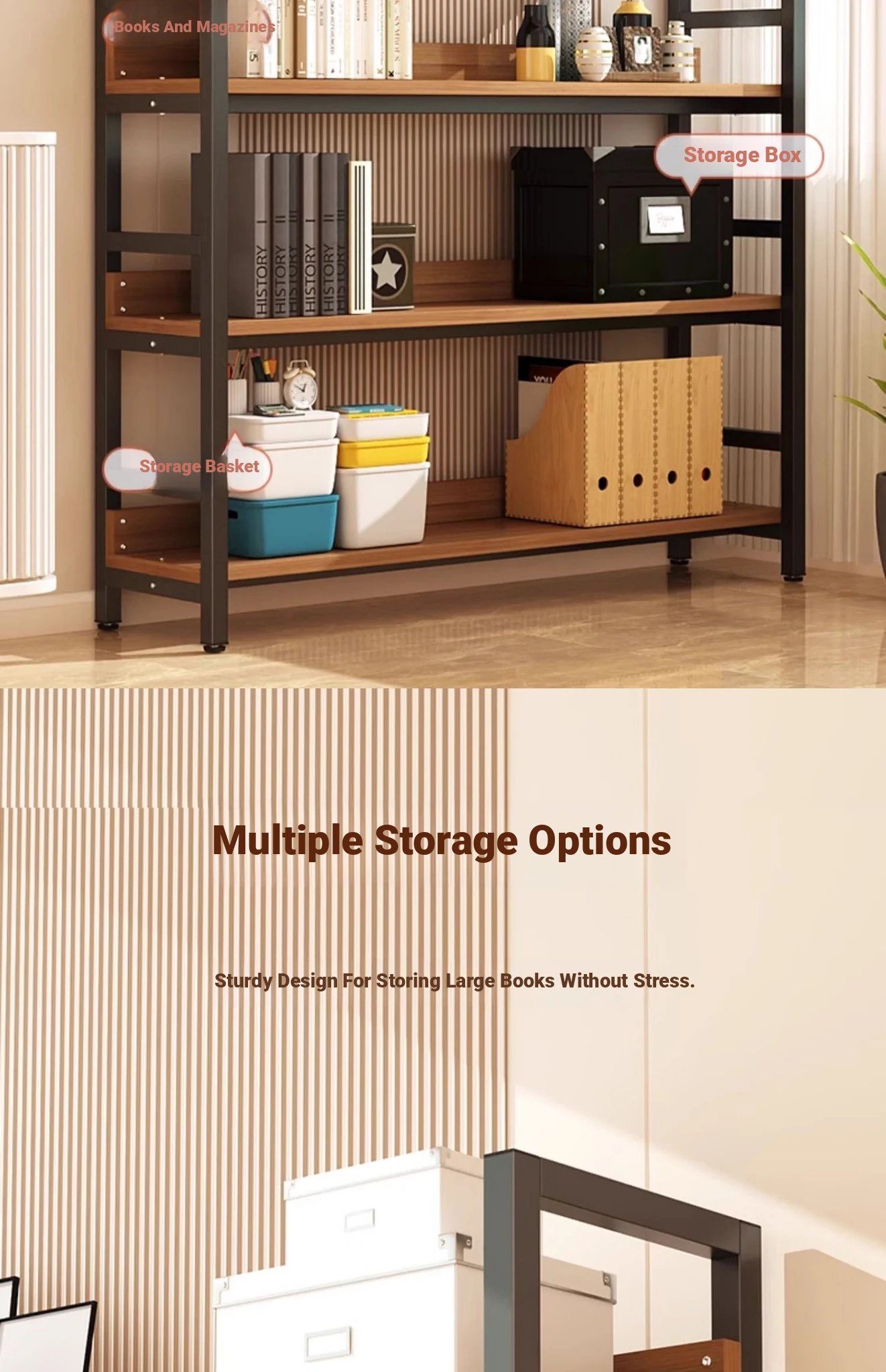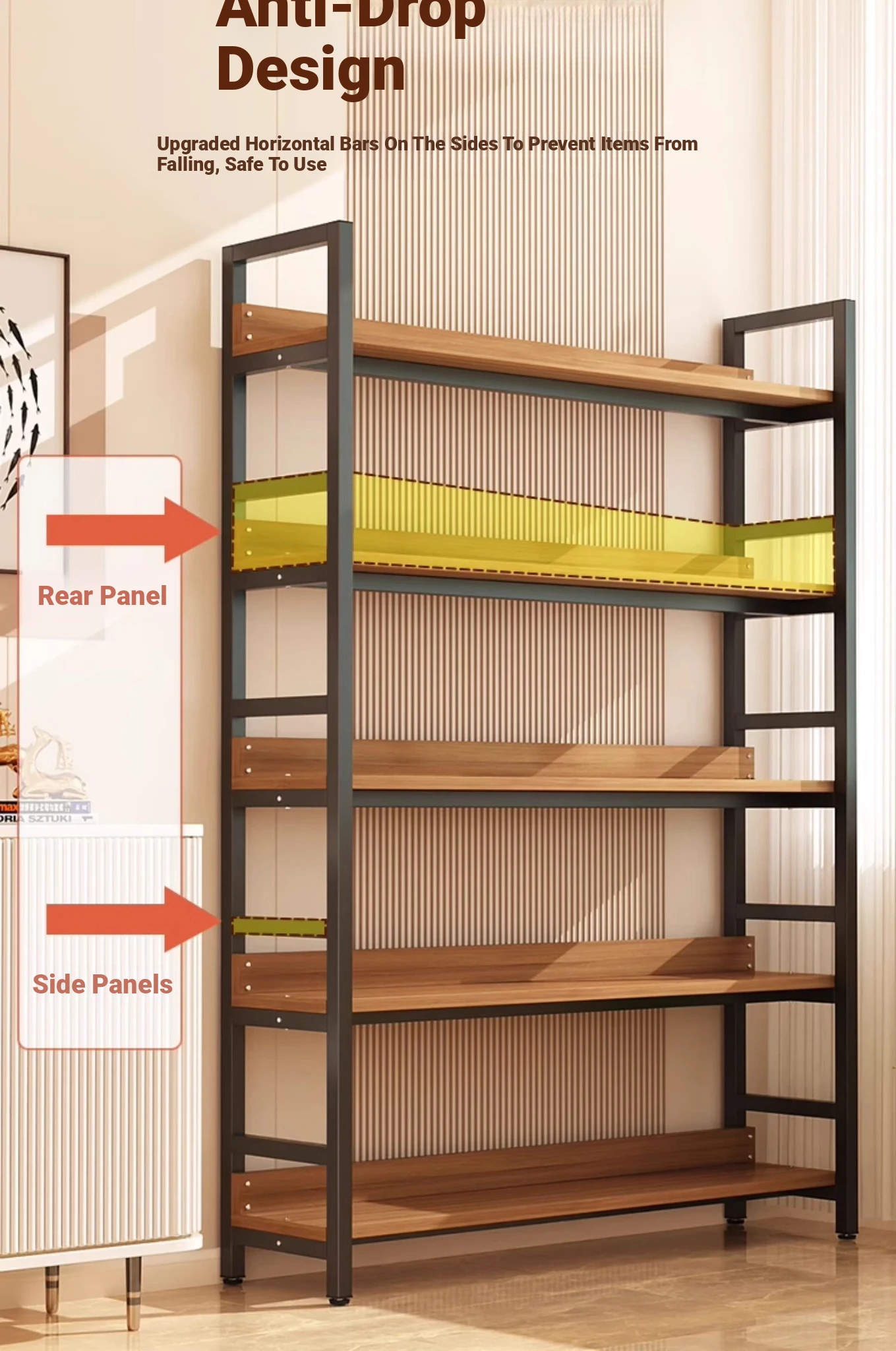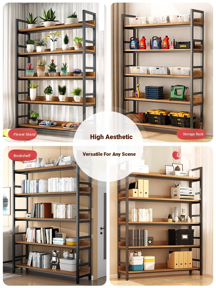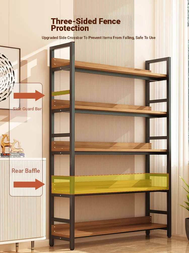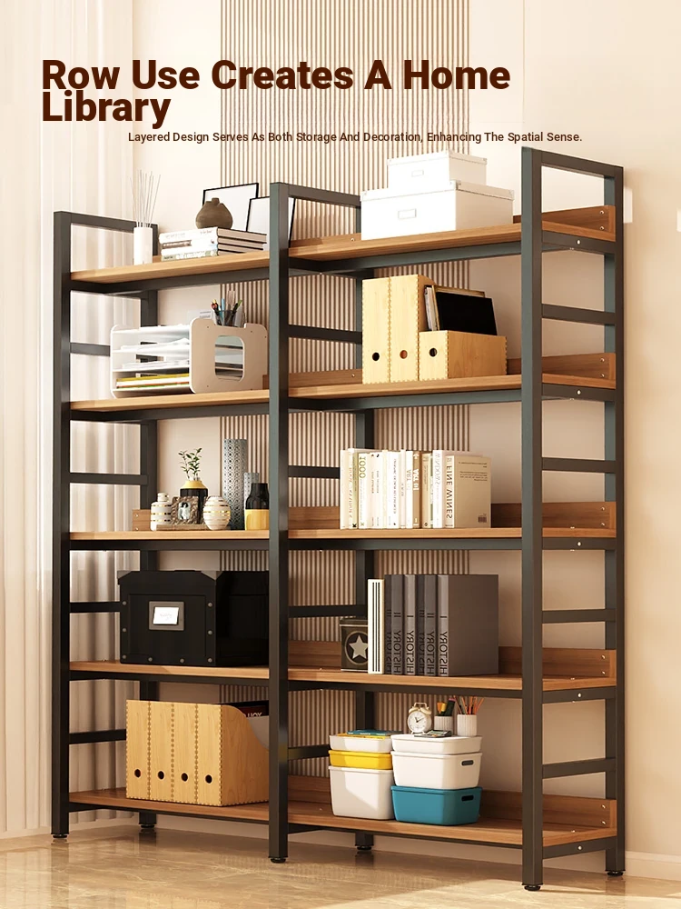 Multi-Layer Steel-Wood Bookshelf and Storage Rack - Stylish Floor Standing Display Cabinet for Home, Living Room, and Kids' Rooms - Perfect for Organizing and Showcasing Books and Treasures!