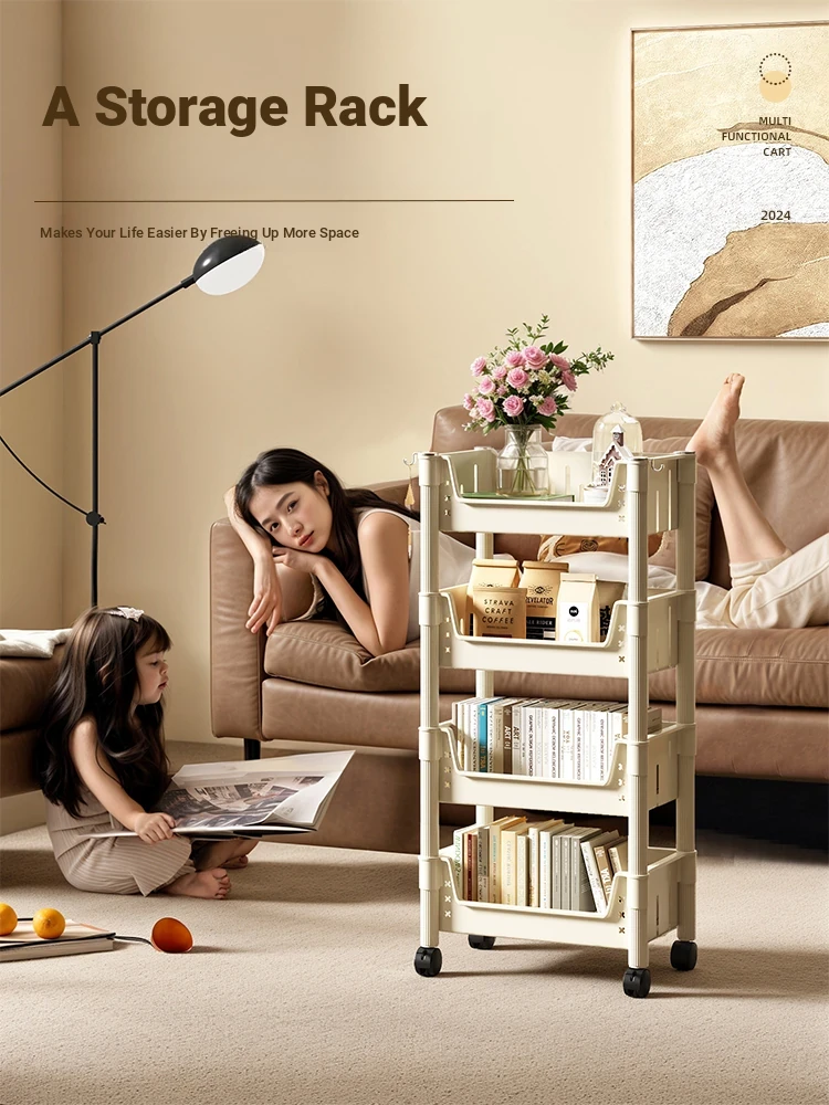 Multi-Layer Storage Rack - Mobile Rolling Cart for Living Room, Ideal for Organizing Children's Toys and Miscellaneous Items, Easy-to-Use Home Storage Solution