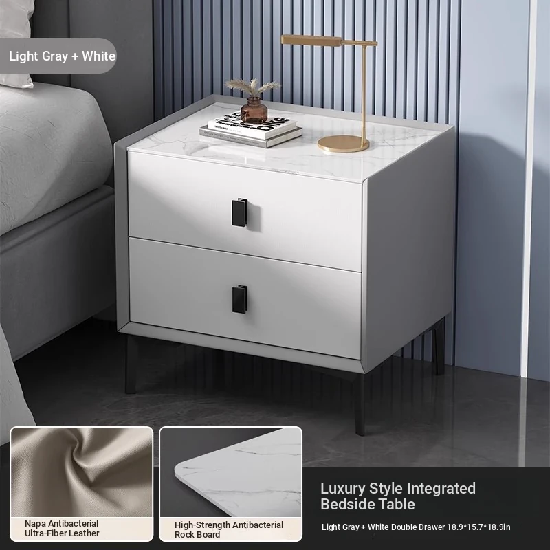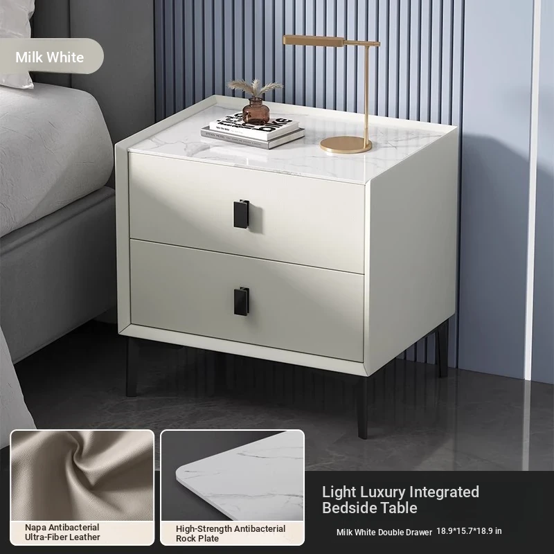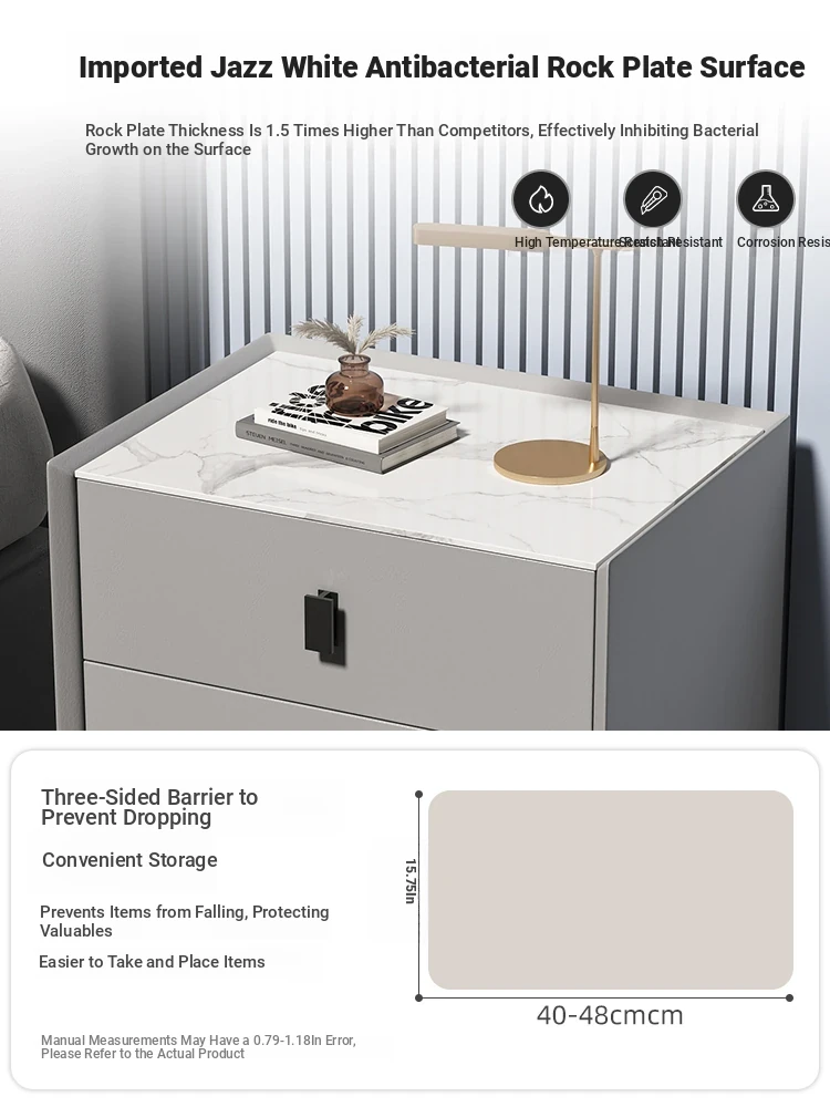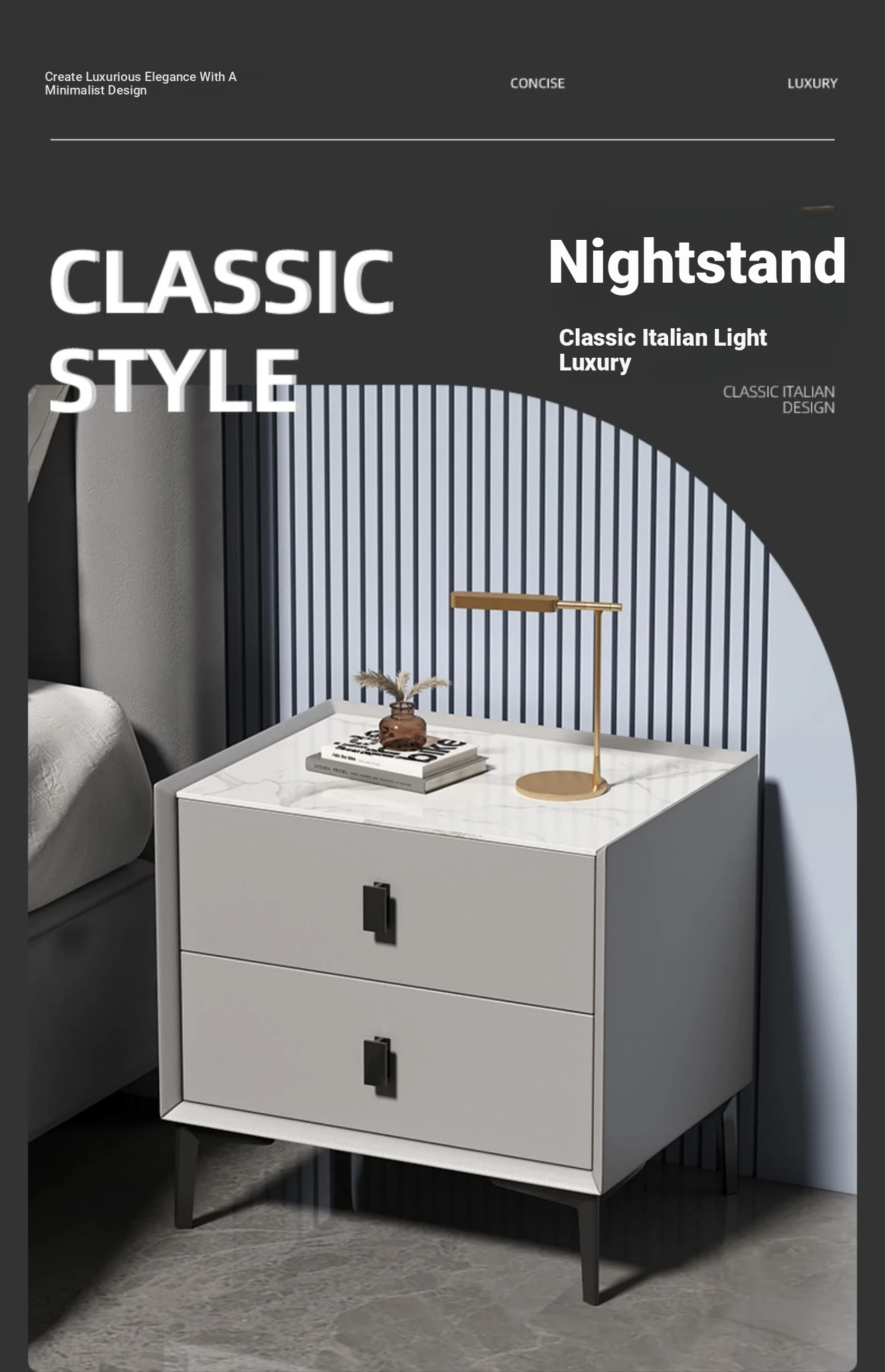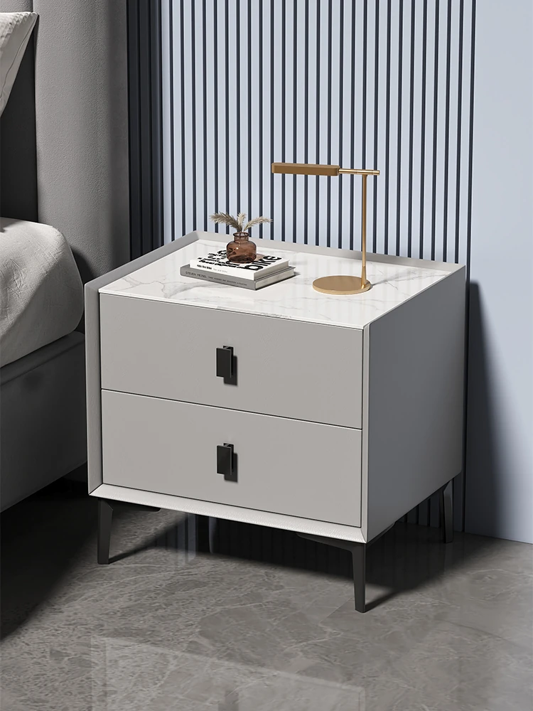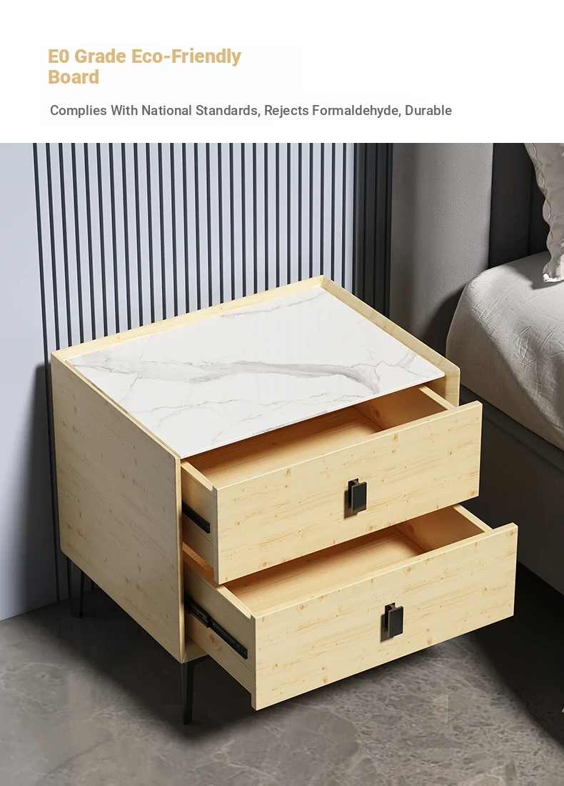 Sangmeng Solid Wood Nightstand - Modern Minimalist Luxury Small Cabinet with Stone Top for Stylish Bedroom Storage