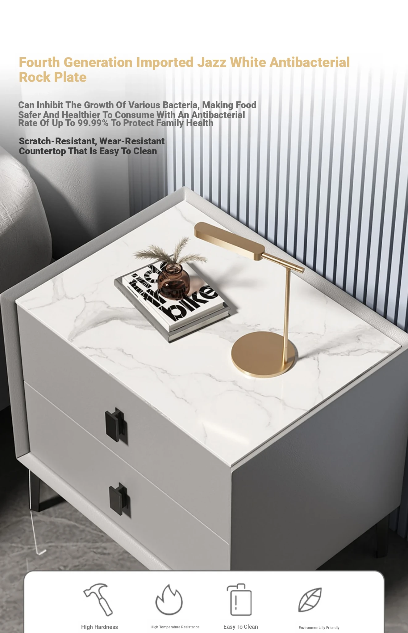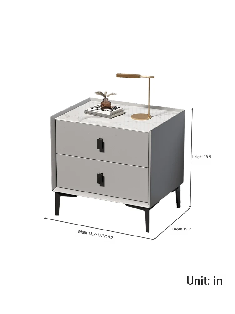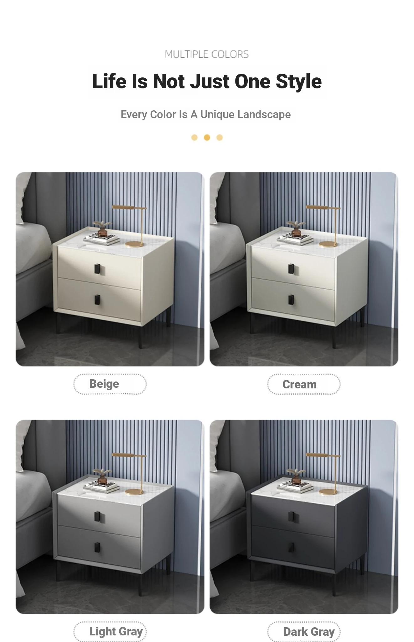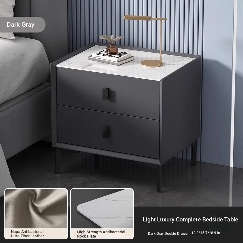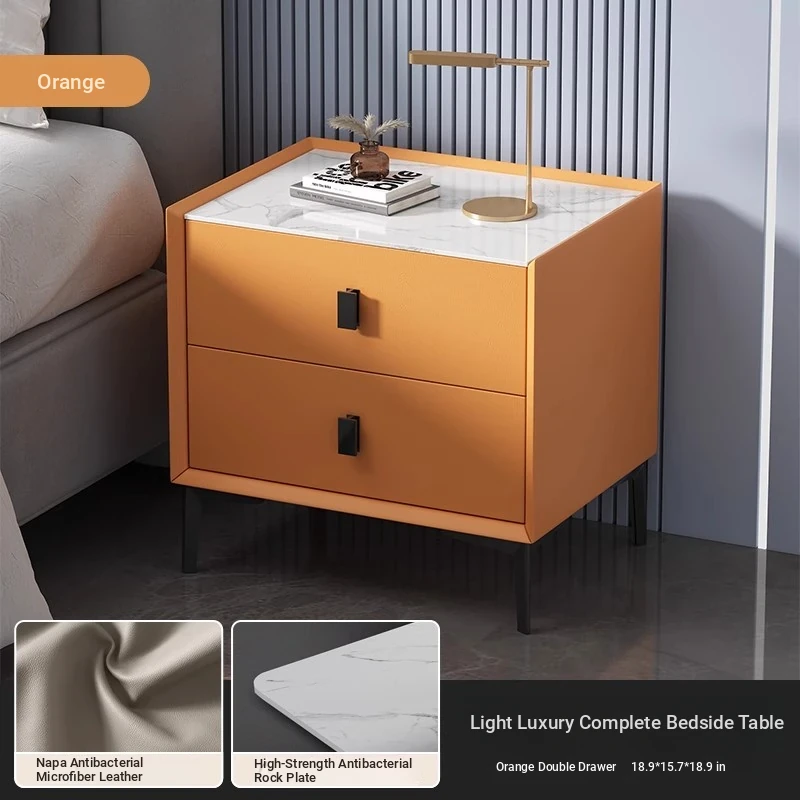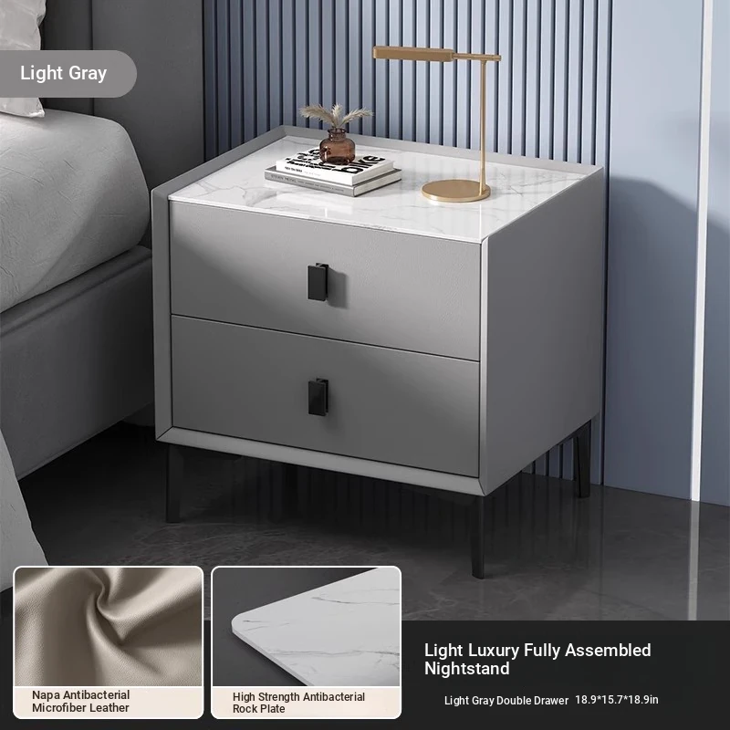 Sangmeng Solid Wood Nightstand - Modern Minimalist Luxury Small Cabinet with Stone Top for Stylish Bedroom Storage