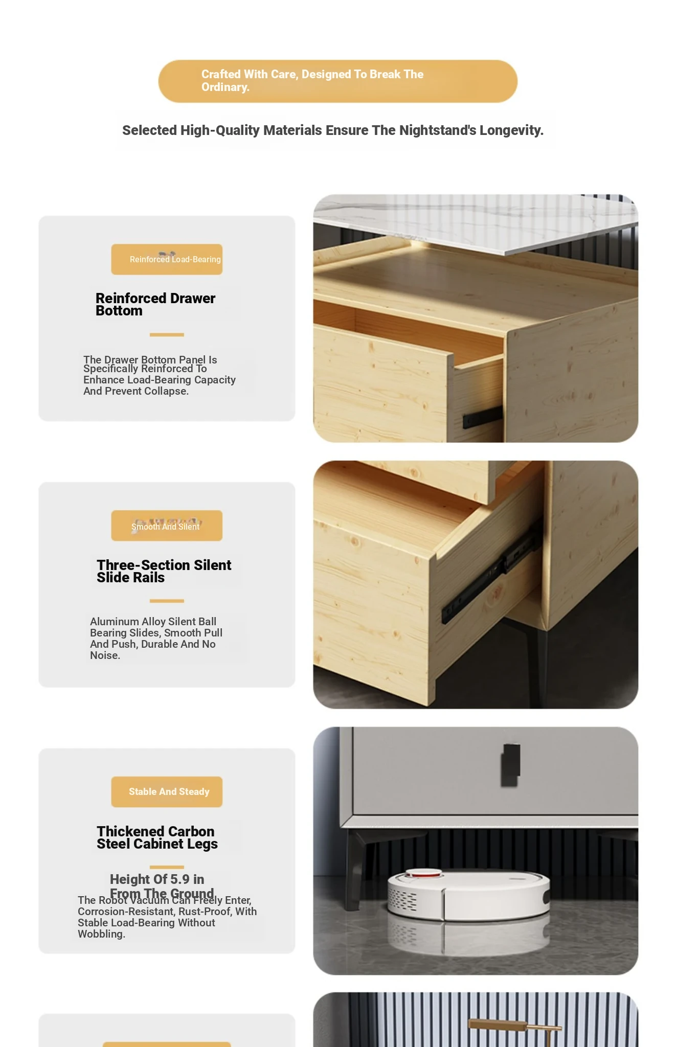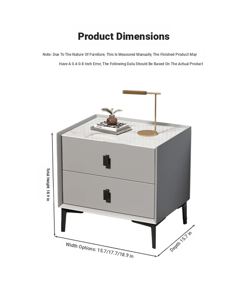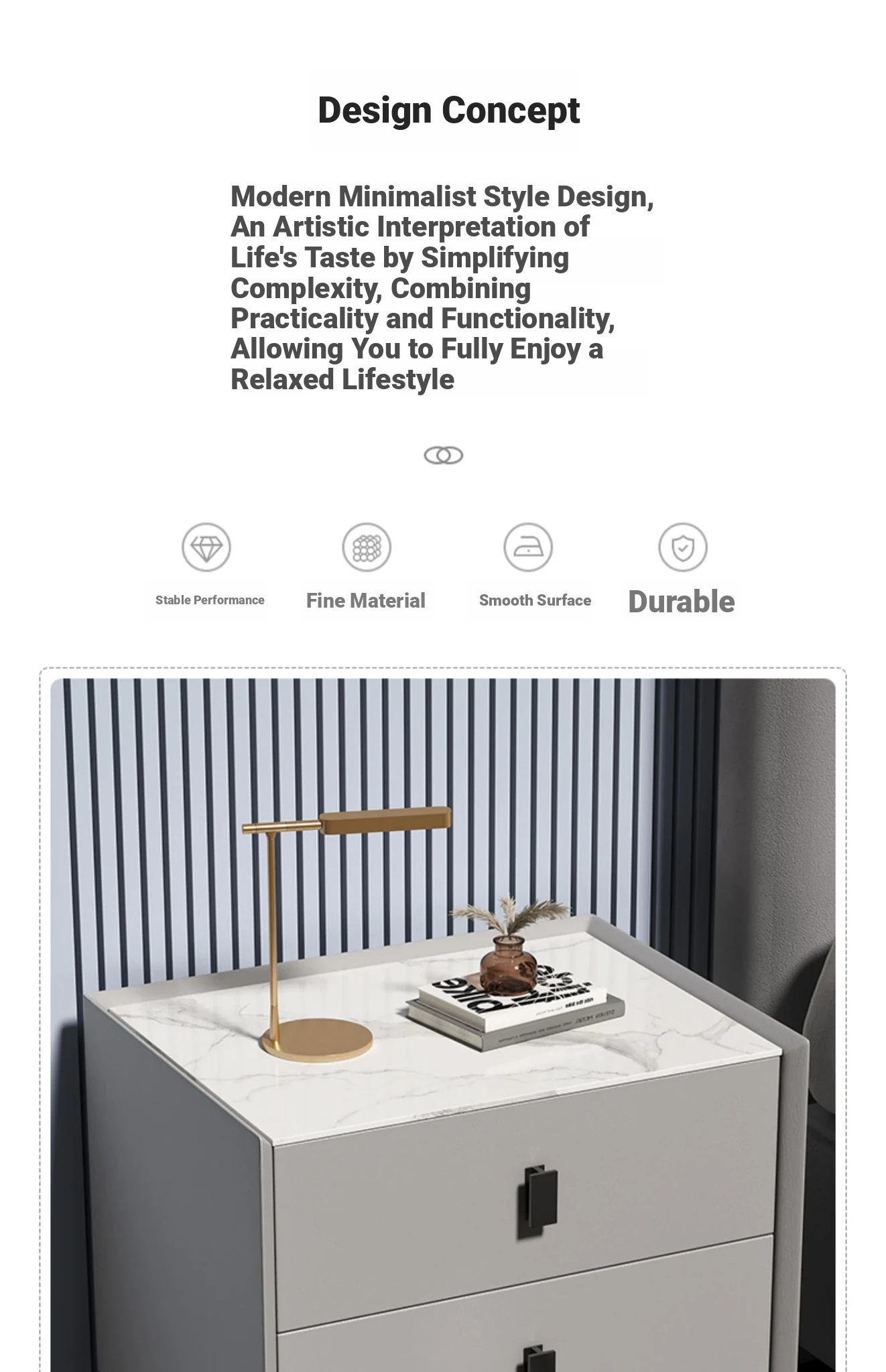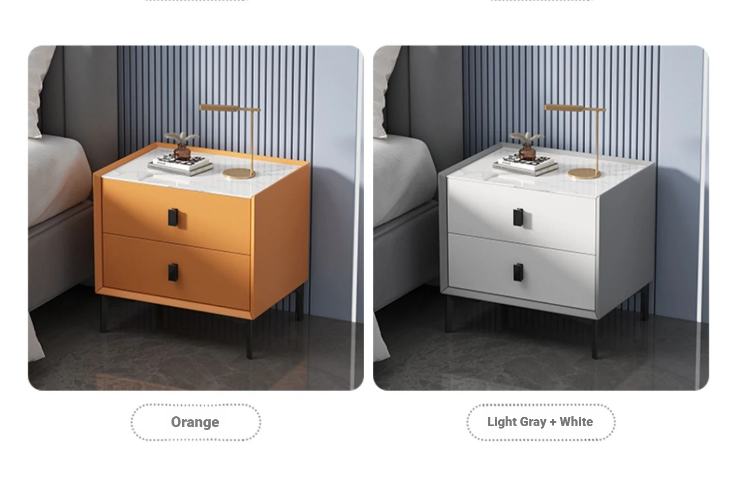 Sangmeng Solid Wood Nightstand - Modern Minimalist Luxury Small Cabinet with Stone Top for Stylish Bedroom Storage