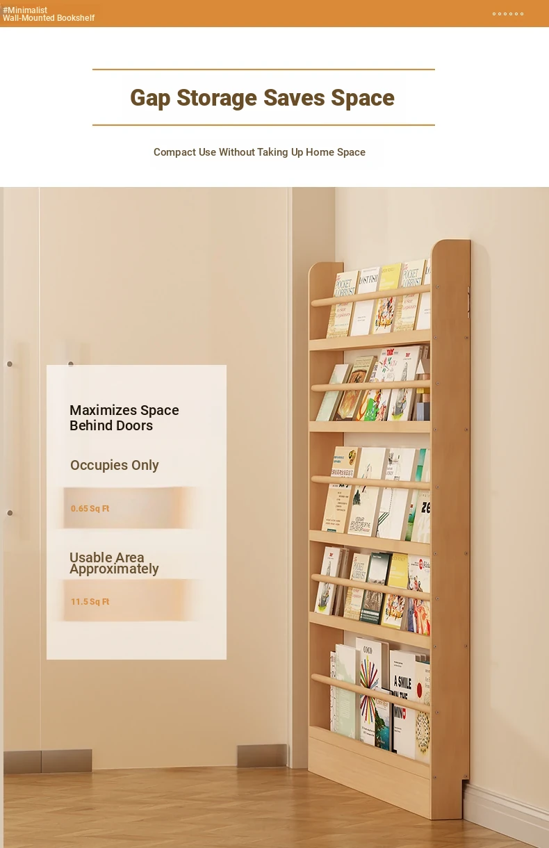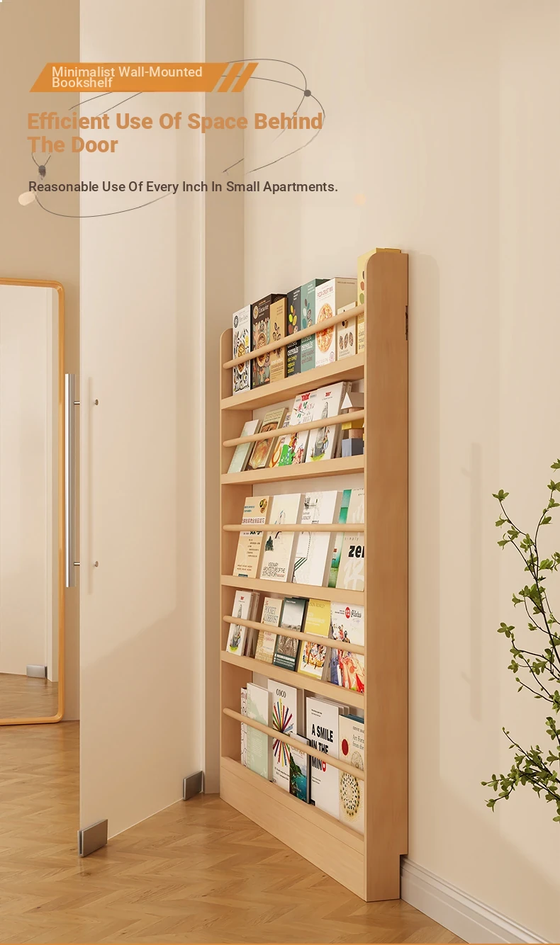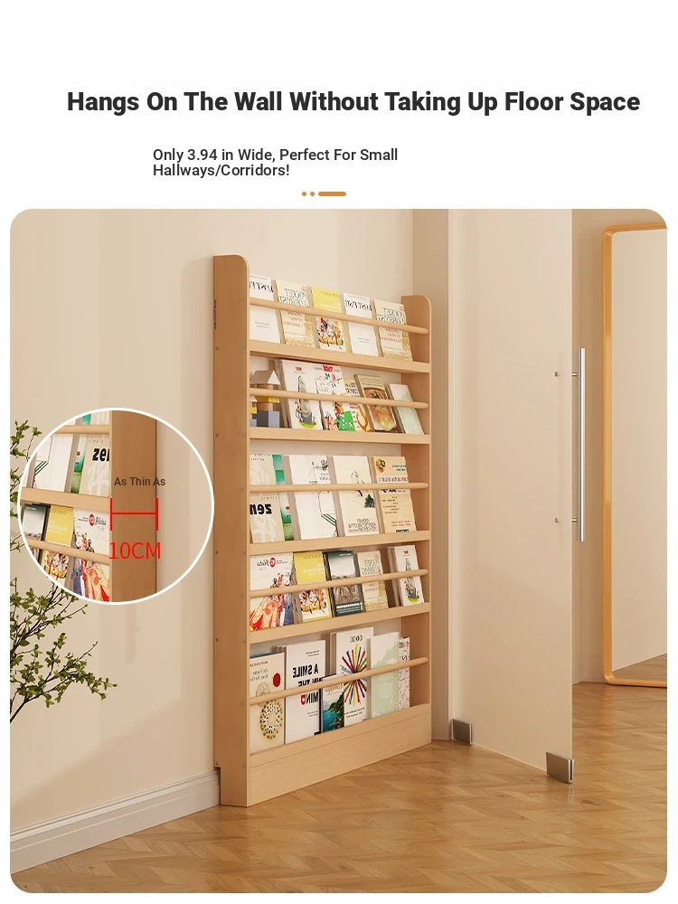 Slim Wall-Mounted Bookshelf for Kids - Ultra-Thin Solid Wood Magazine and Picture Book Rack, Perfect for Small Spaces and Easy Wall Storage!