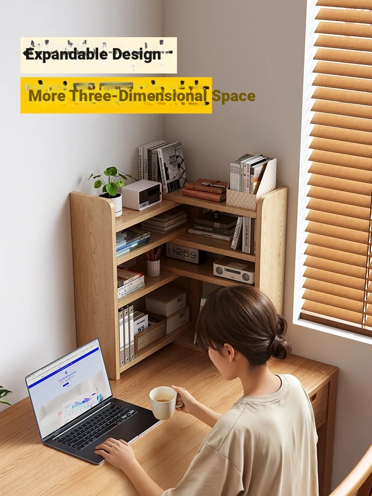 Solid Wood Desktop Storage Shelf - Expandable Corner Bookshelf for Kids, Easy Home and Office Mini Bookcase, Perfect for Organizing Your Space!