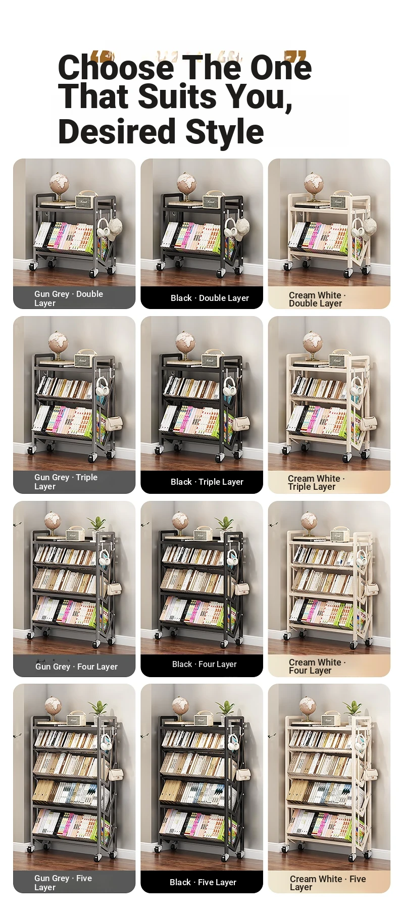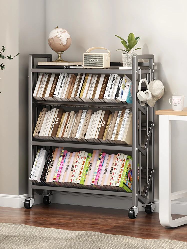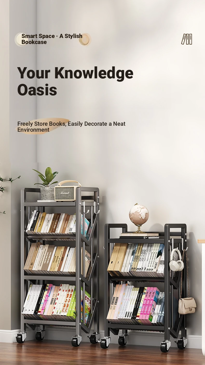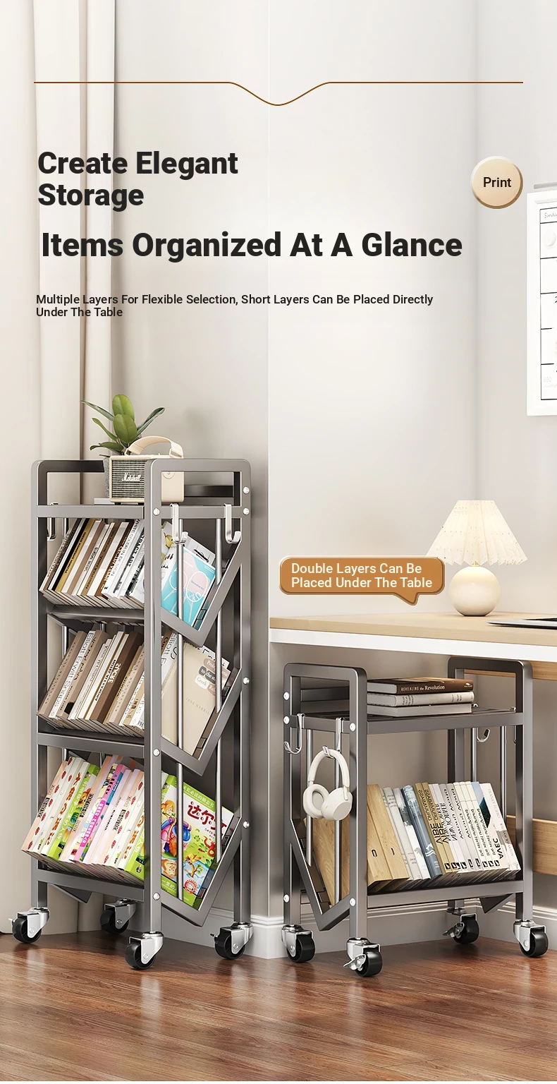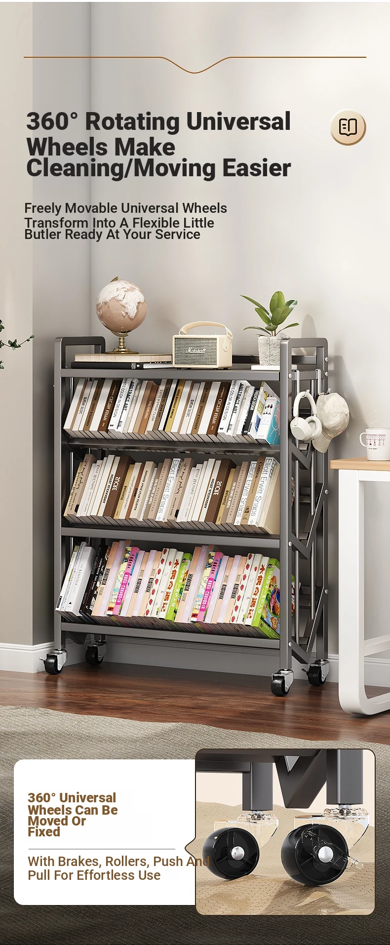 Stylish Iron Bookshelf - Floor Standing Storage Rack for Living Room, Mobile Organizer, Simple Steel Corner Shelf, Space-Saving Wall-Mounted Bookcase