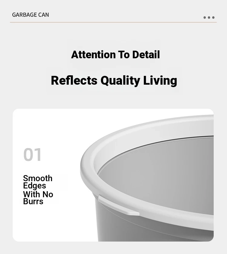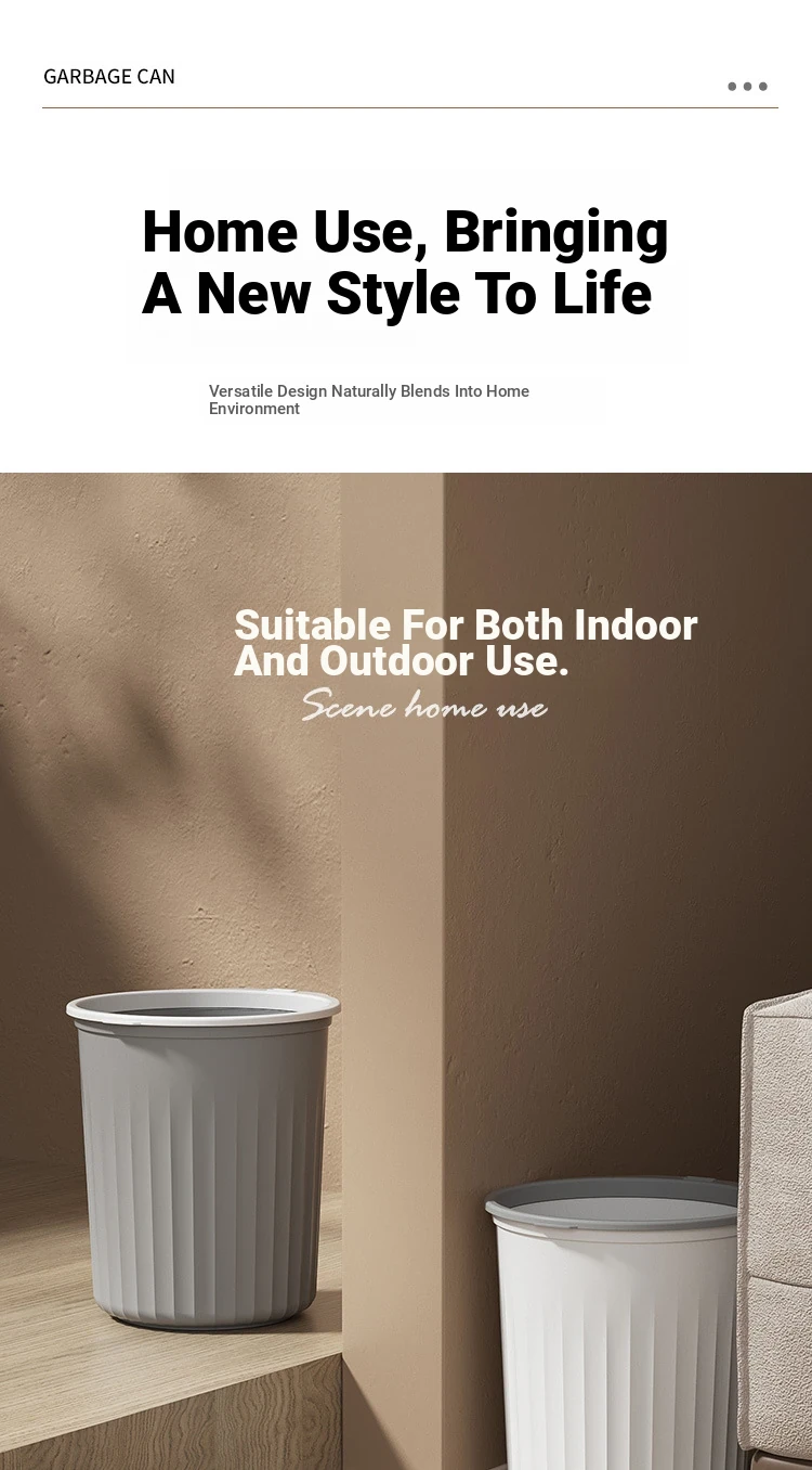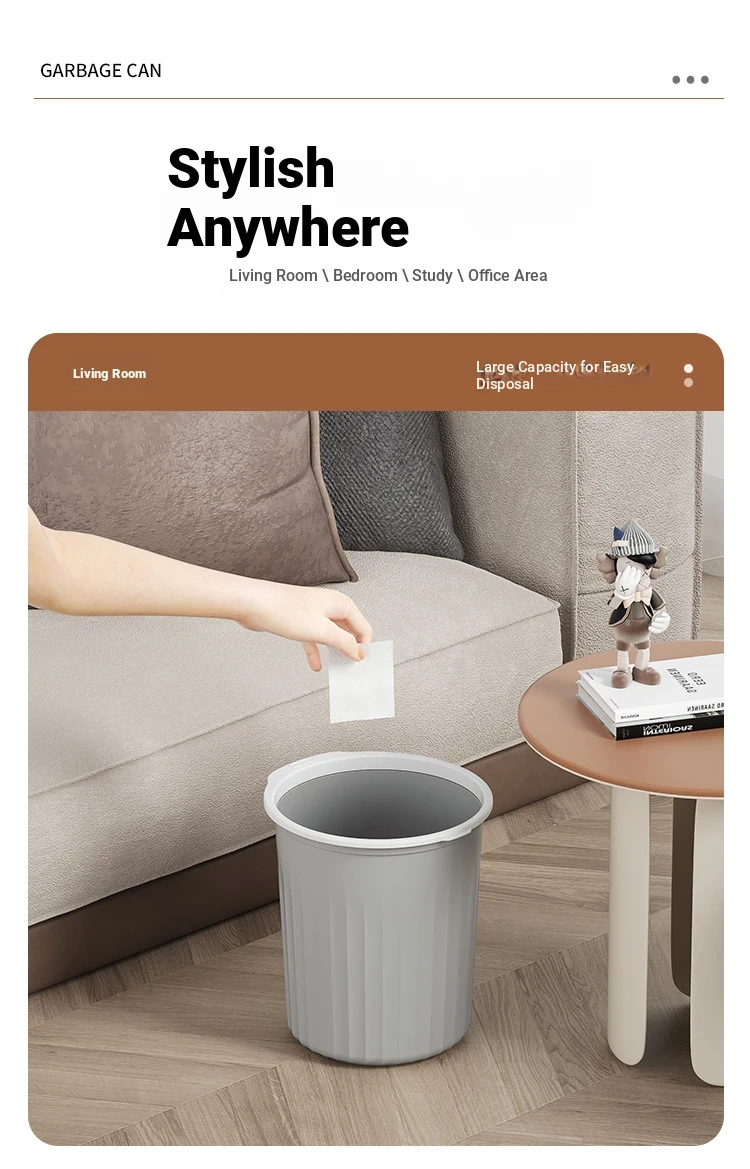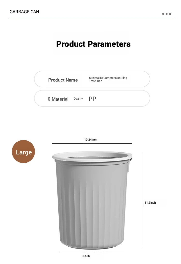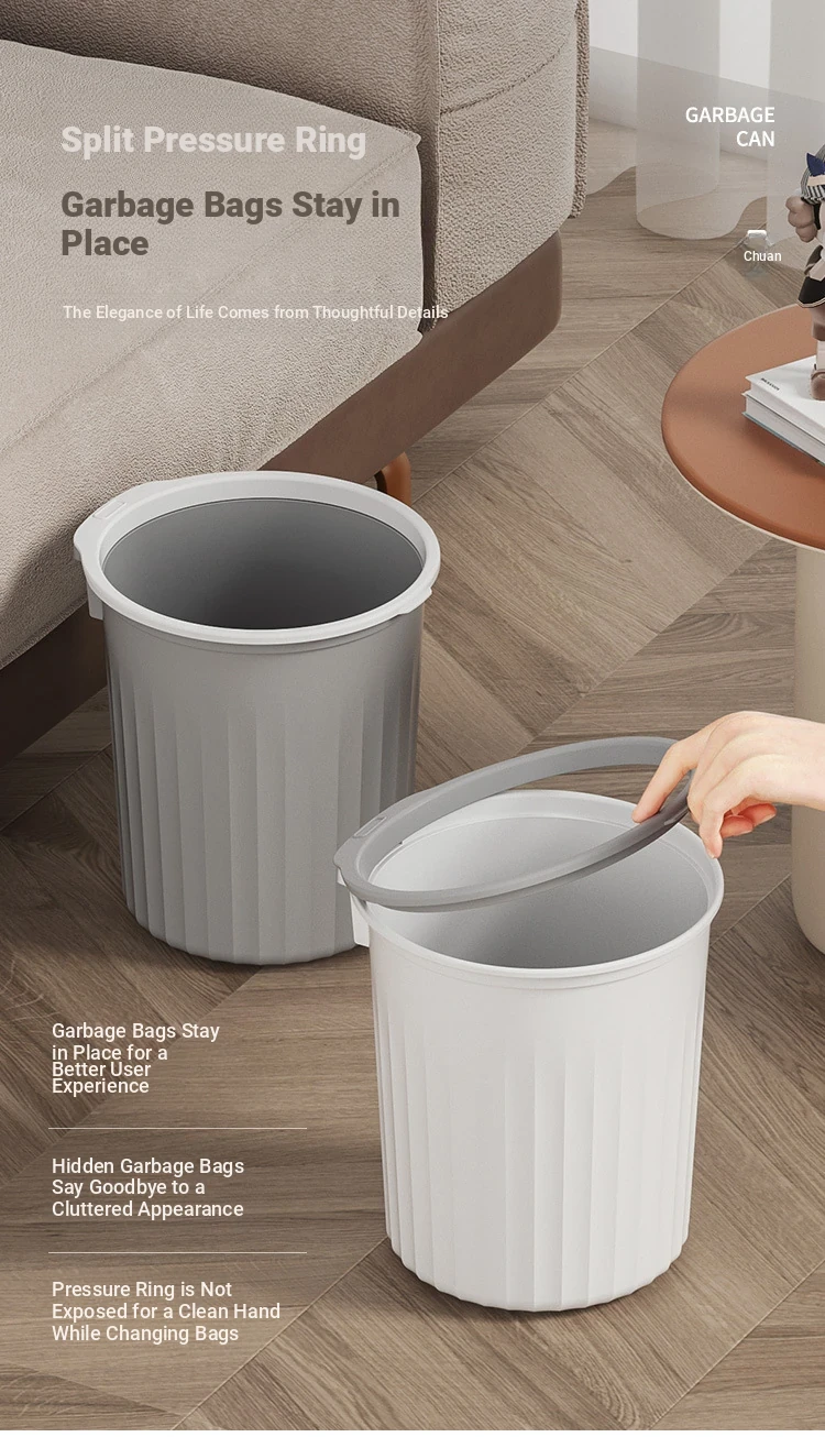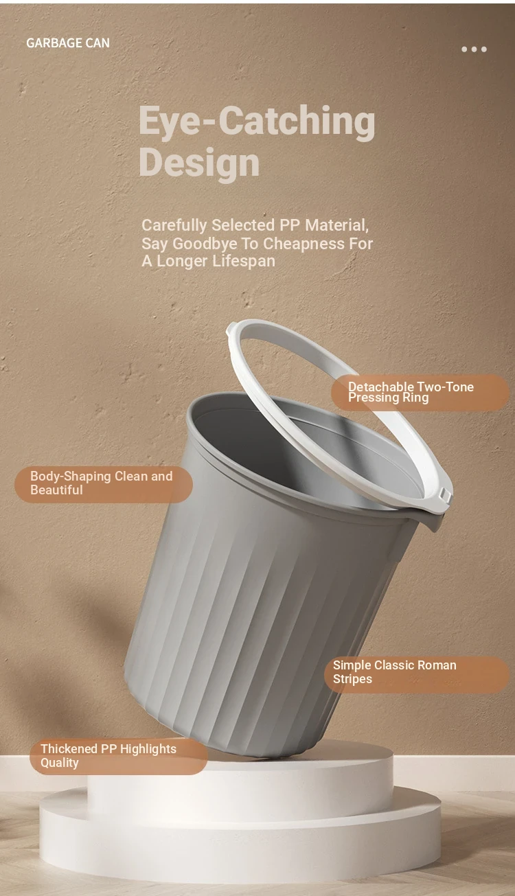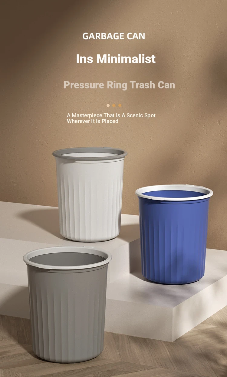 Stylish Minimalist Home Kitchen Trash Can - Versatile Plastic Waste Bin for Living Room, Bathroom, and Toilet with Integrated Press Ring