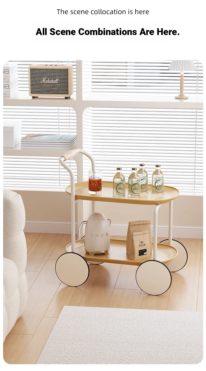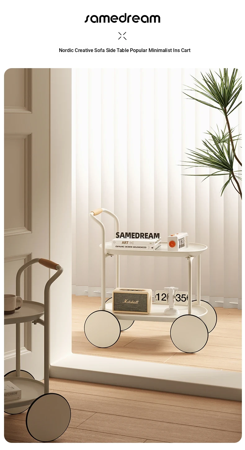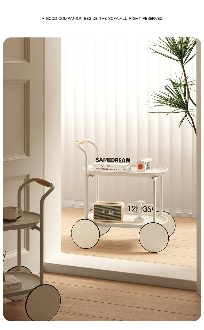 Stylish Portable Side Table - Trendy Mini Cream-Inspired Coffee Cart, Perfect for Your Sofa or Living Room! Ideal for Modern Spaces and Creative Decor!