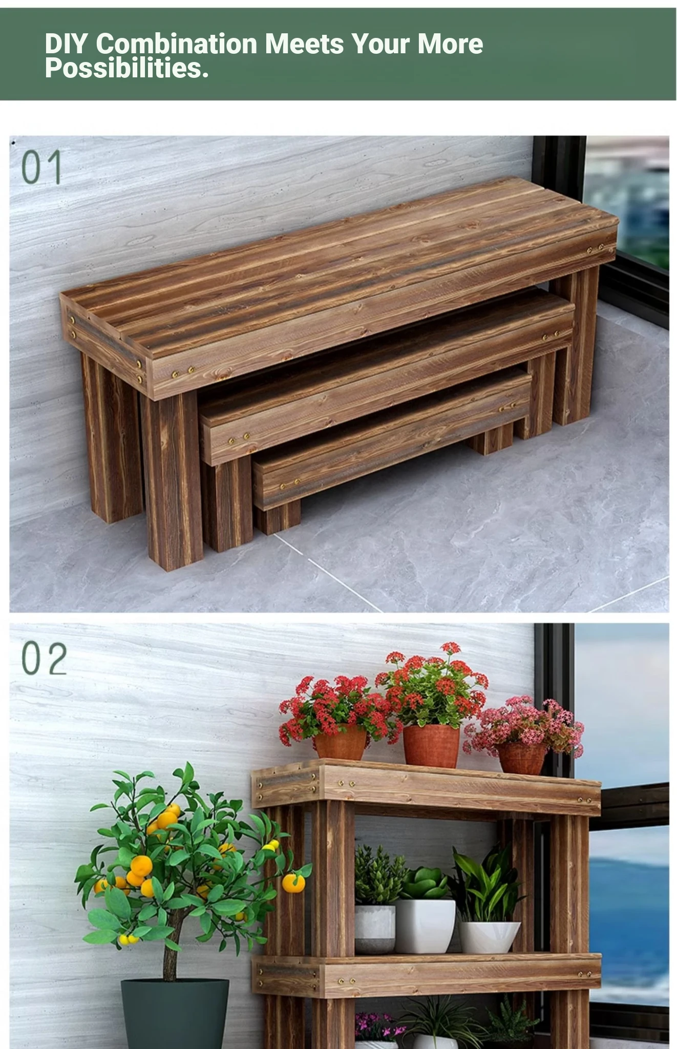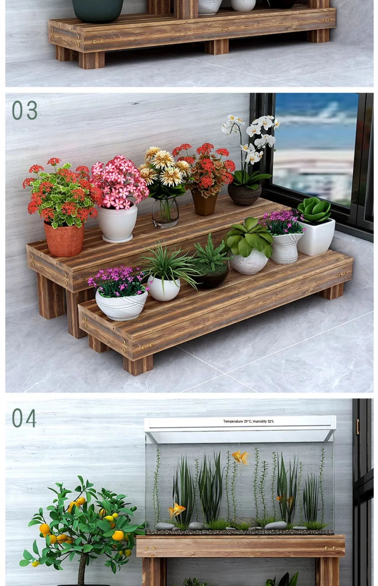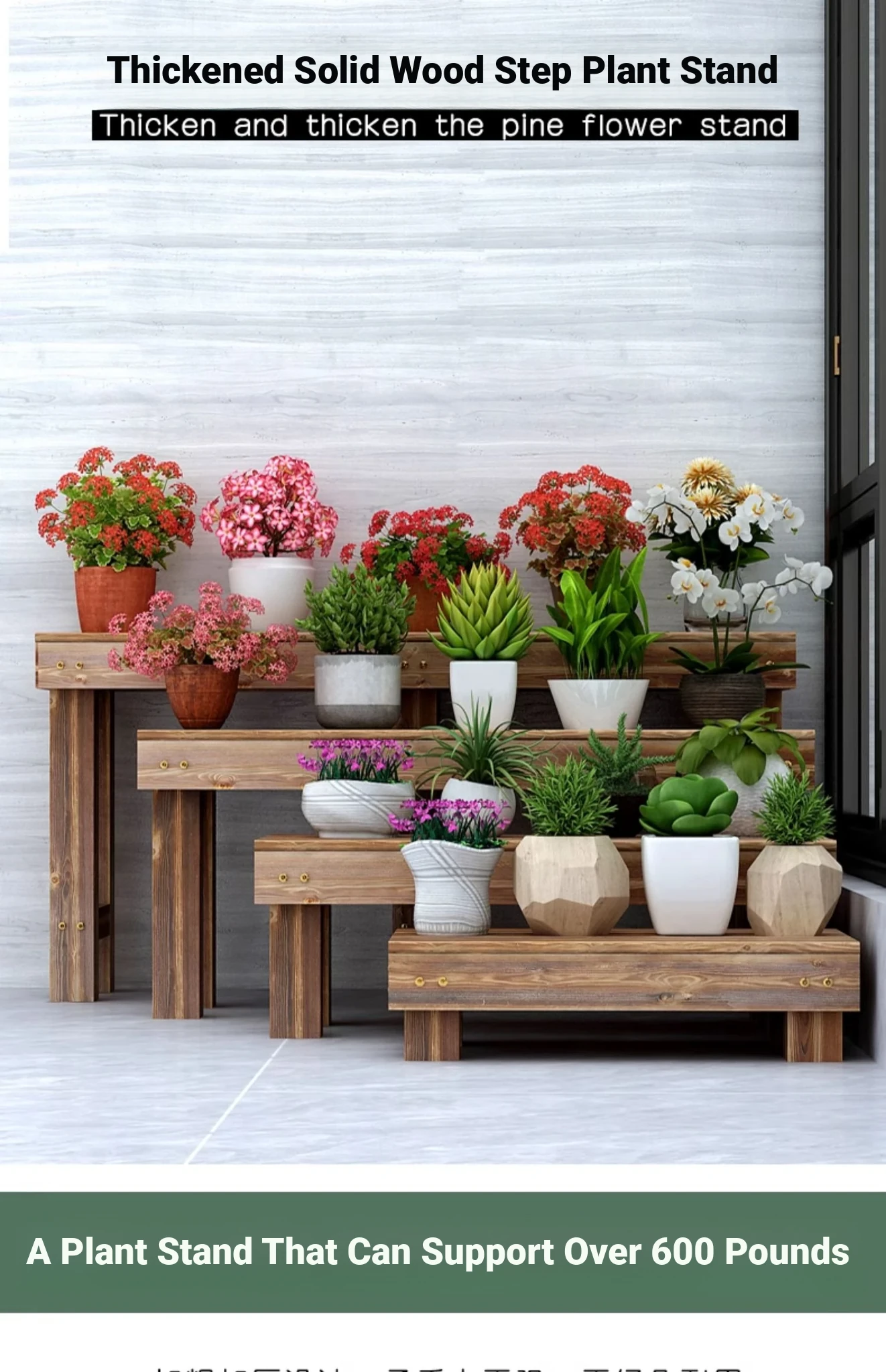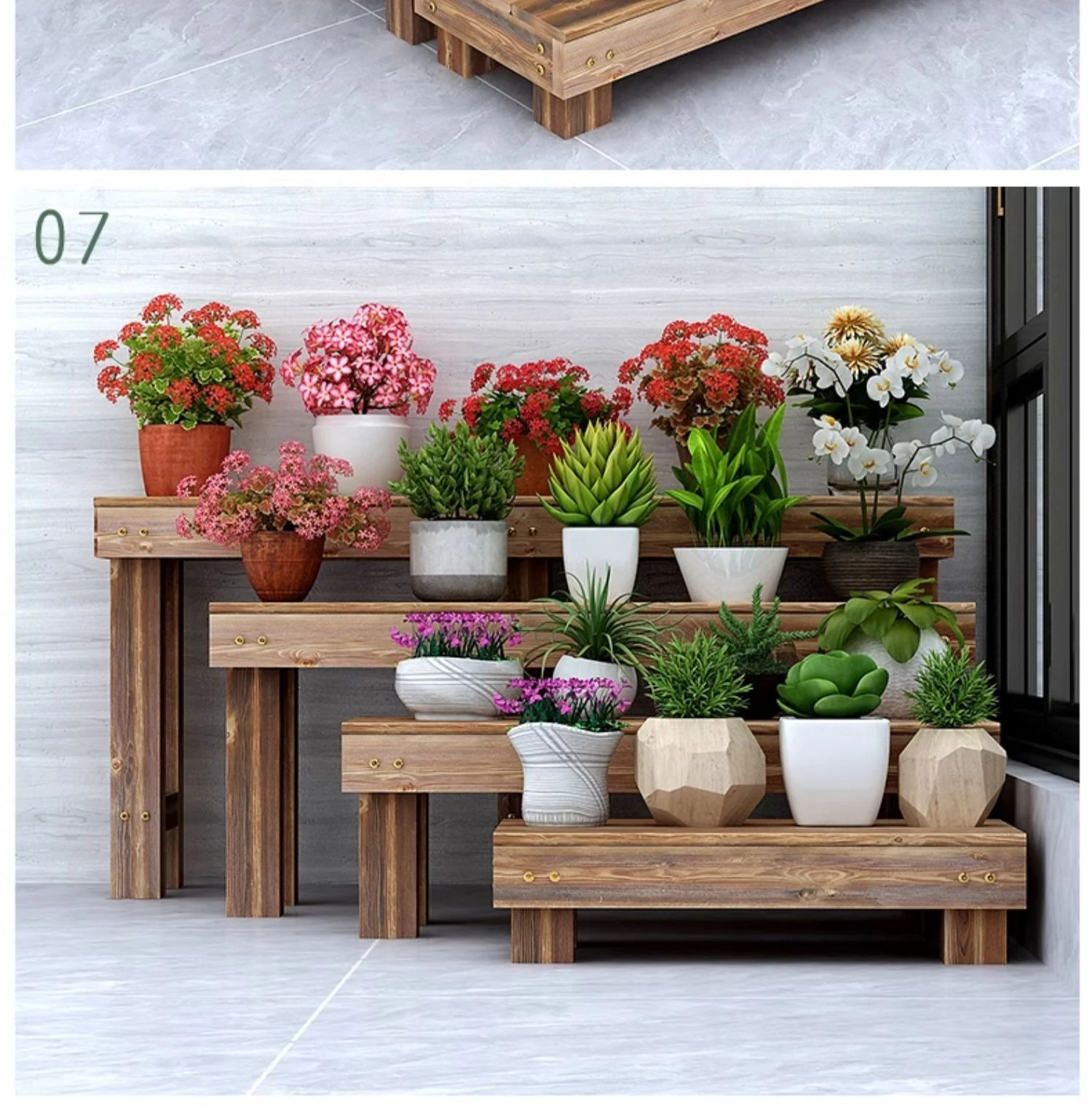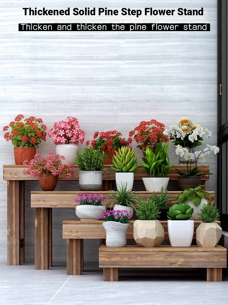 Three Dream Anti-Corrosion Solid Wood Flower Rack - Stylish Outdoor Stand for Balconies and Gardens, Tiered Plant Holder, Perfect for Displaying Your Favorite Flowers and Plants