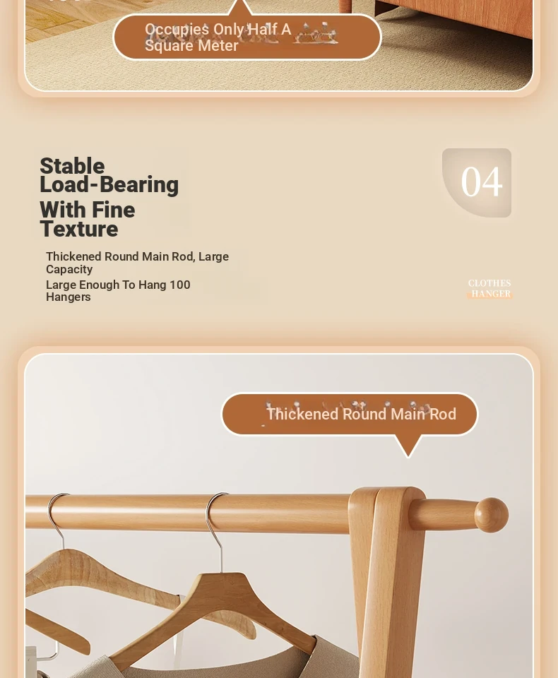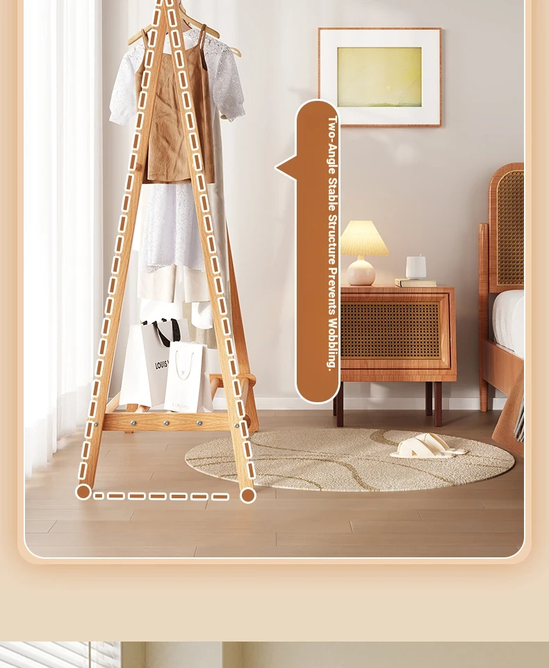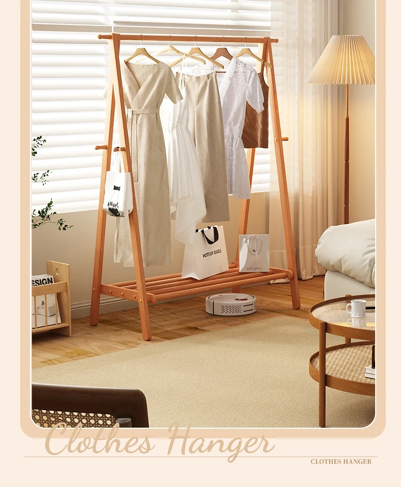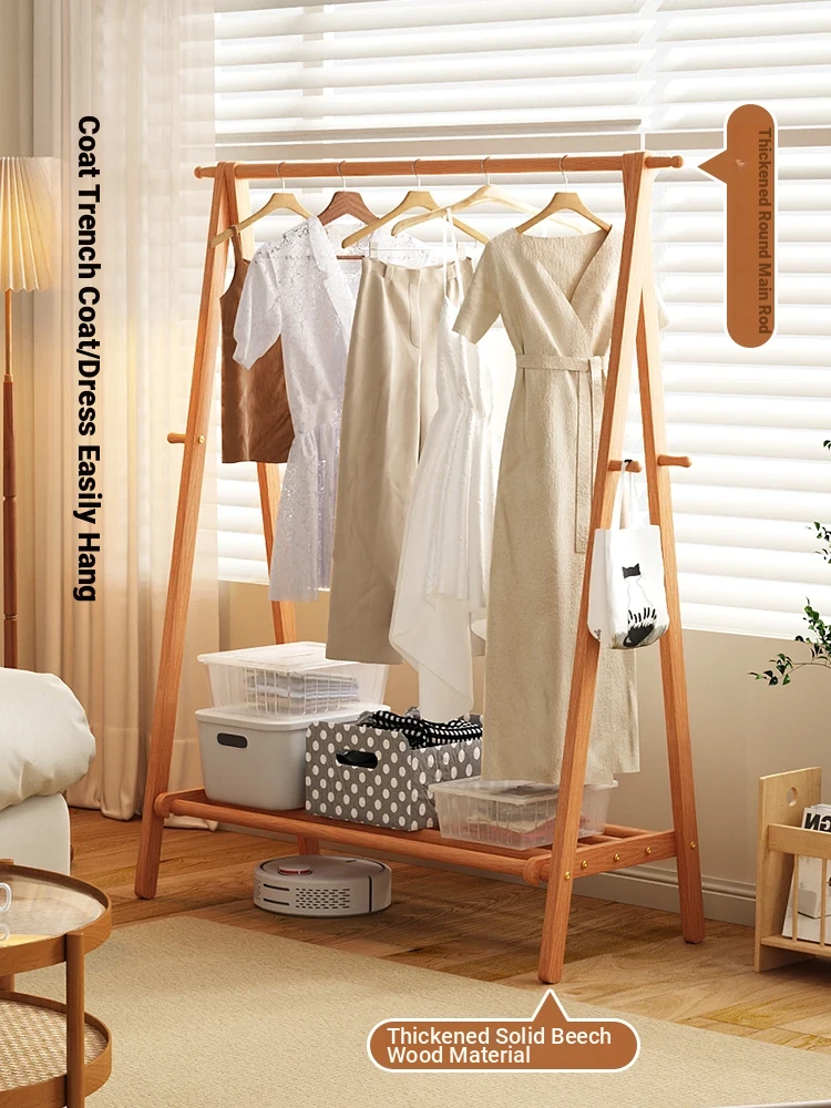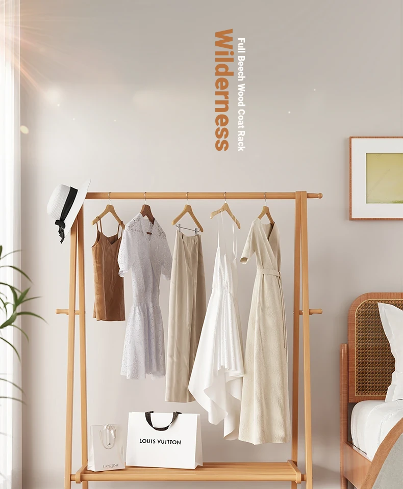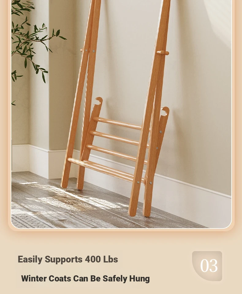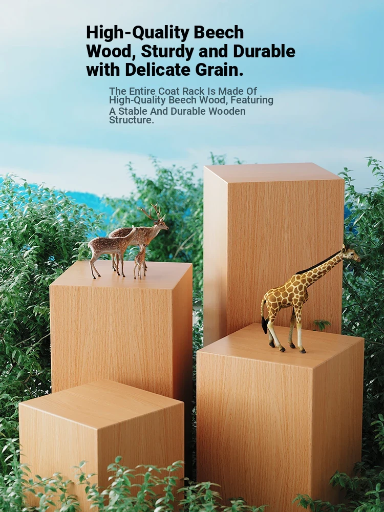 Three Dreams Solid Wood Freestanding Clothes Rack – Stylish Beech Wood Garment and Hat Stand for Bedroom, Compact Design Perfect for Small Spaces, Easy to Assemble and Use