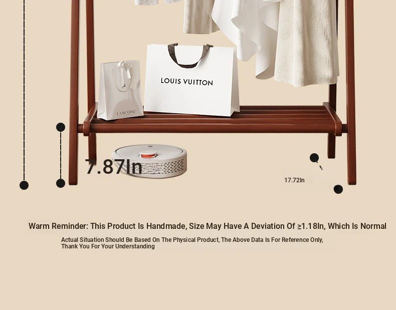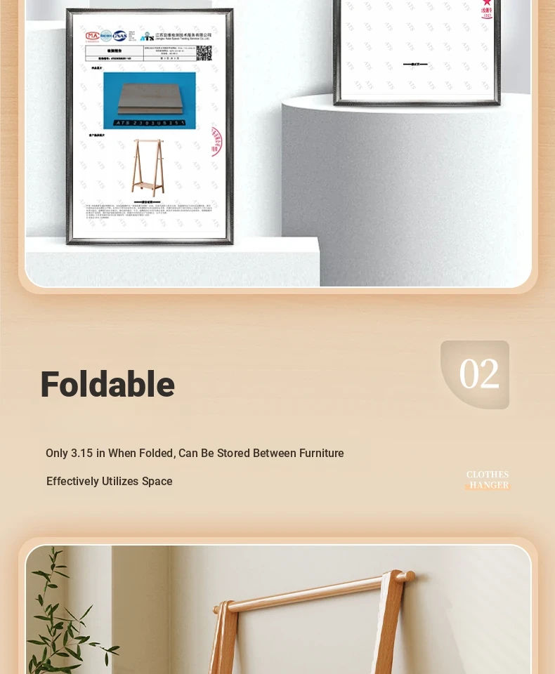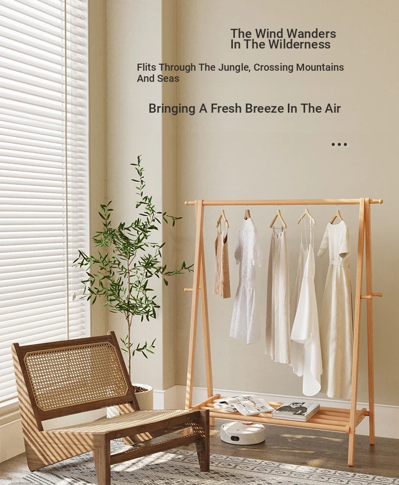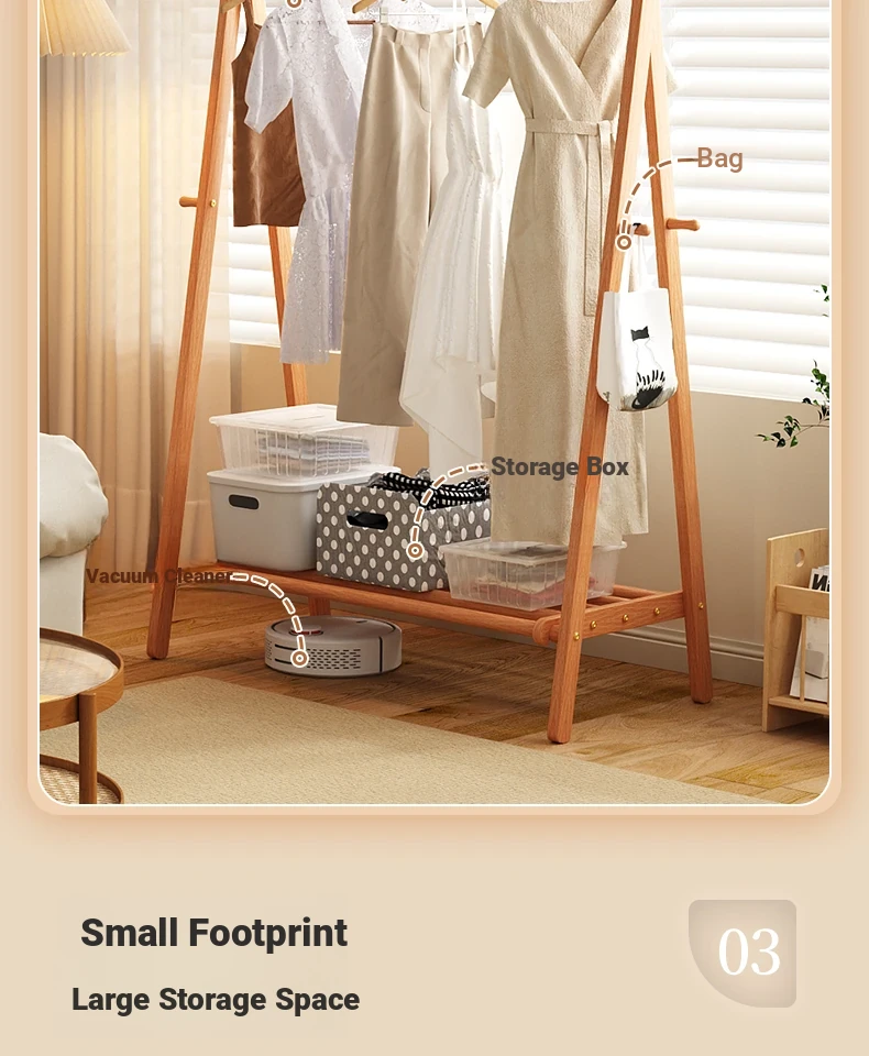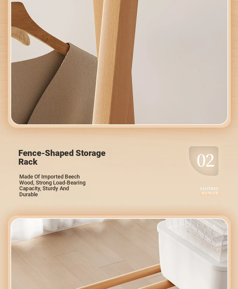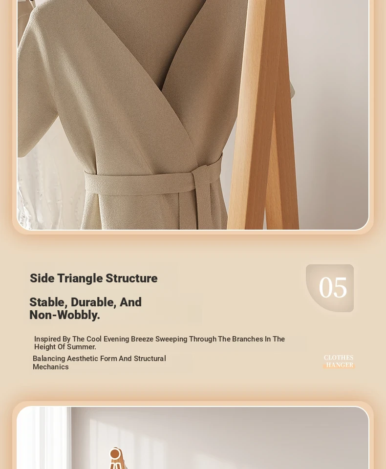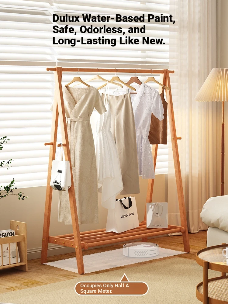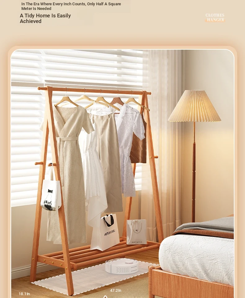 Three Dreams Solid Wood Freestanding Clothes Rack – Stylish Beech Wood Garment and Hat Stand for Bedroom, Compact Design Perfect for Small Spaces, Easy to Assemble and Use