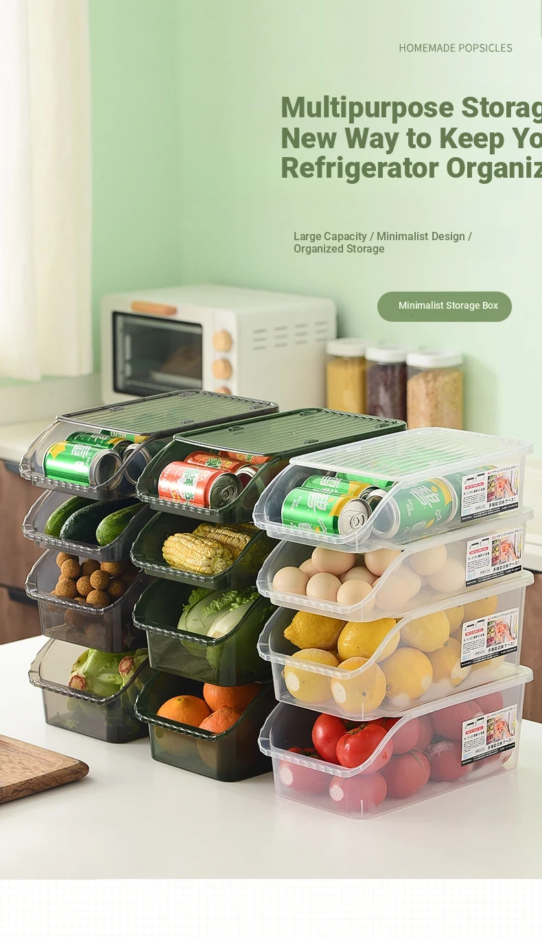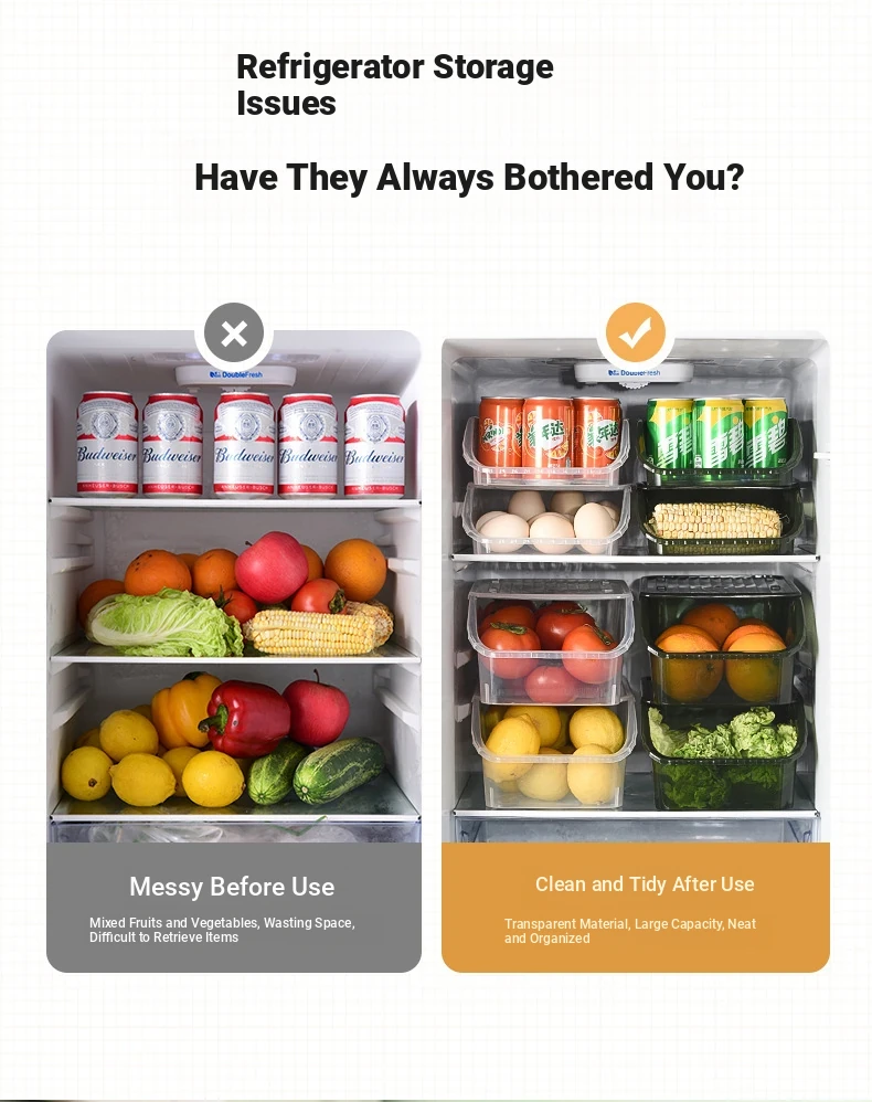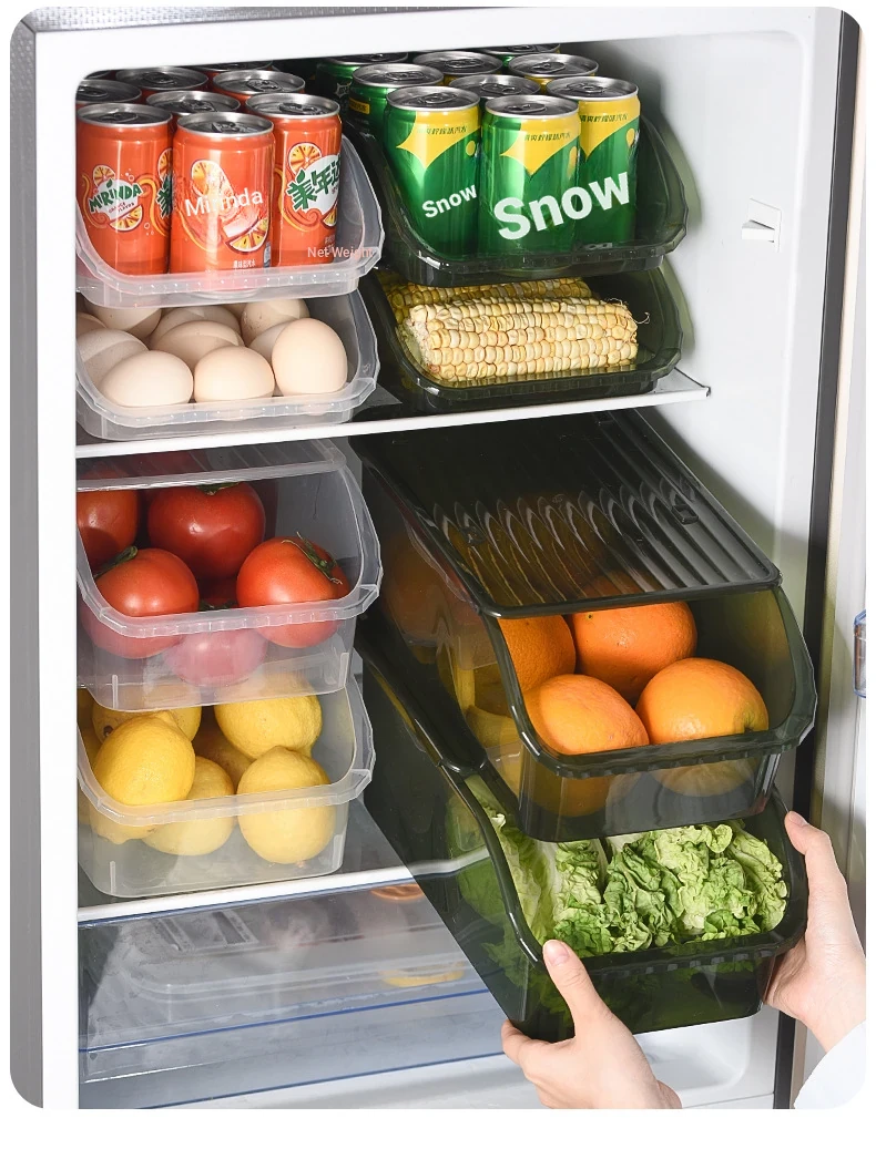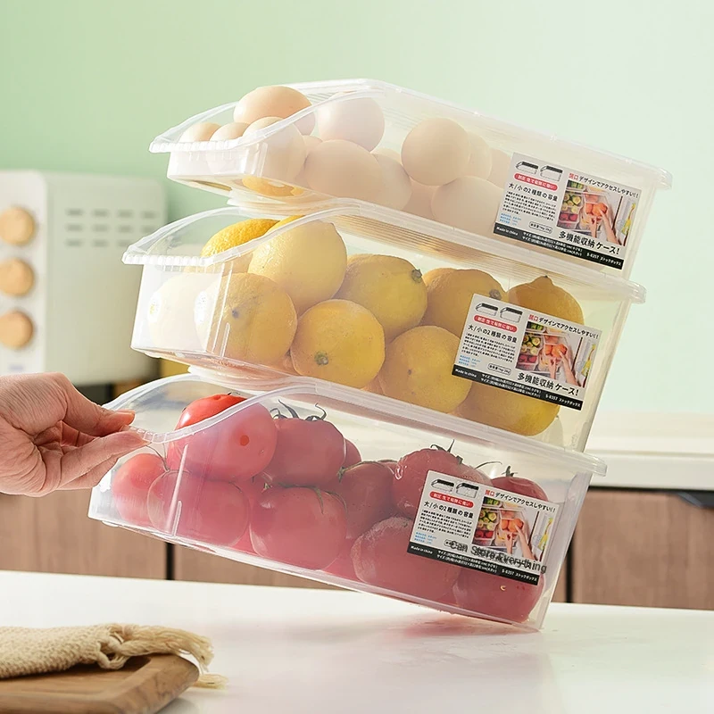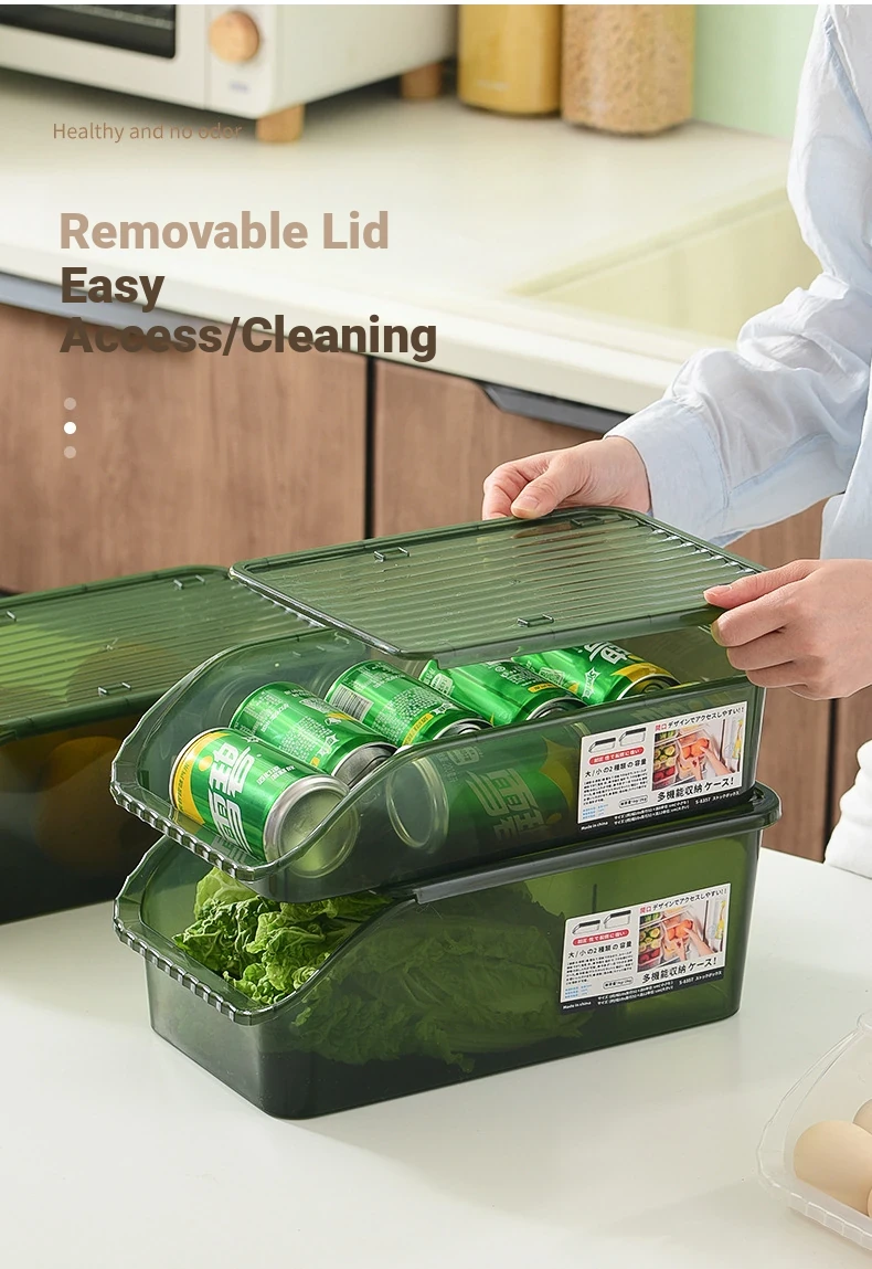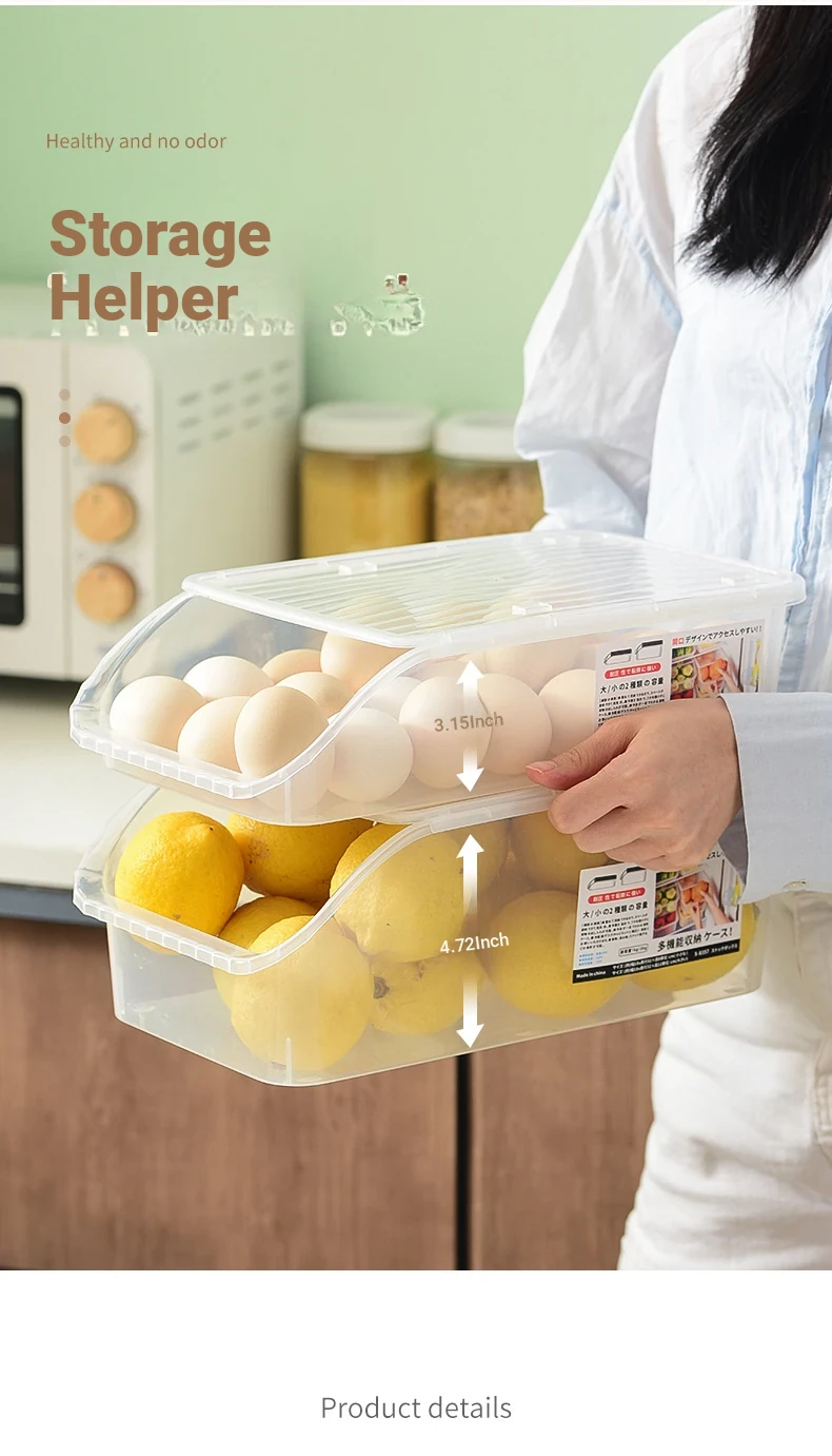 Transparent Refrigerator Storage Box with Lid - Kitchen Organizer for Frozen Foods, Vegetables, and Eggs - Keep Food Fresh and Tidy!