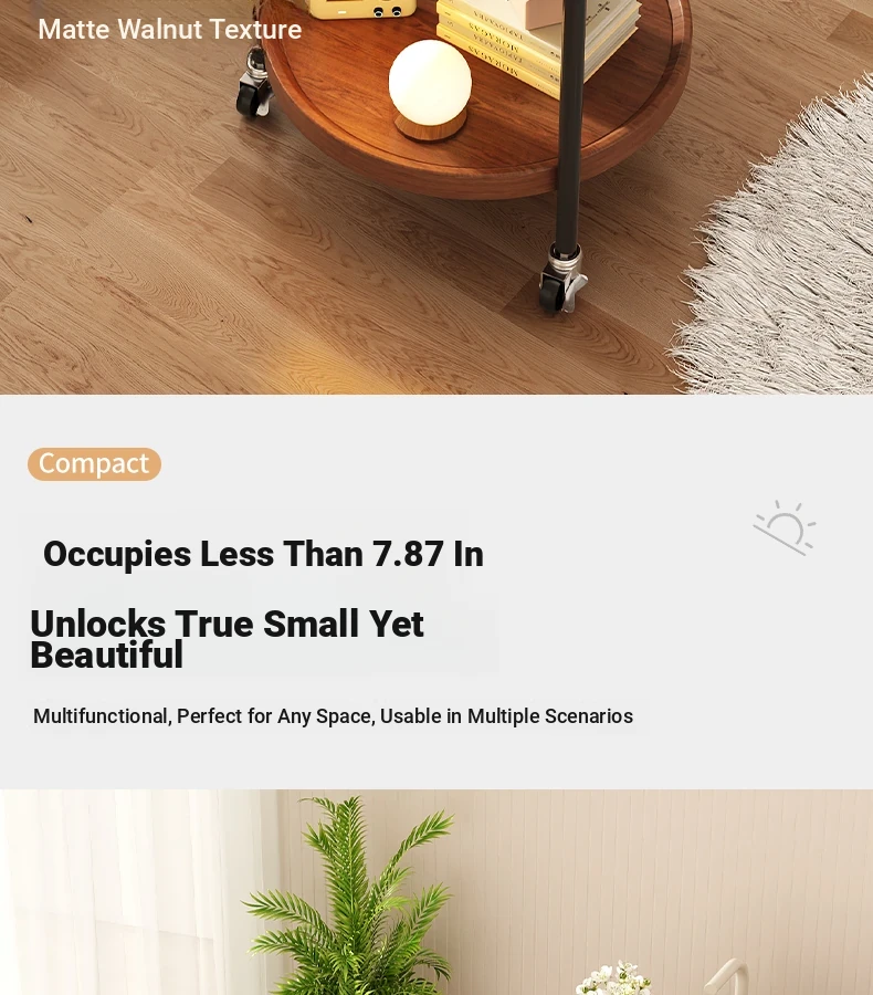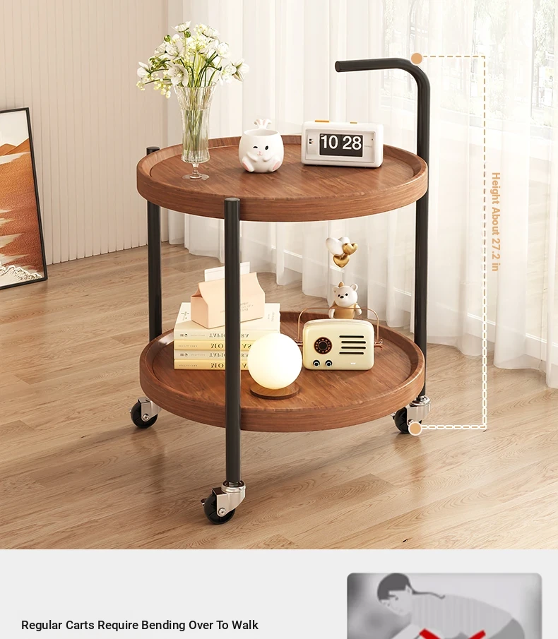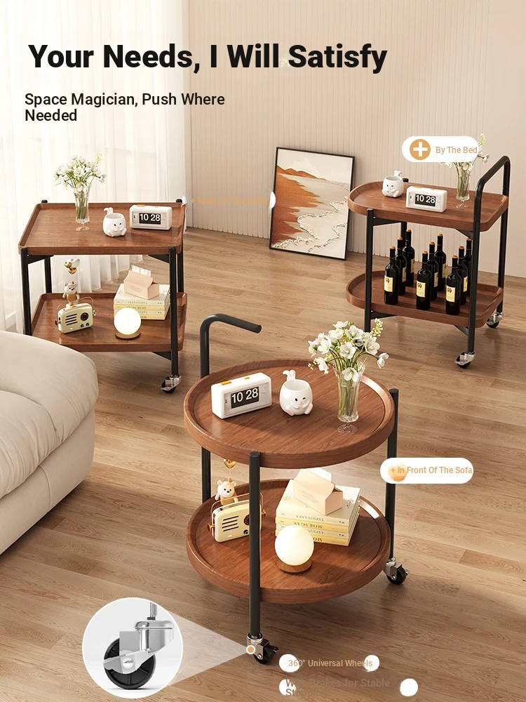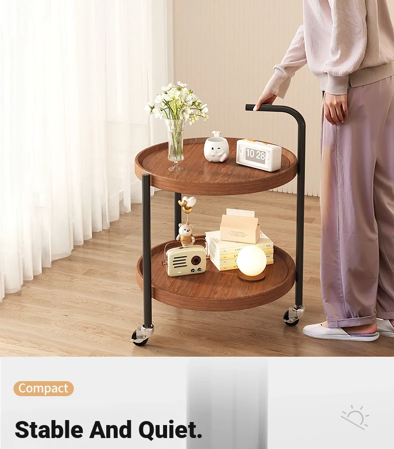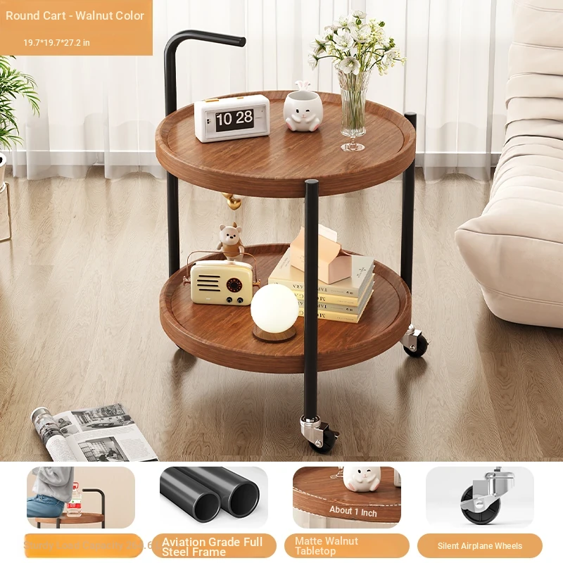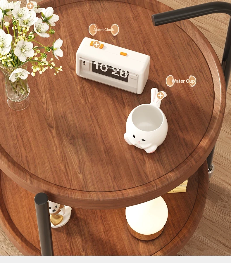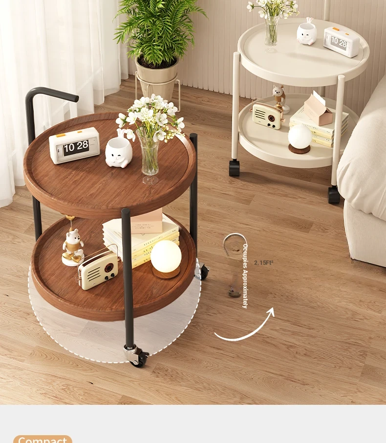 Versatile Round Wooden Side Table – Perfect for Living Rooms, Sofas, and Balconies – Compact Nightstand and Storage Cart for Small Spaces