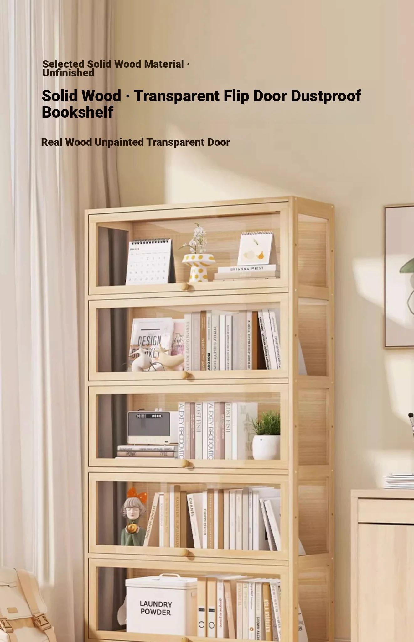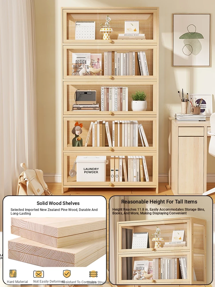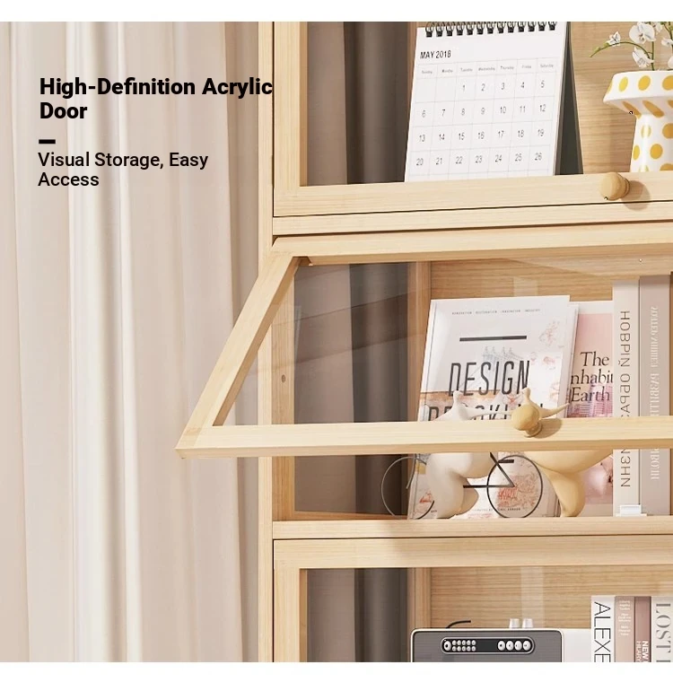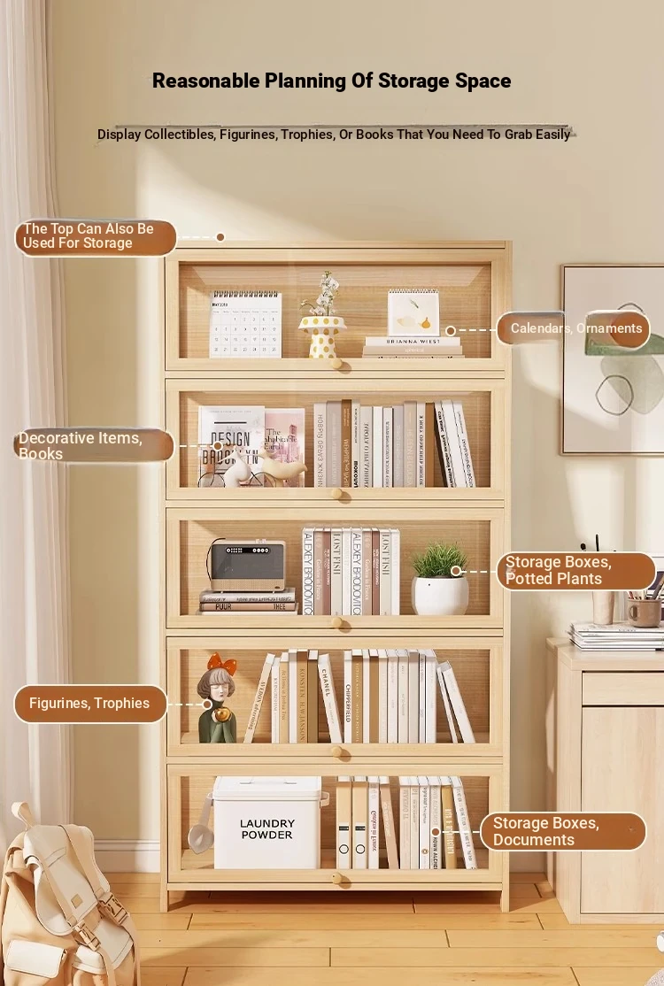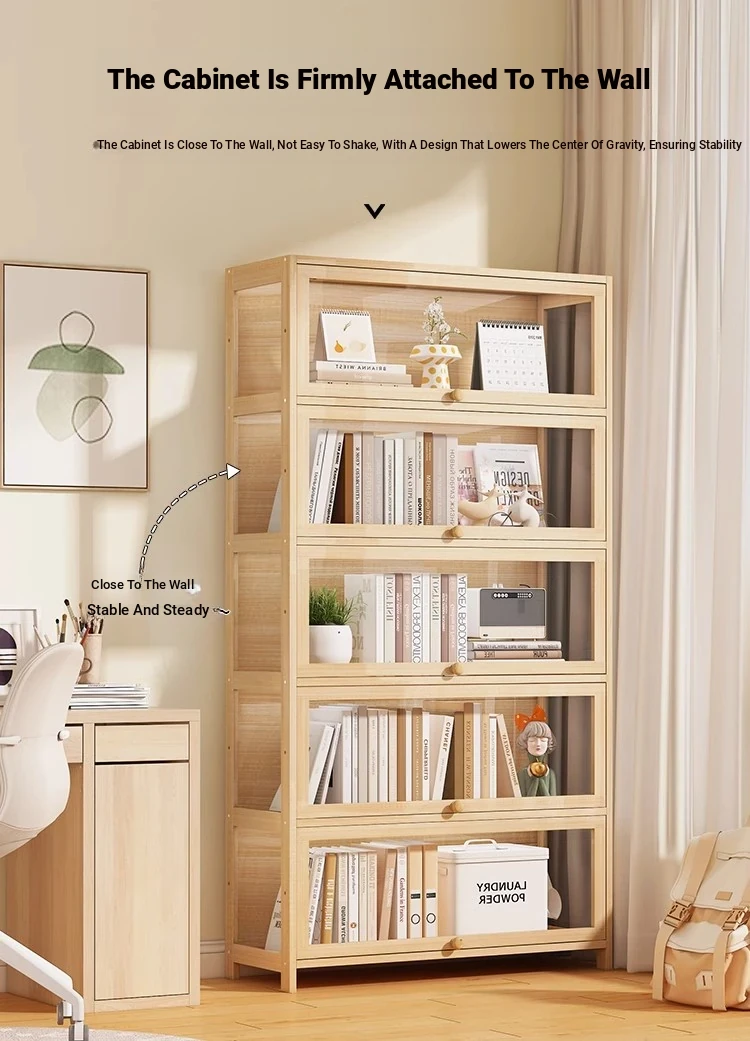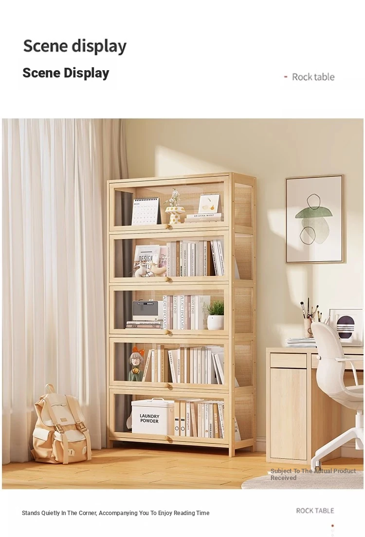 Wooden Bookshelf with Doors - Multi-layer Storage Rack, Dust-proof Acrylic, Ideal for Kids' Rooms and Home Use, Perfect for Organizing Books and Toys