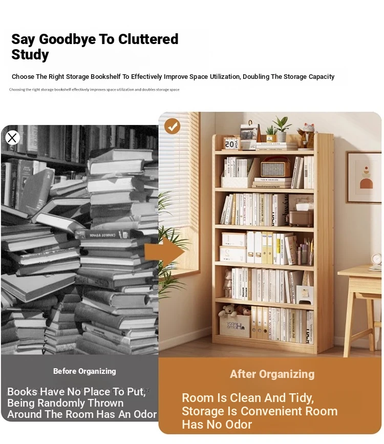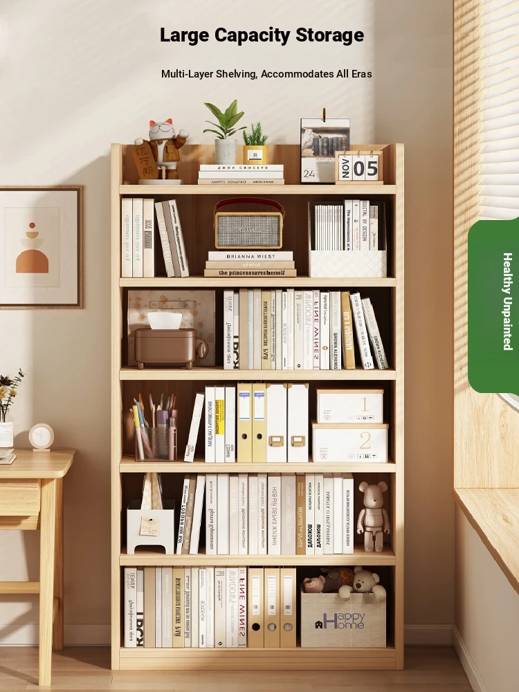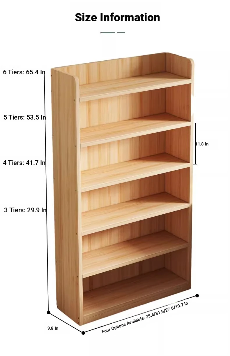 Wooden Bookshelf with Multi-Layer Storage – Floor Standing, Ideal for Home, Students, and Kids – Perfect for Living Room or Wall-Mounted Use, Maximizing Space and Organization!