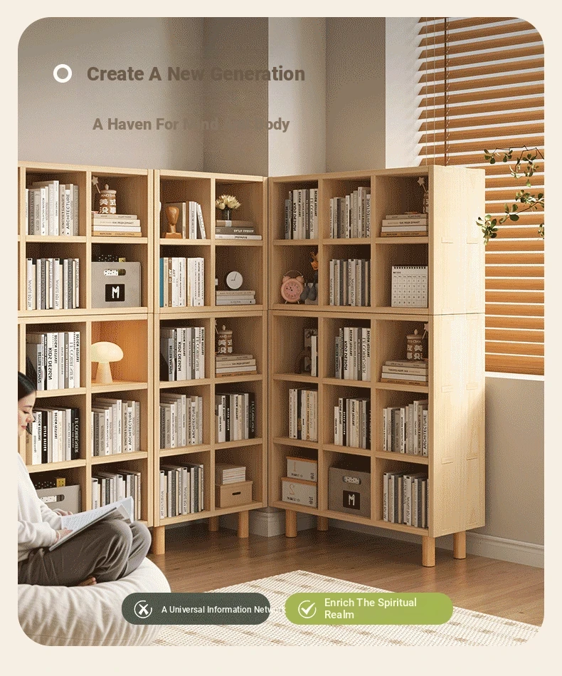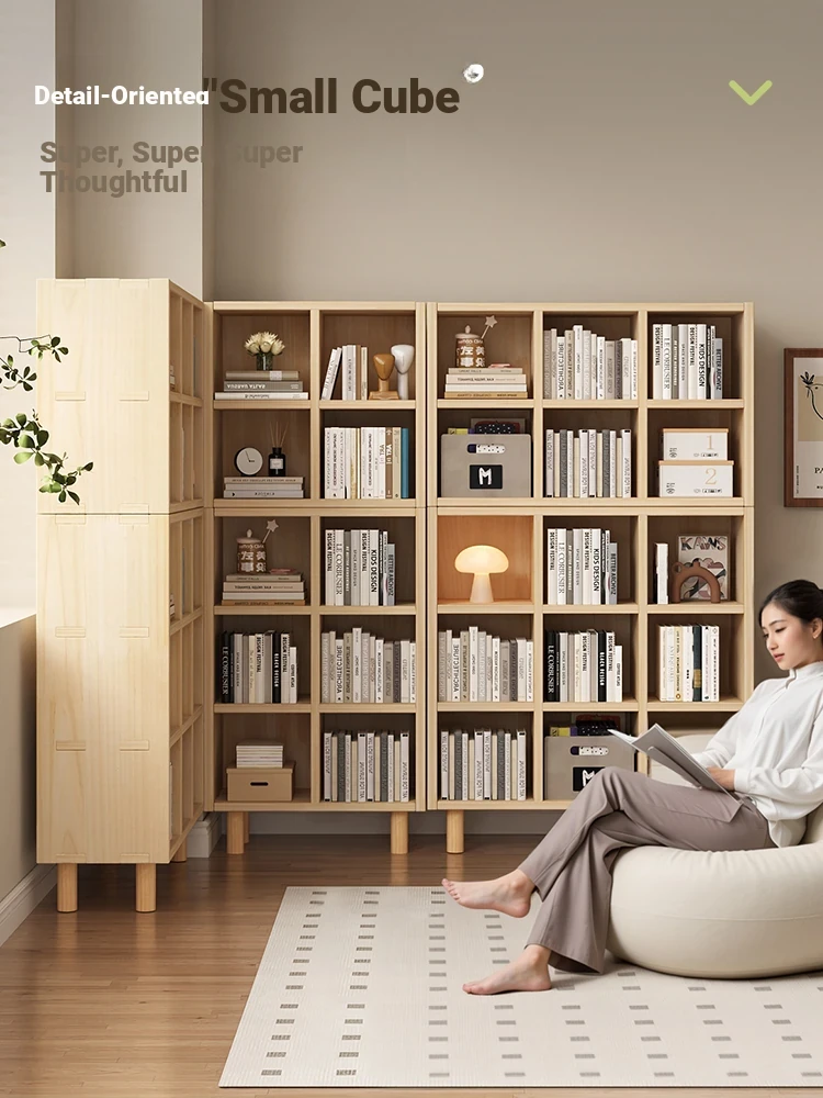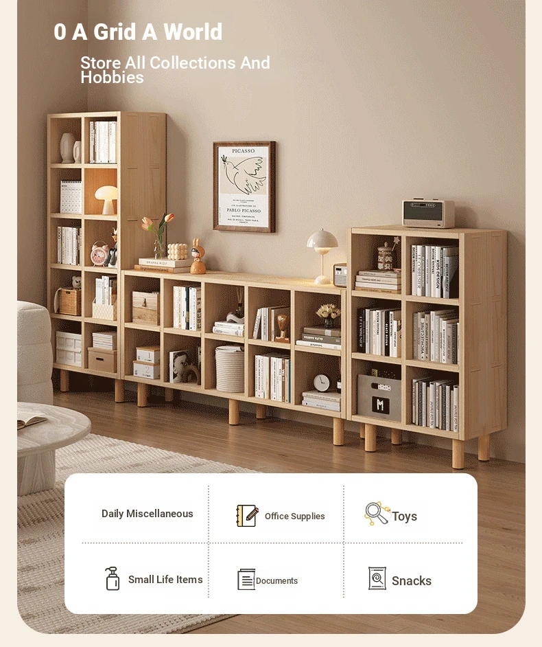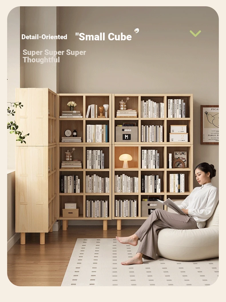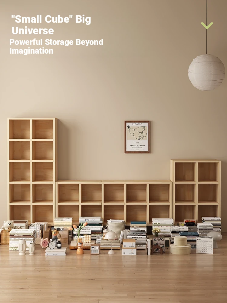 Wooden Bookshelf with Wall-Mounted Cubes - Floor Storage Unit for Kindergarten, Simple Bedroom Organizer, Practical and Stylish Shelving Solution for Easy Storage