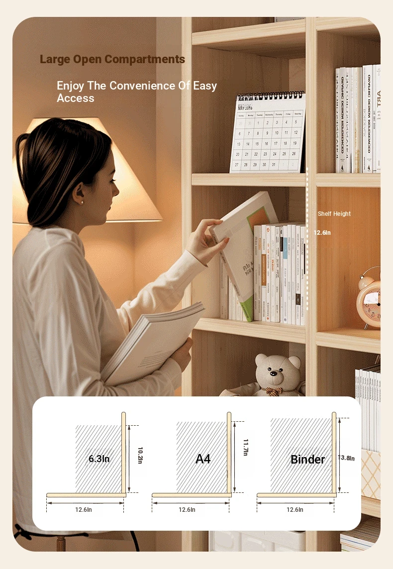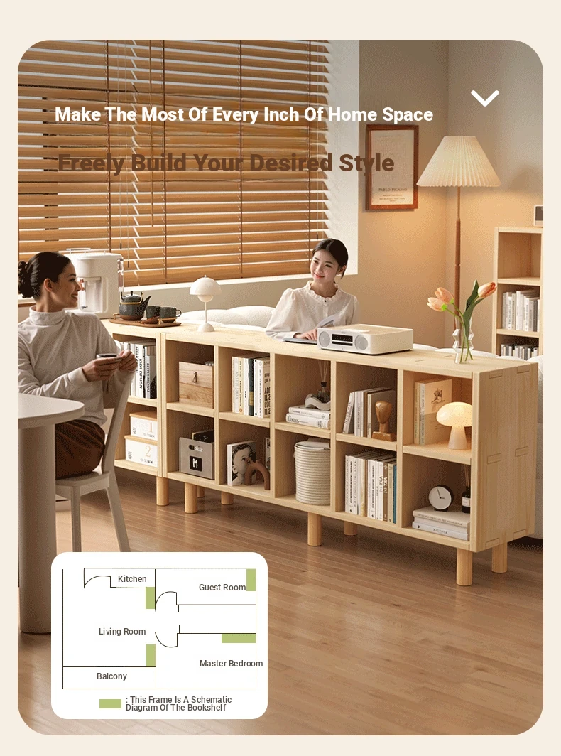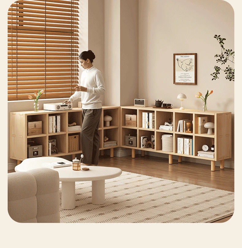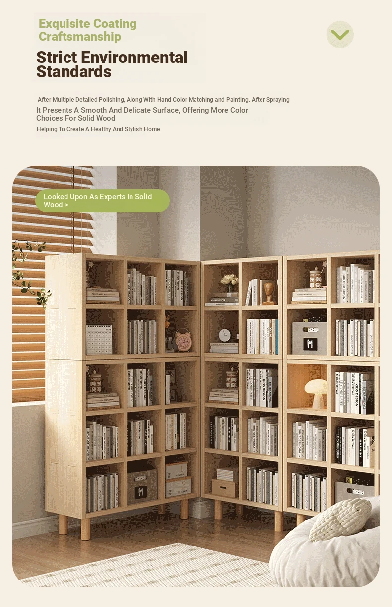 Wooden Bookshelf with Wall-Mounted Cubes - Floor Storage Unit for Kindergarten, Simple Bedroom Organizer, Practical and Stylish Shelving Solution for Easy Storage