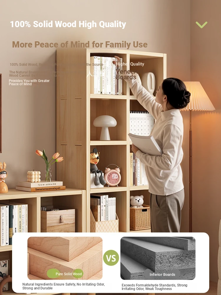 Solid wood [ with 6 cabinet legs ] 3 floors 12 squares of original wood color [ deliver collision-proof corner shell ]