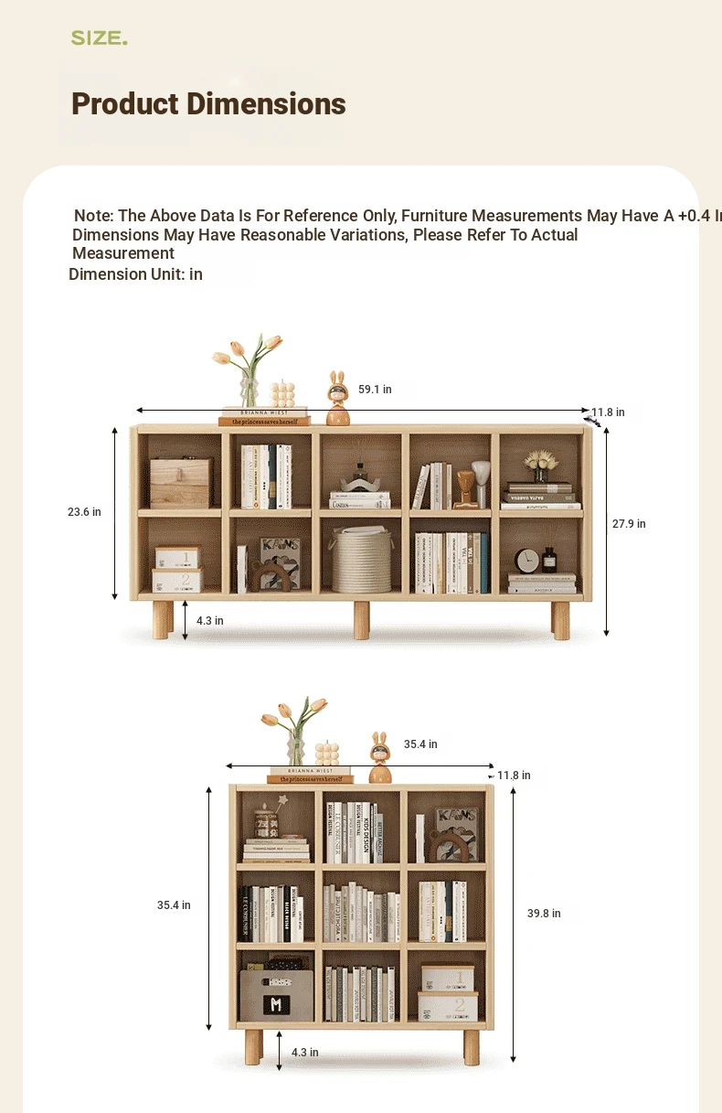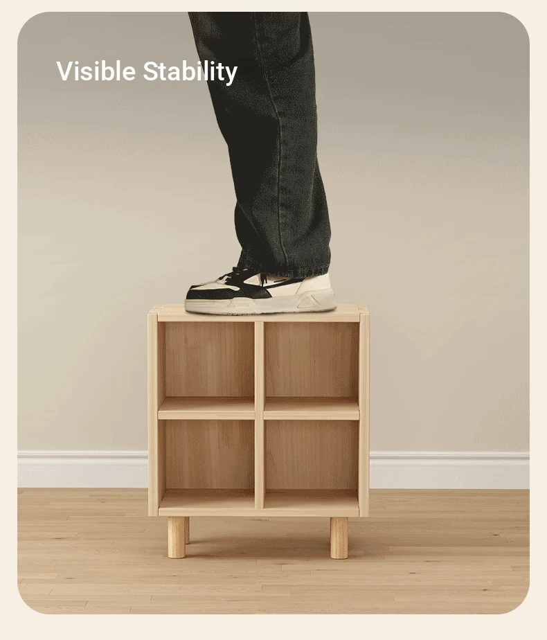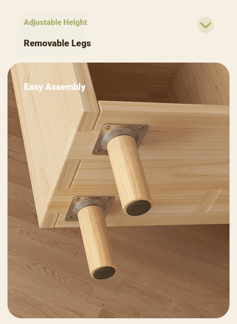 Solid wood [ with 6 cabinet legs ] Double-layered with 12 squares of original wood color [ deliver collision-proof corner shell ]