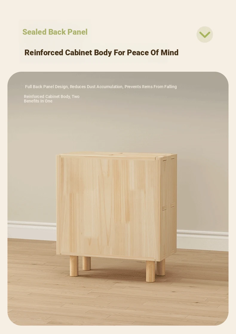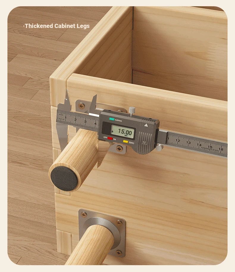 Solid wood [ with 4 cabinet legs ] Double-layered with 4 squares of wood color [ delivering collision-proof corner shell ]