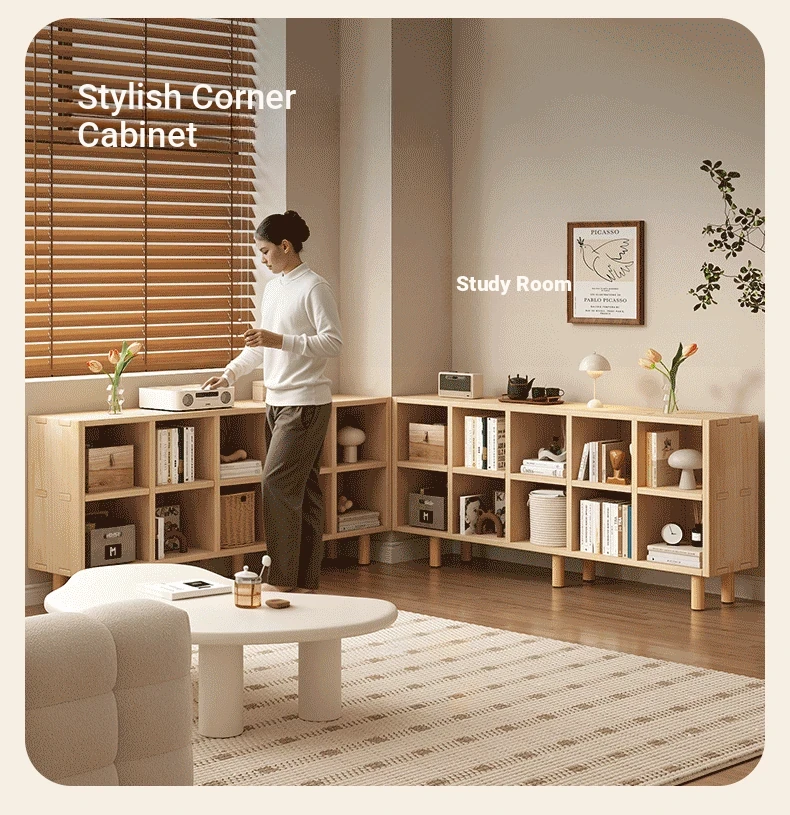 Solid wood [ with 6 cabinet legs ] Double-layered with 10 squares of original wood color [ delivering collision-proof corner shell ]