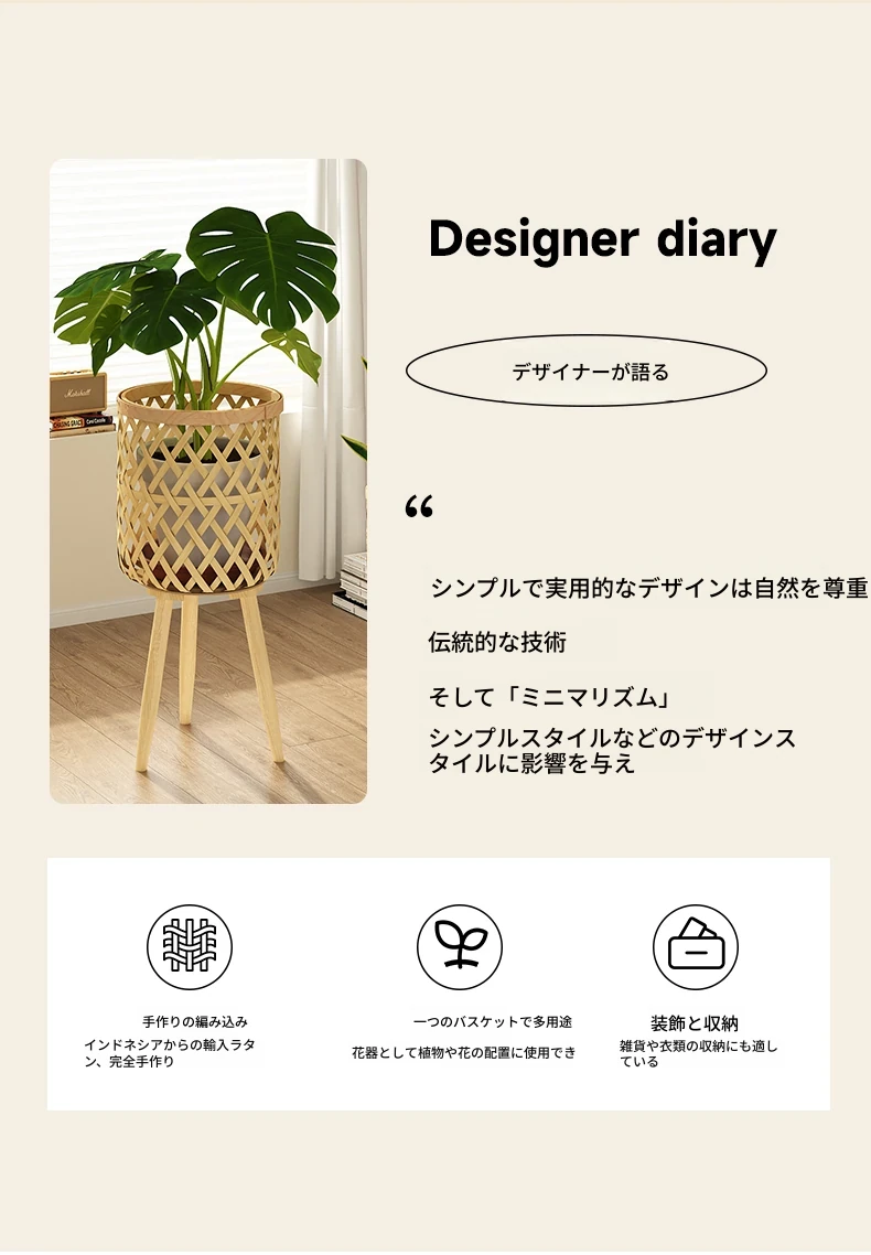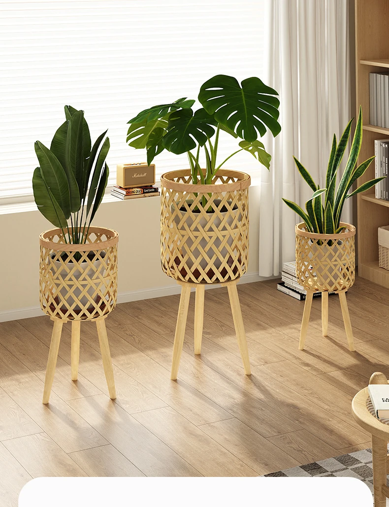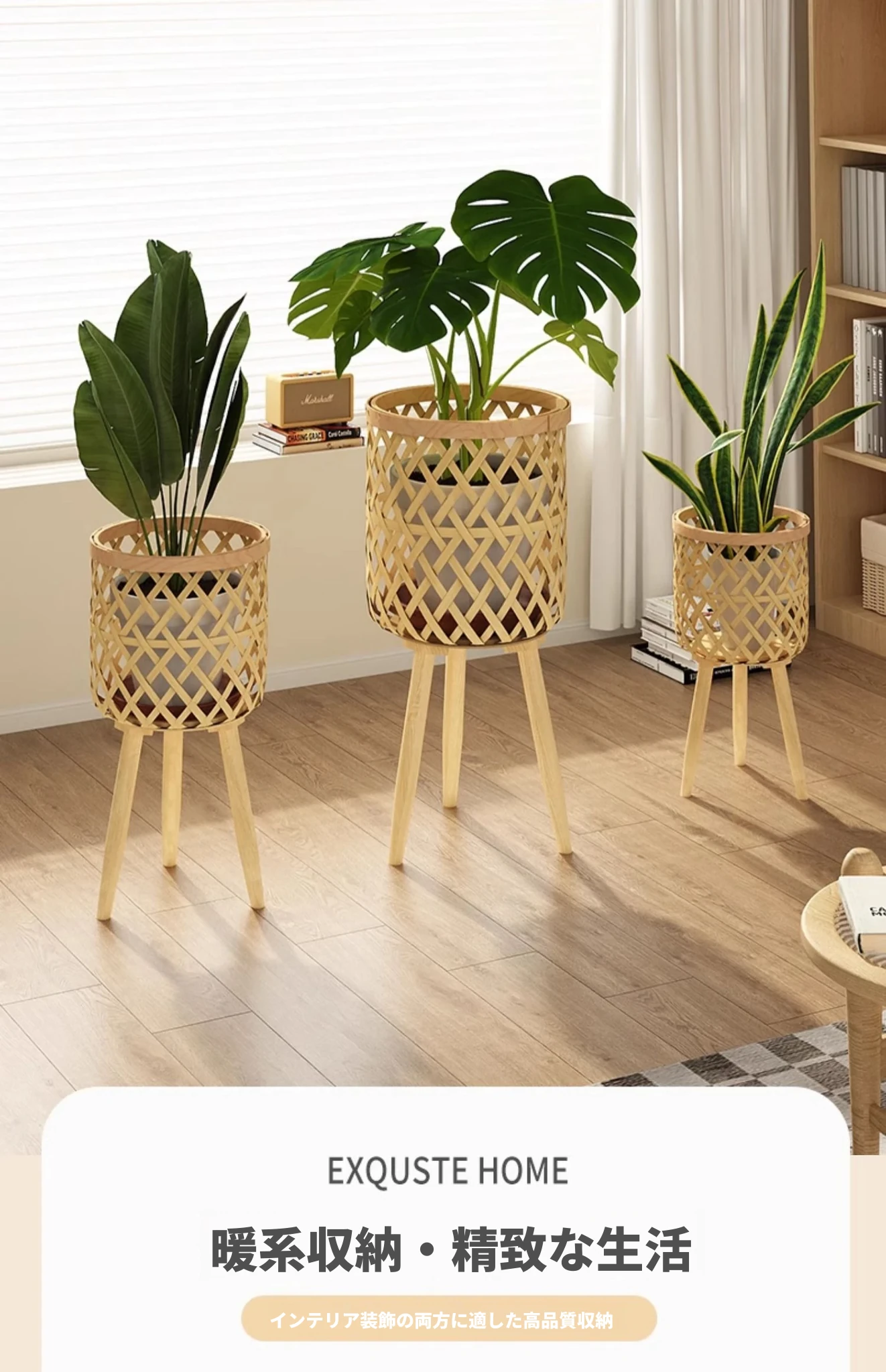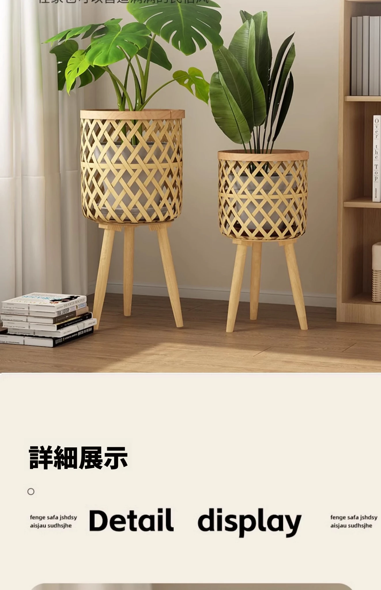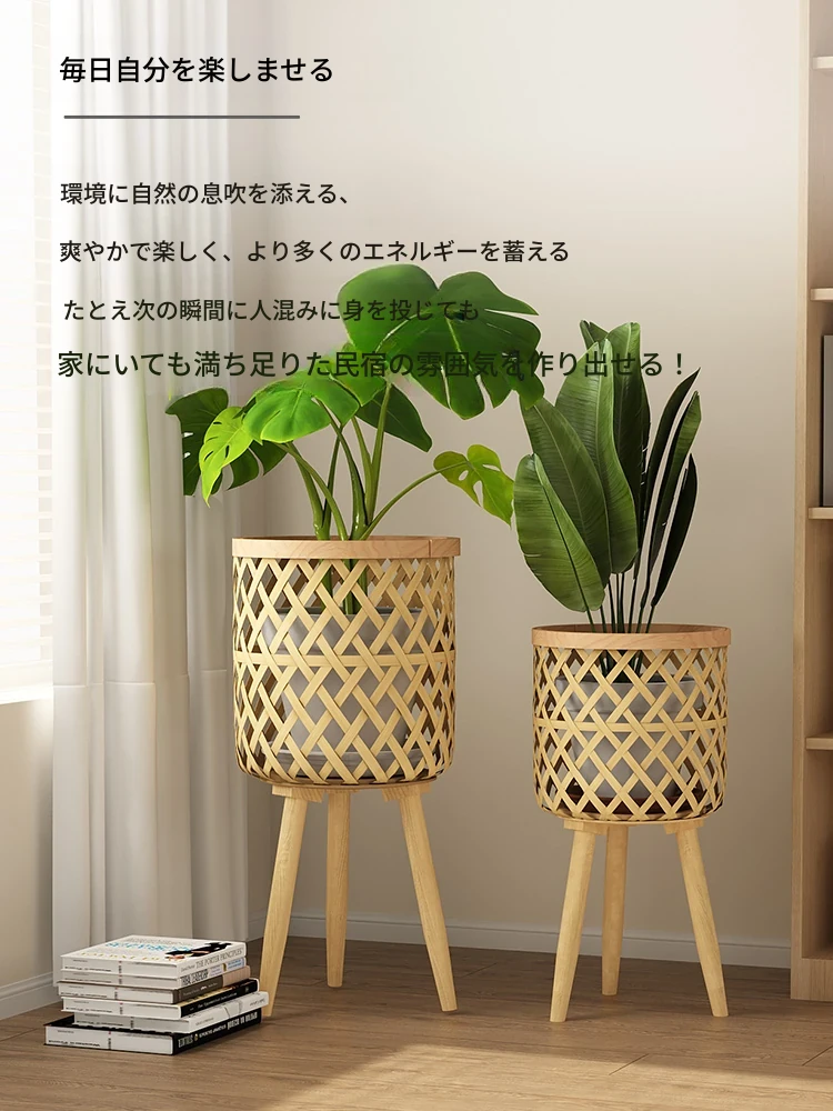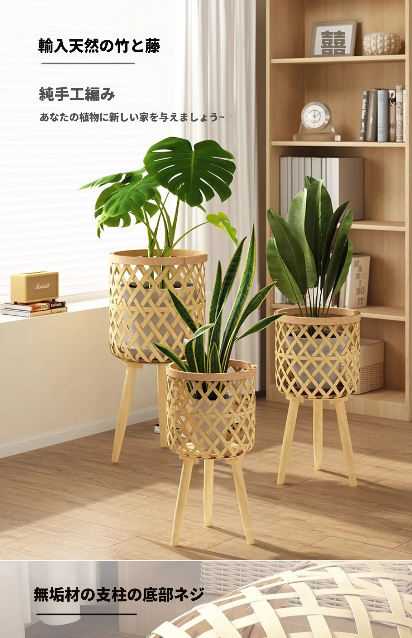 2025年新作!夢のようなフラワースタンド - リビングルームにぴったりな床置き型プランターラック。おしゃれなラタン編みデザインで、バルコニーや室内に緑を添えます。あなたのスペースを華やかに演出!