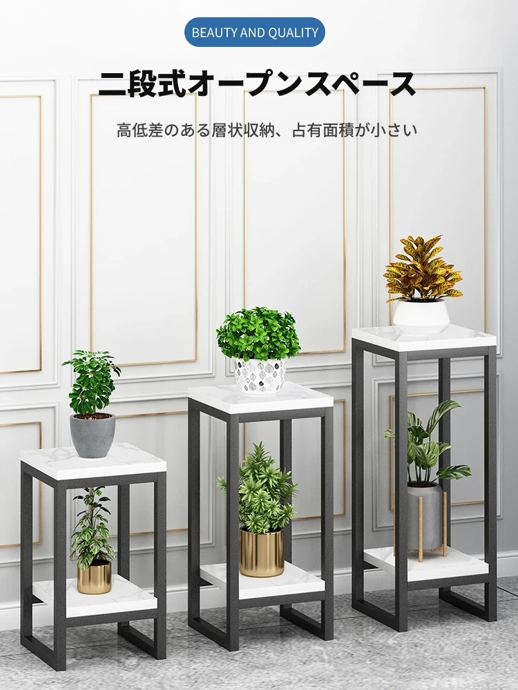 2025年新作!おしゃれなアイアン製フラワースタンド、リビングにぴったりな床置きタイプ!室内の観葉植物や花鉢を美しく飾れる収納ラック、バルコニーにもおすすめ!
