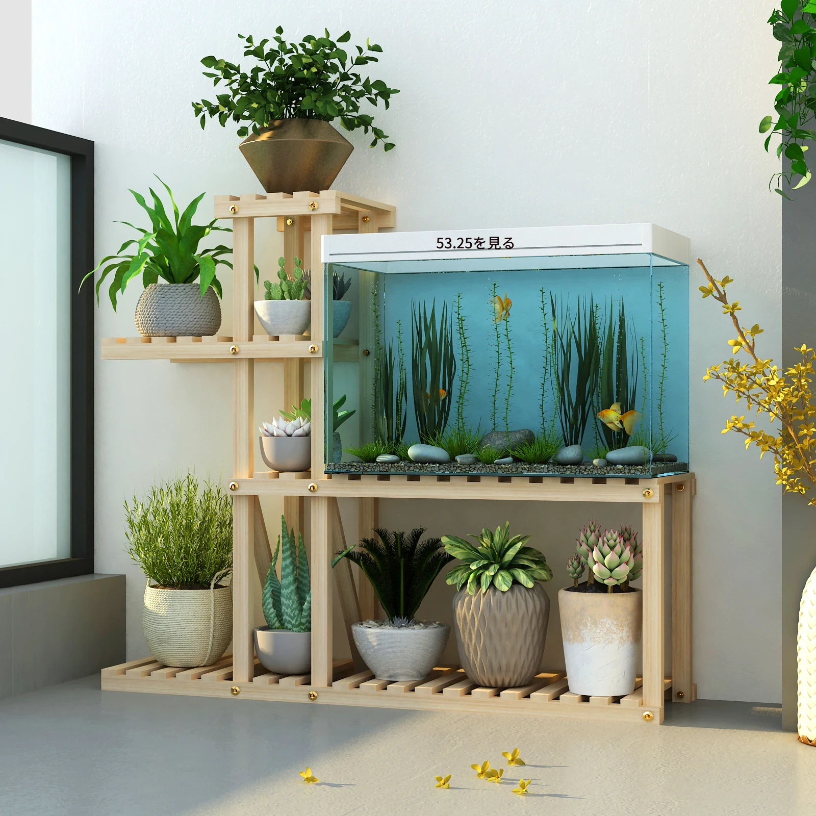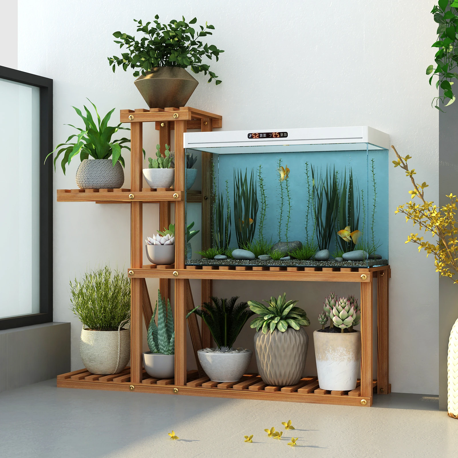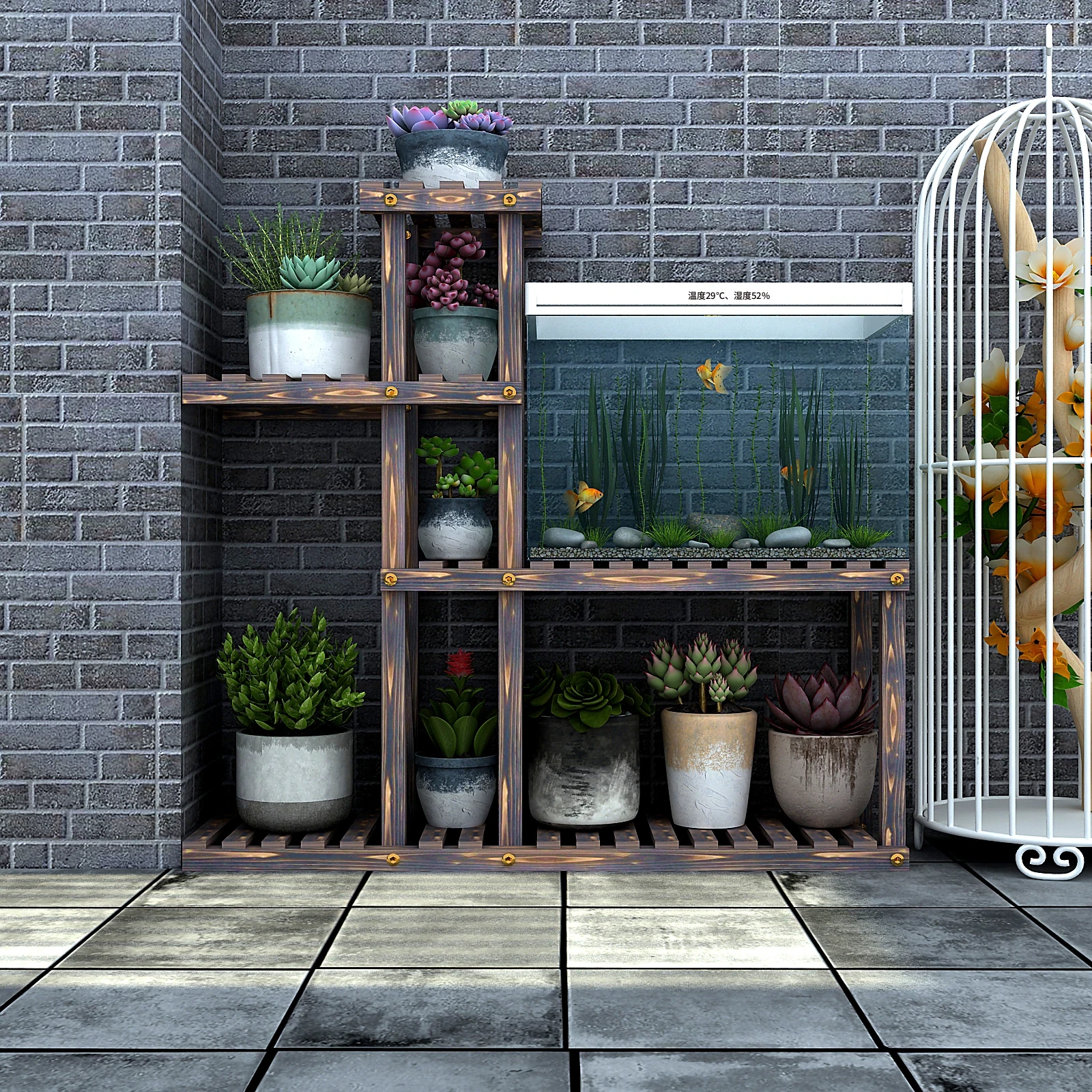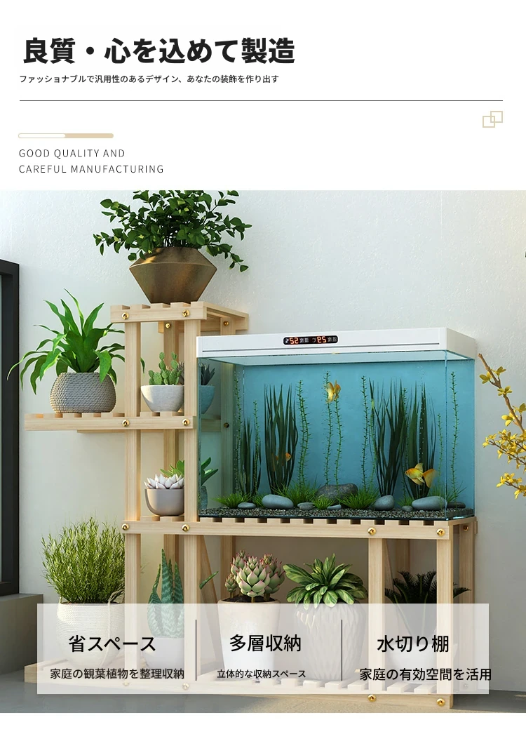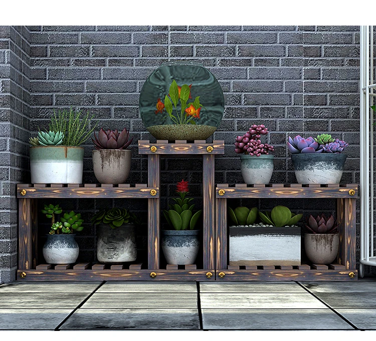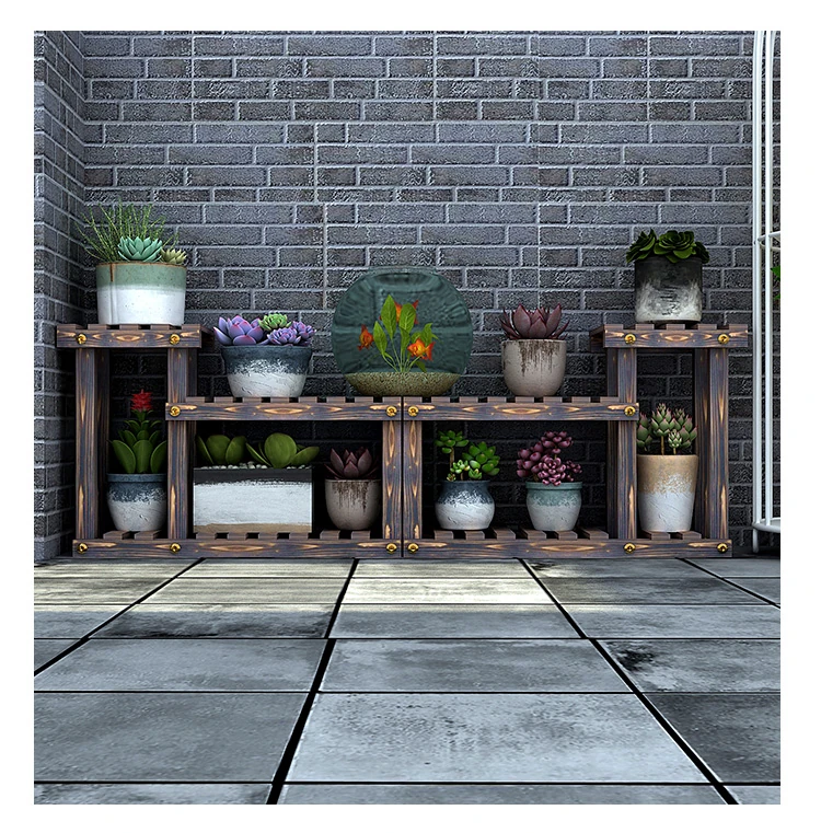 2025年新款!三梦防腐実木フラワースタンド - リビングルーム用のスタイリッシュな置き式プランツシェルフ。窓辺やお部屋のインテリアに最適!植物を美しく飾って、癒しの空間を演出しませんか?