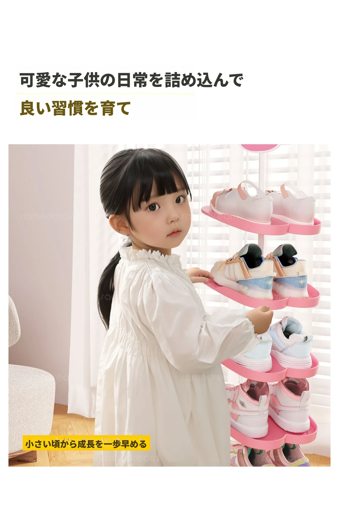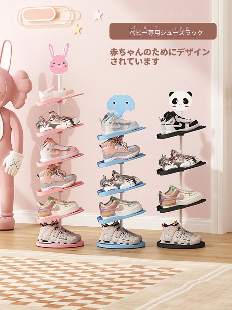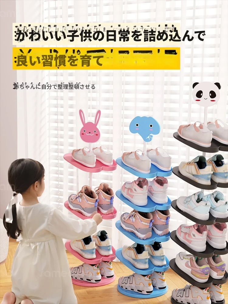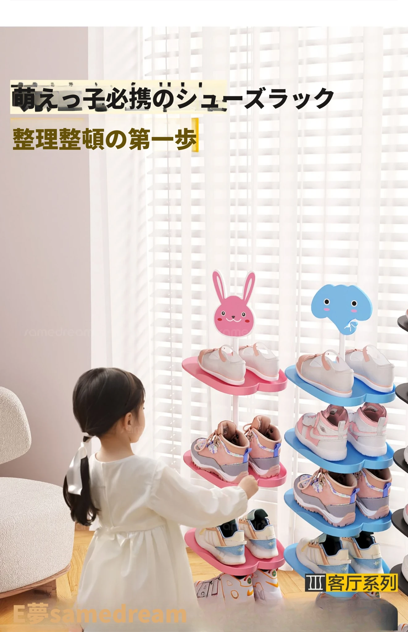 三夢キッズシューラック - ベビー専用の可愛らしい収納スペース!家庭用玄関にぴったりの多層デザイン、2025年新作の大人気シューキャビネット。お子様の靴をスッキリ整理して、お部屋をもっと素敵に!