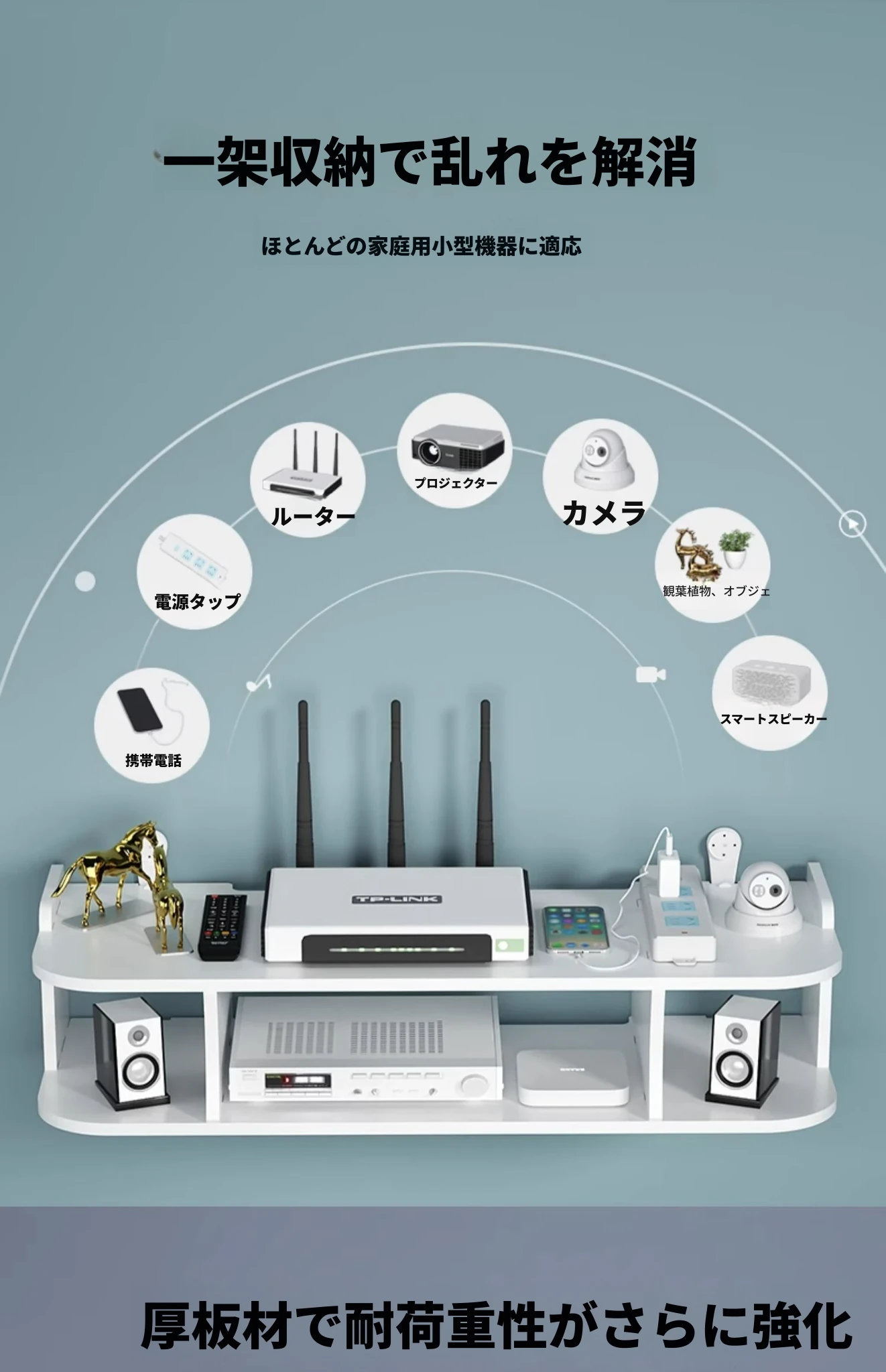 三夢のWi-Fiルーター収納スタンド 壁掛け式テレビボックスホルダー 取り付け不要で簡単設置!お部屋をスッキリ整理整頓、快適なネット環境を実現!