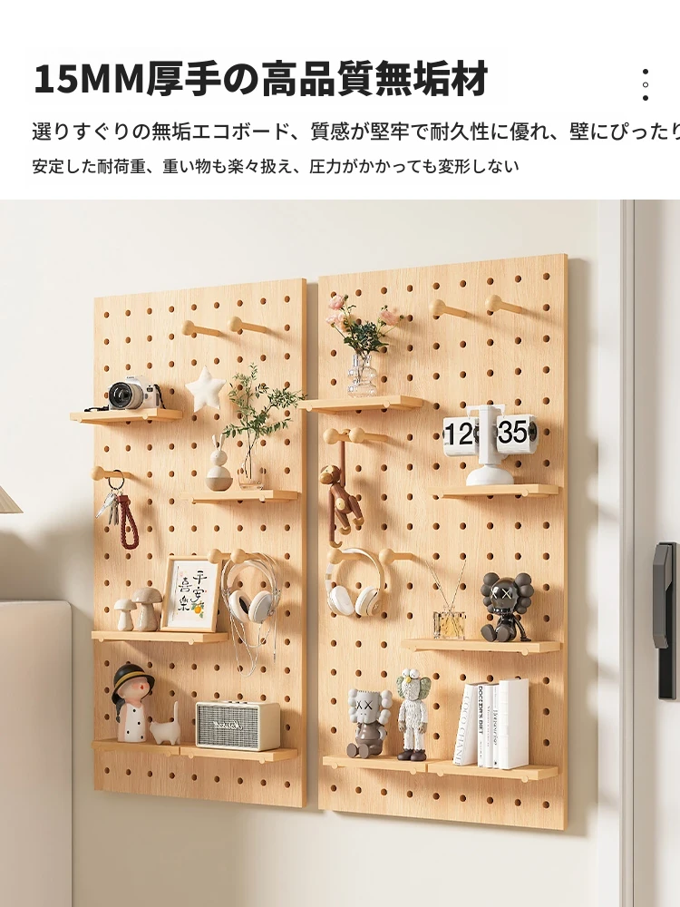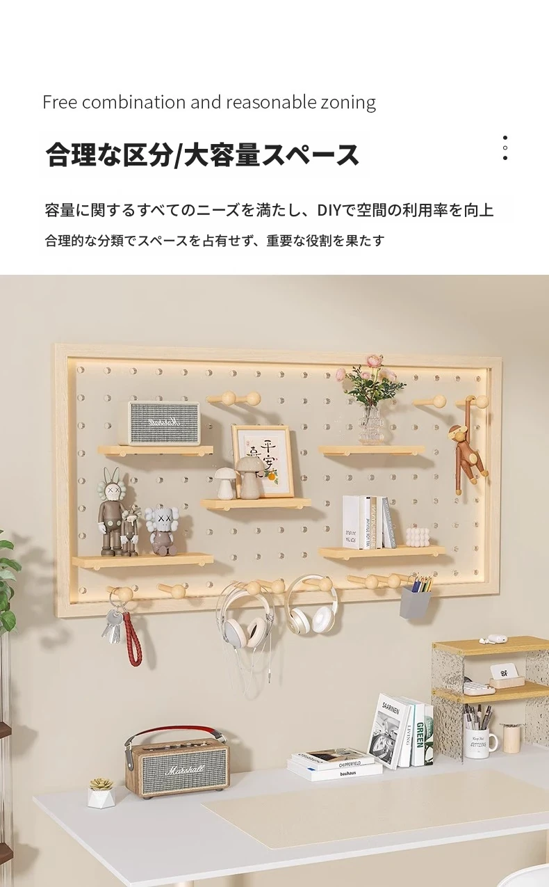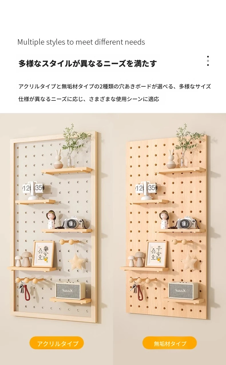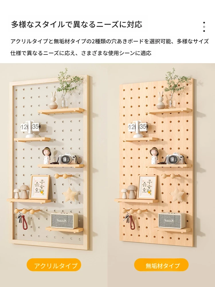 穴あきボード収納ラック アクリル壁掛けデスクブックシェルフ 穴なし取り付け 木製収納ディスプレイラック おしゃれで実用的!お部屋をスッキリ整理整頓!