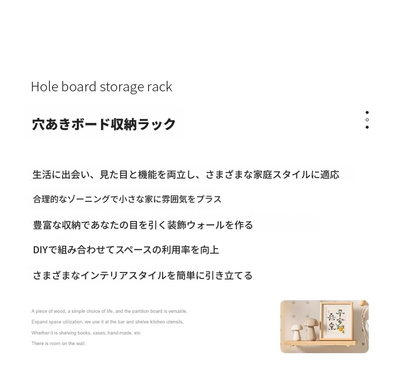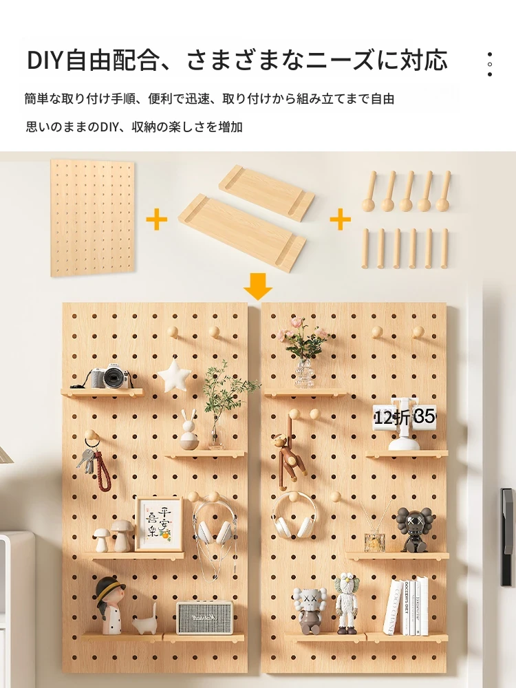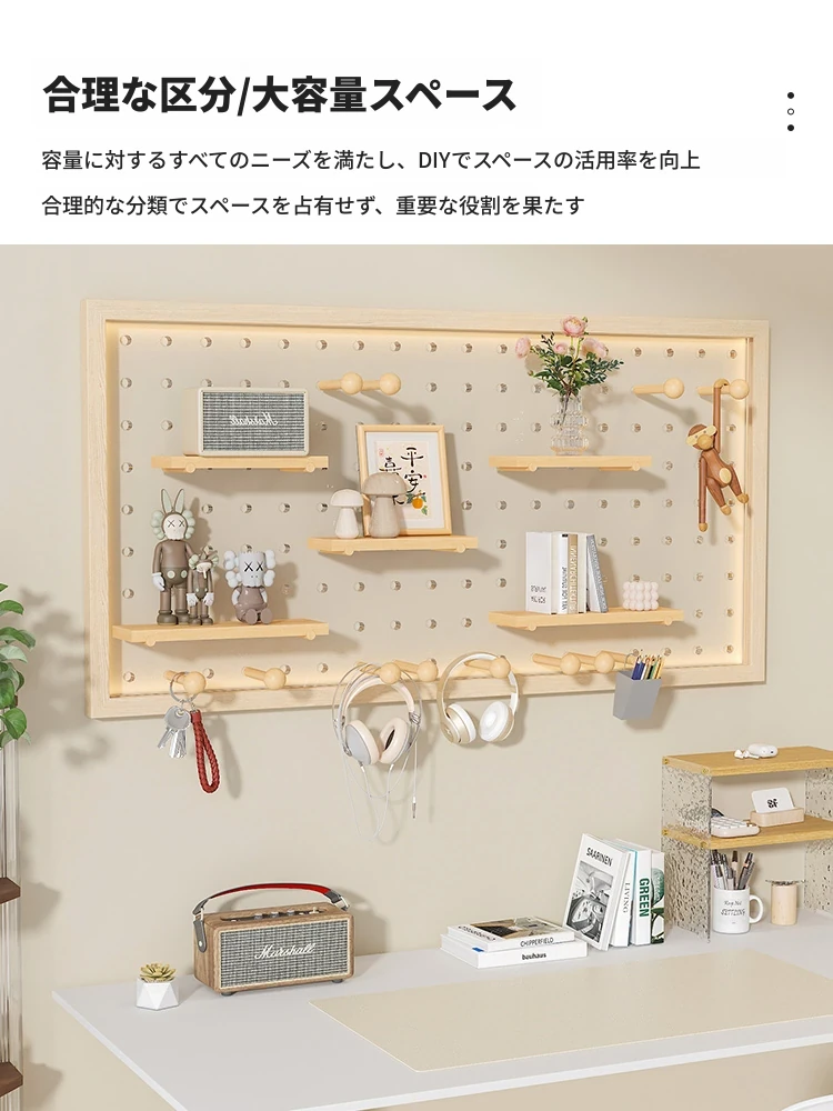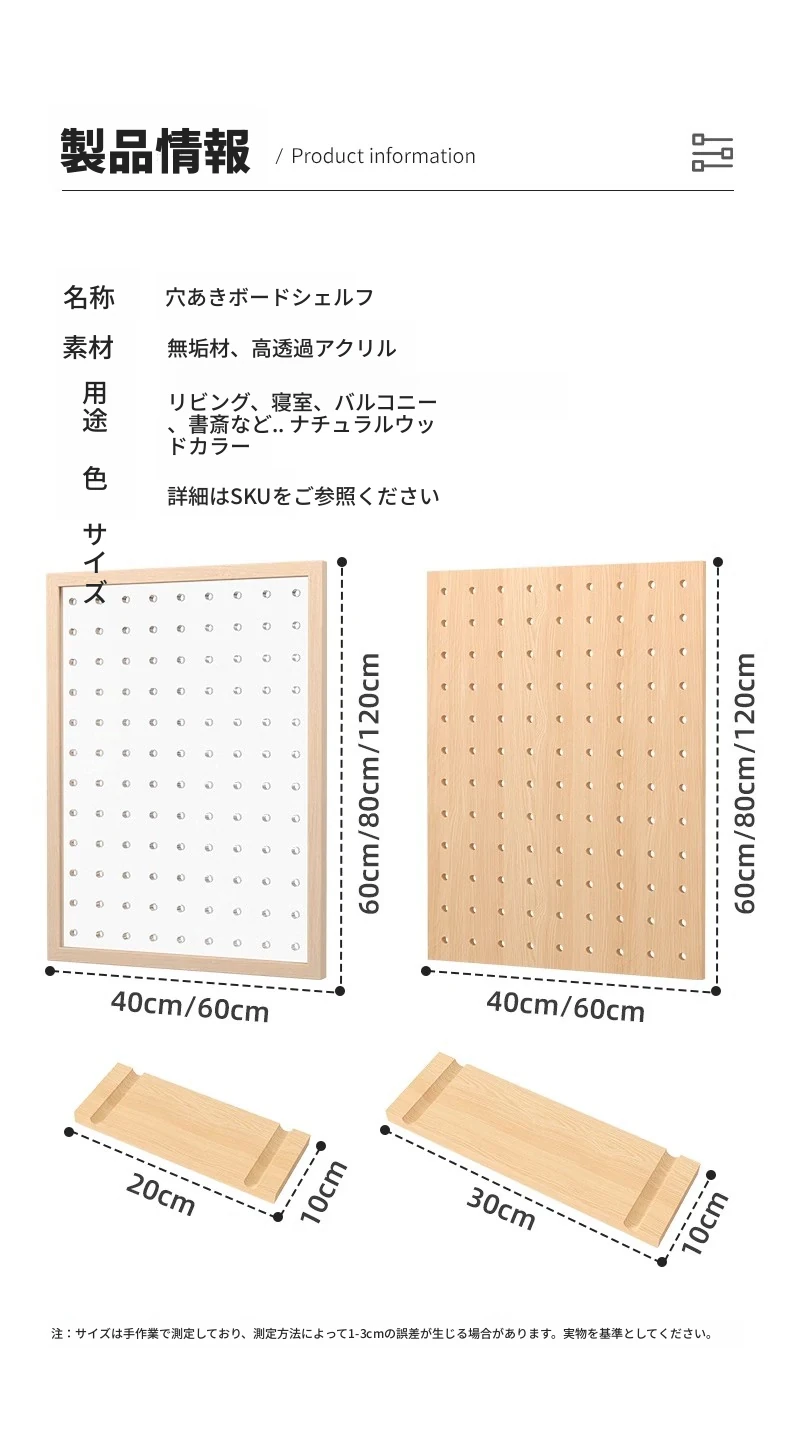 穴あきボード収納ラック アクリル壁掛けデスクブックシェルフ 穴なし取り付け 木製収納ディスプレイラック おしゃれで実用的!お部屋をスッキリ整理整頓!