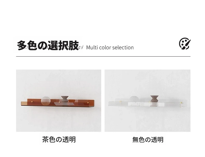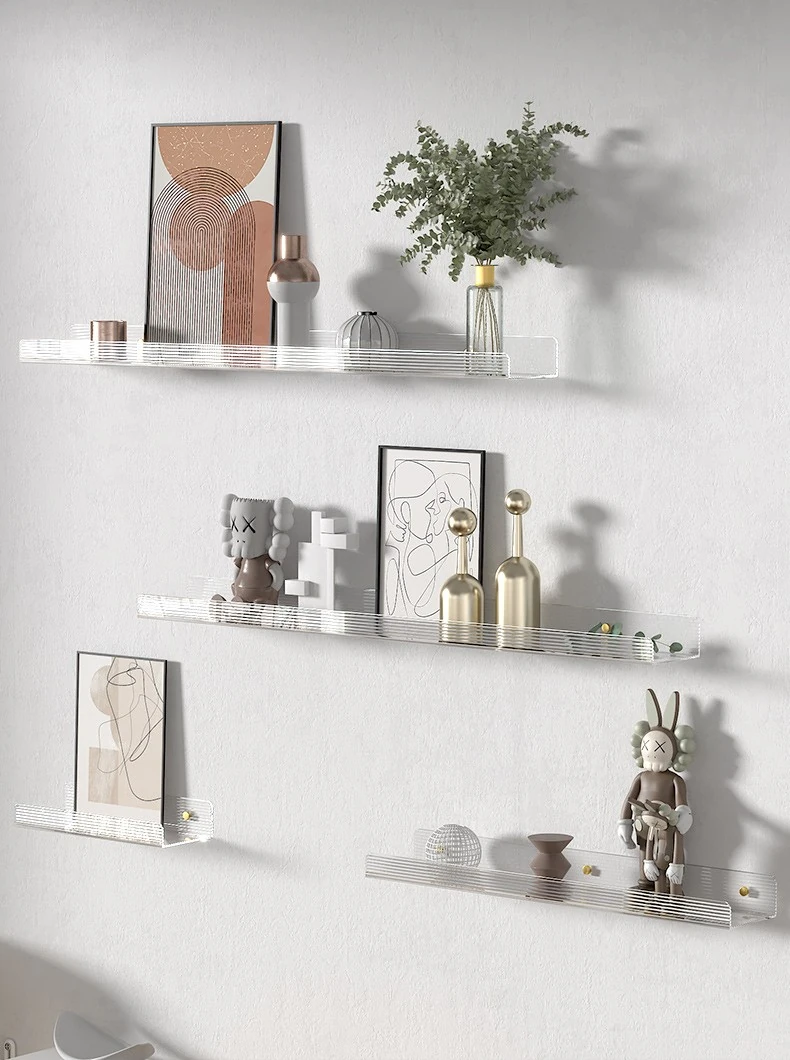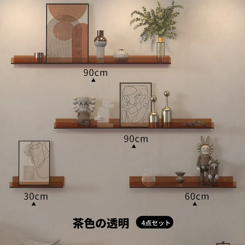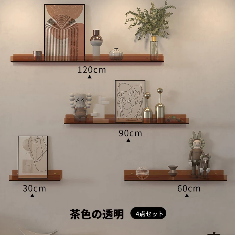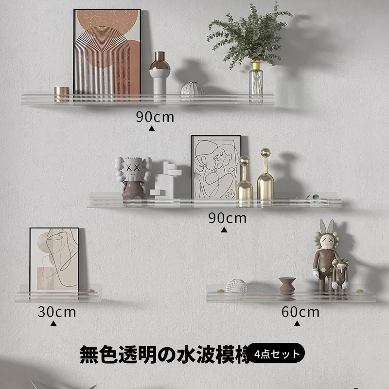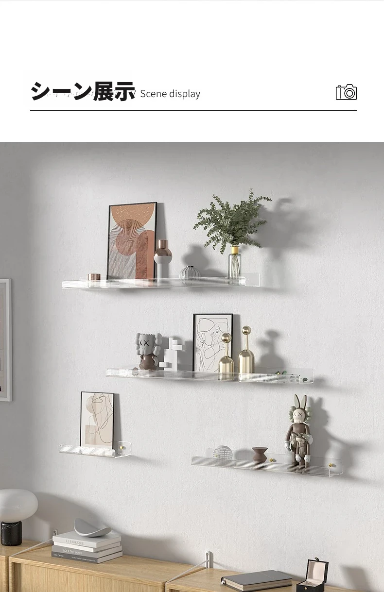壁掛けアクリルシェルフ - スタイリッシュな壁面ディスプレイ!空間を有効活用し、インテリアをおしゃれに演出する一文字型の棚。書籍や小物の展示に最適なデザインで、あなたのお部屋を華やかに彩ります。