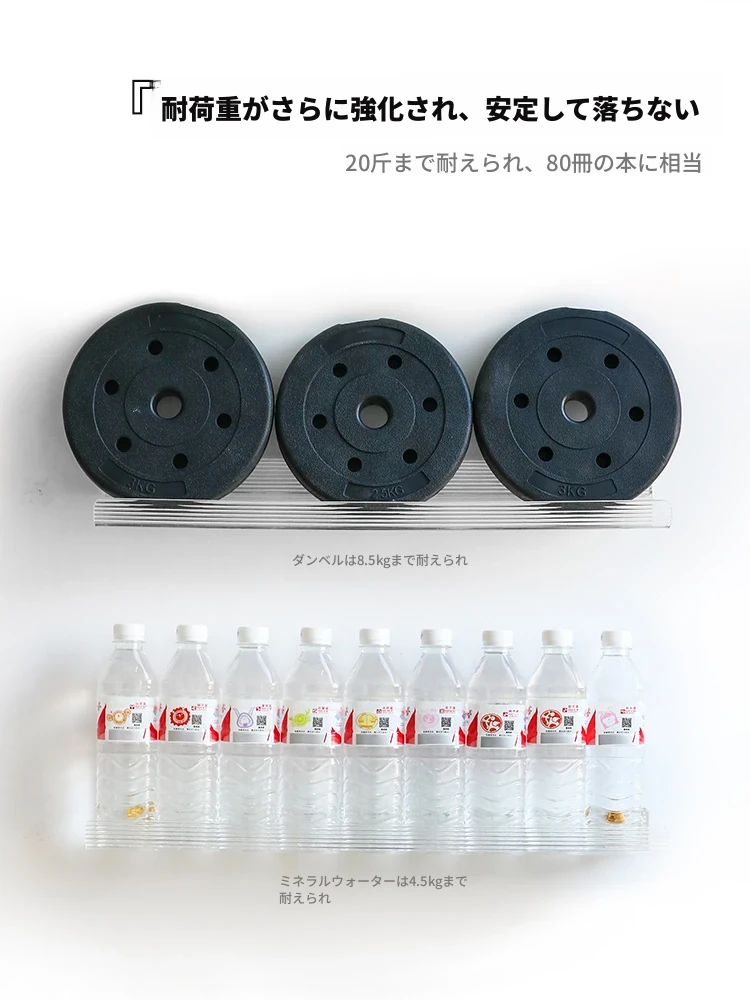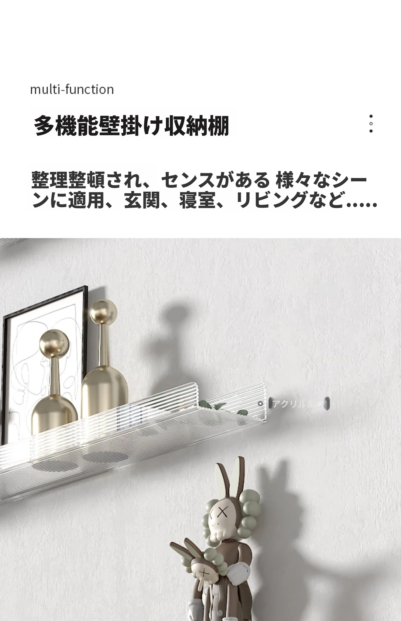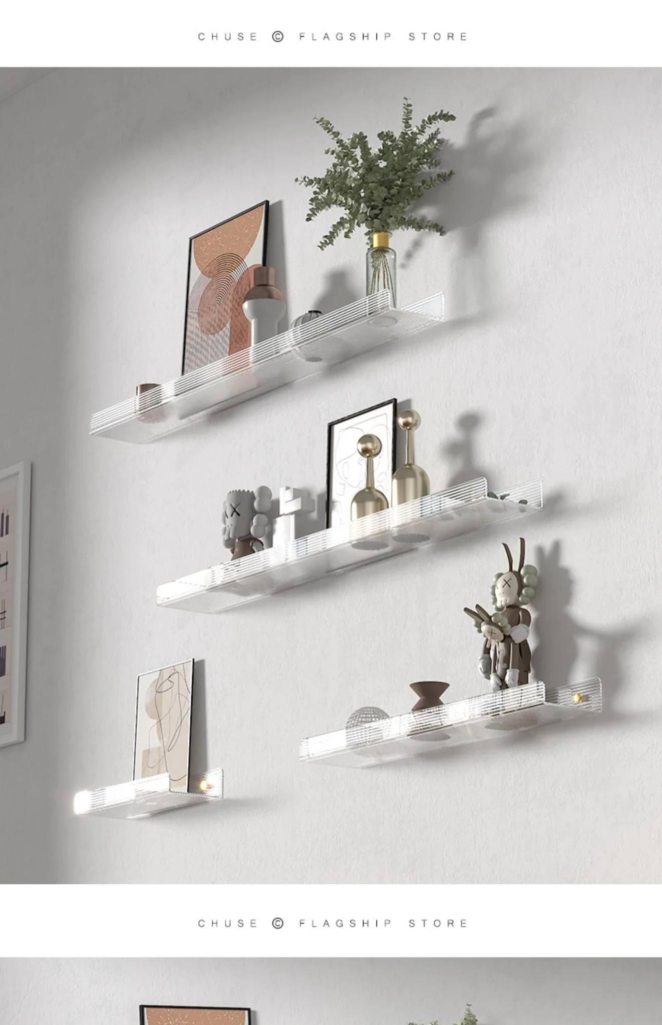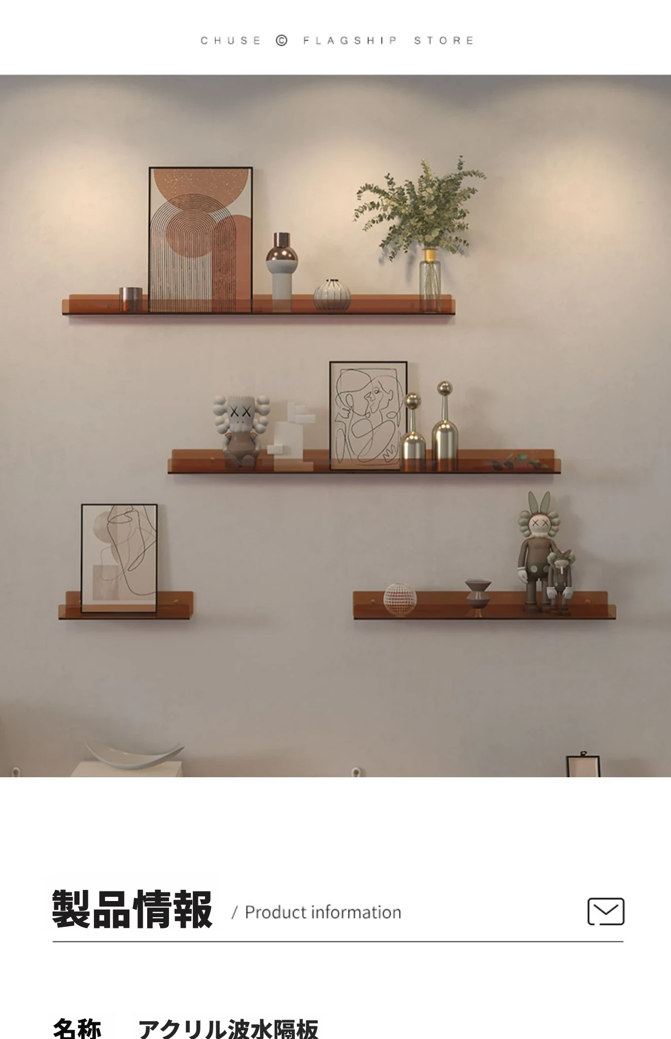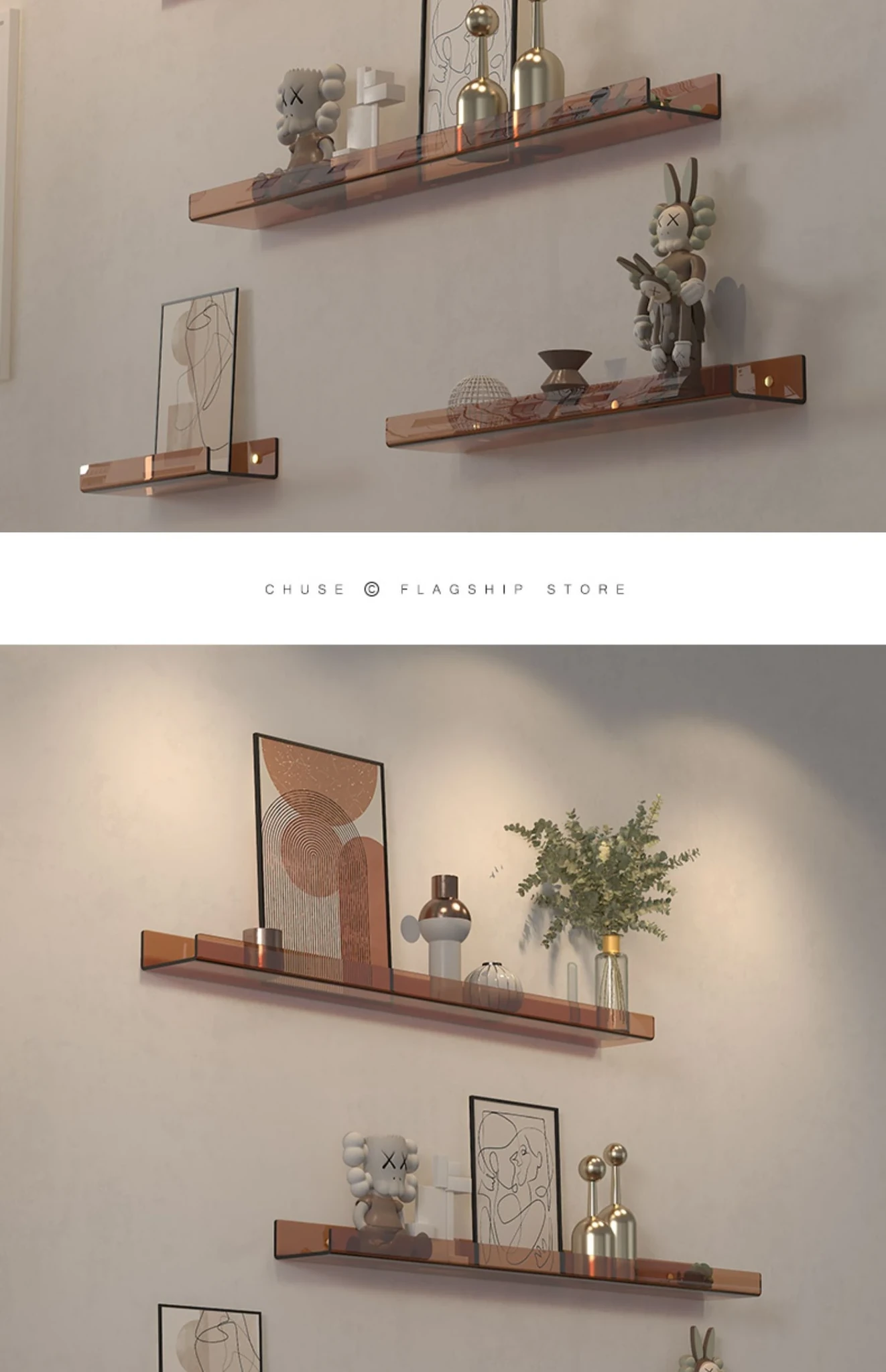 壁掛けアクリルシェルフ - スタイリッシュな壁面ディスプレイ!空間を有効活用し、インテリアをおしゃれに演出する一文字型の棚。書籍や小物の展示に最適なデザインで、あなたのお部屋を華やかに彩ります。