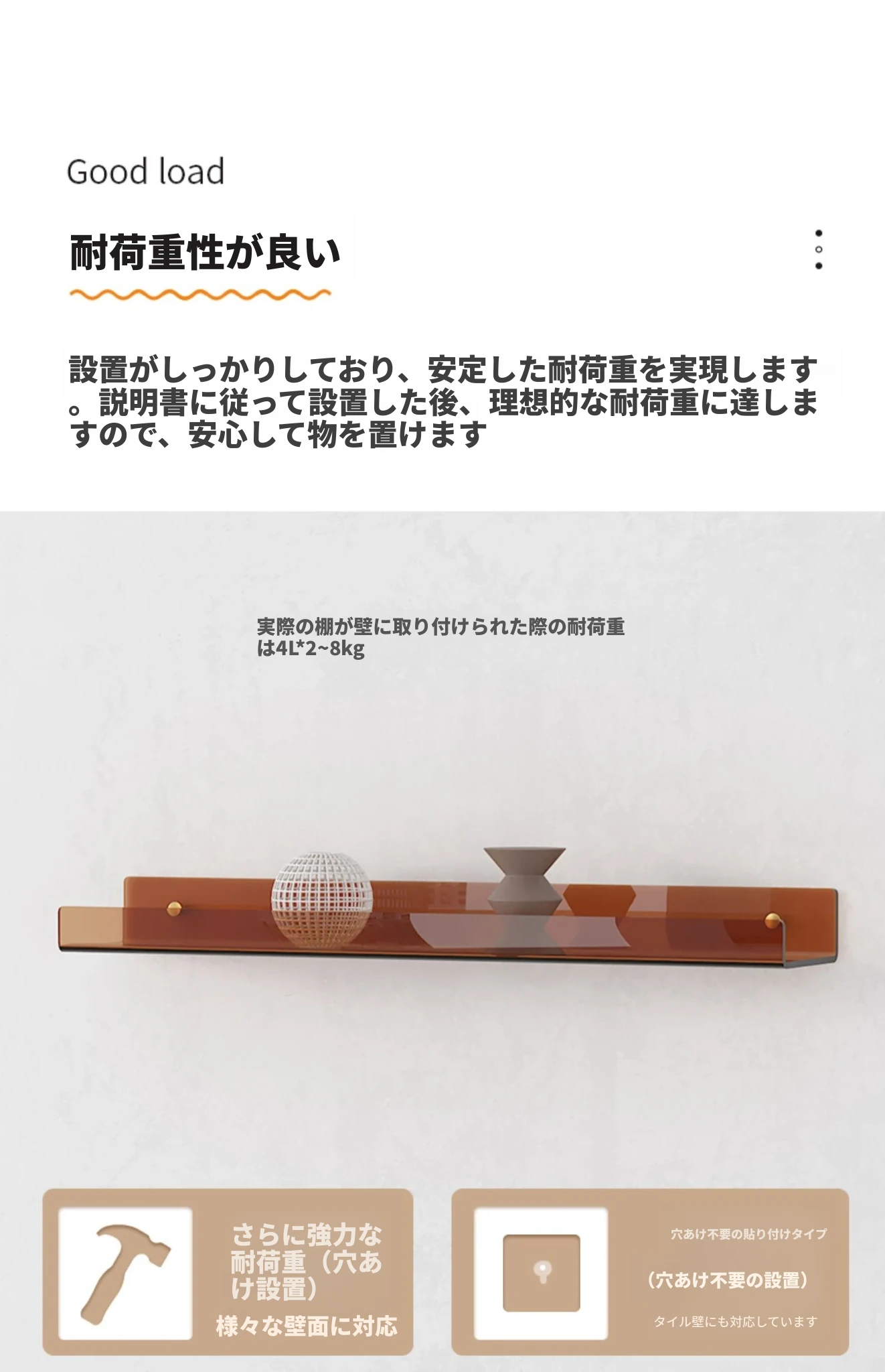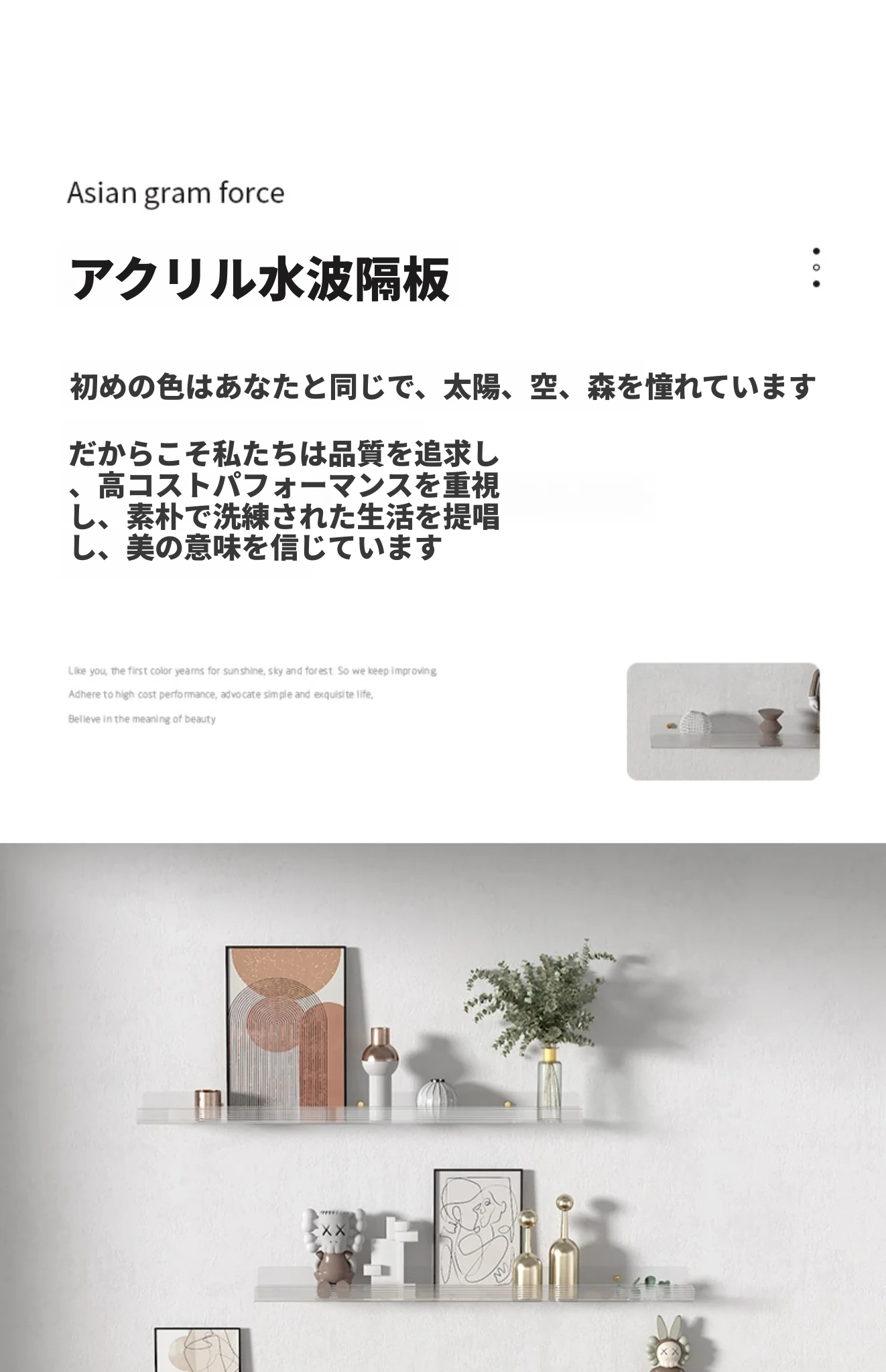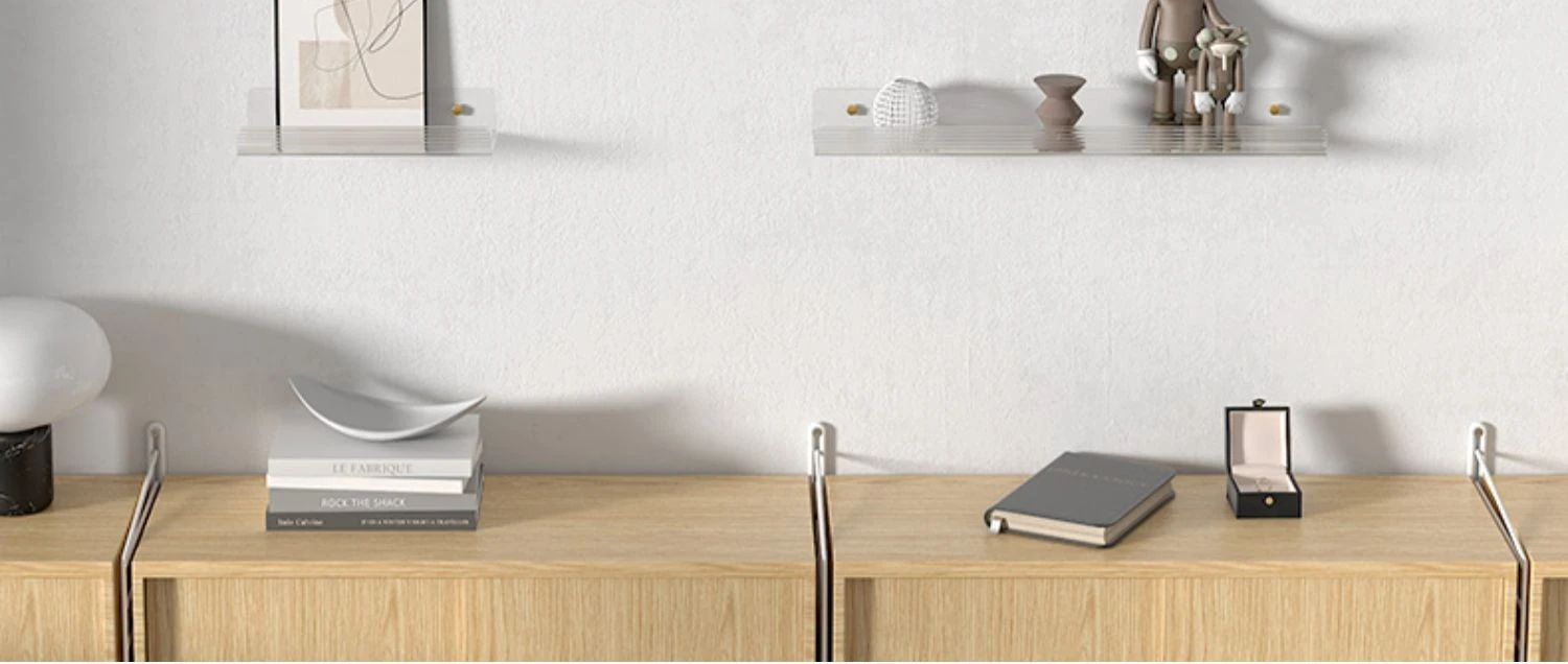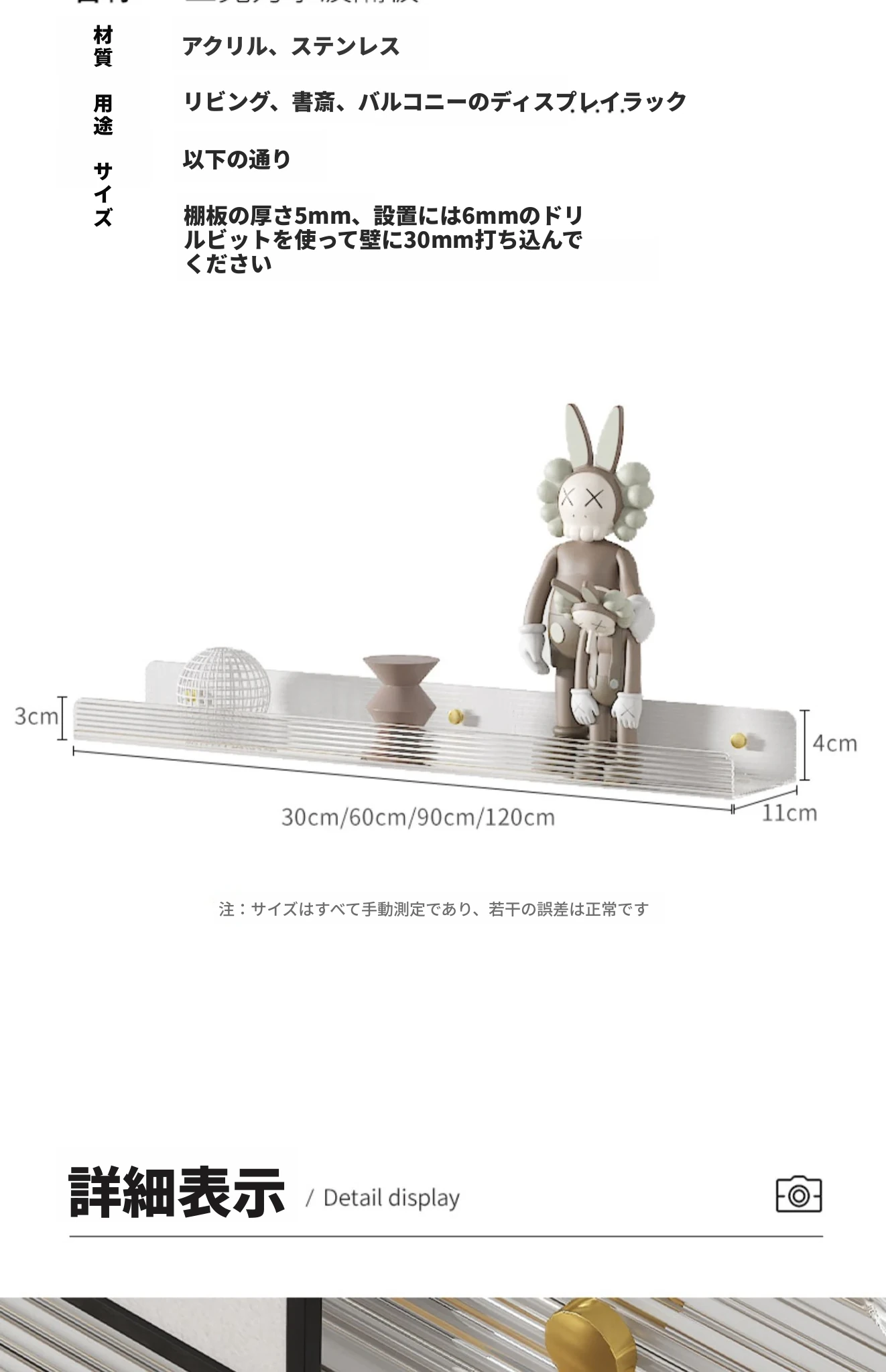 壁掛けアクリルシェルフ - スタイリッシュな壁面ディスプレイ!空間を有効活用し、インテリアをおしゃれに演出する一文字型の棚。書籍や小物の展示に最適なデザインで、あなたのお部屋を華やかに彩ります。