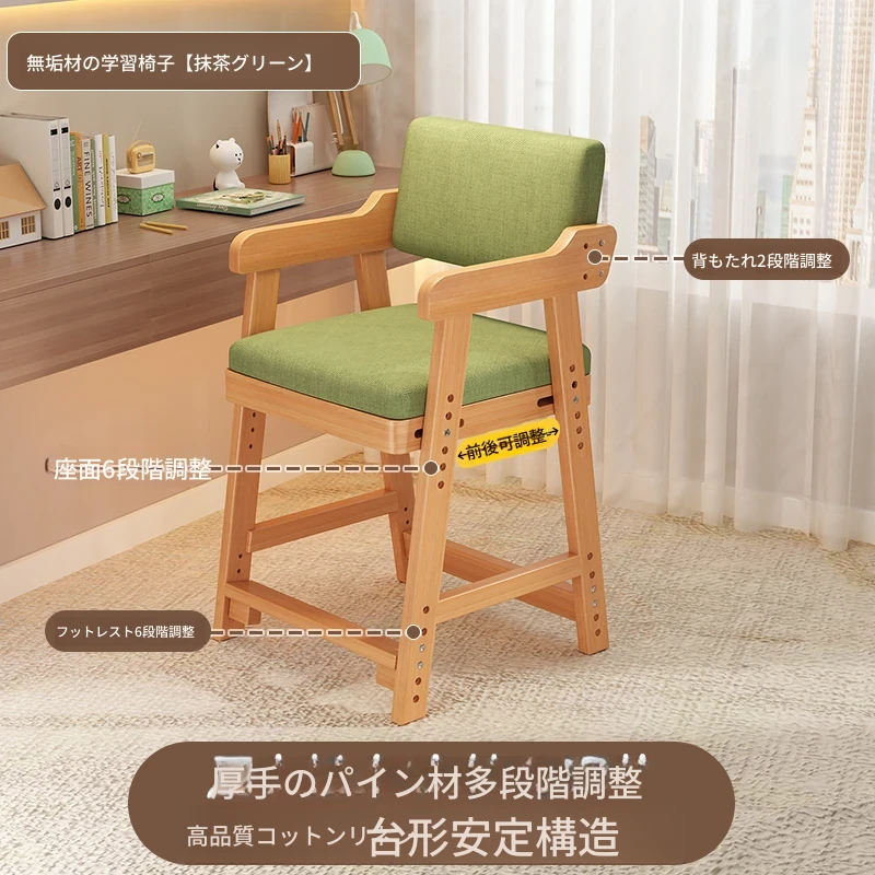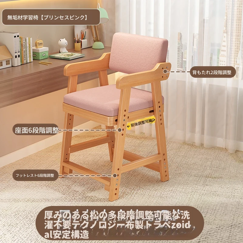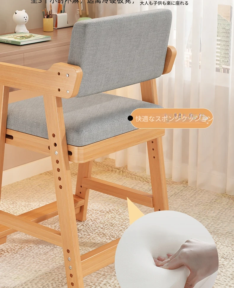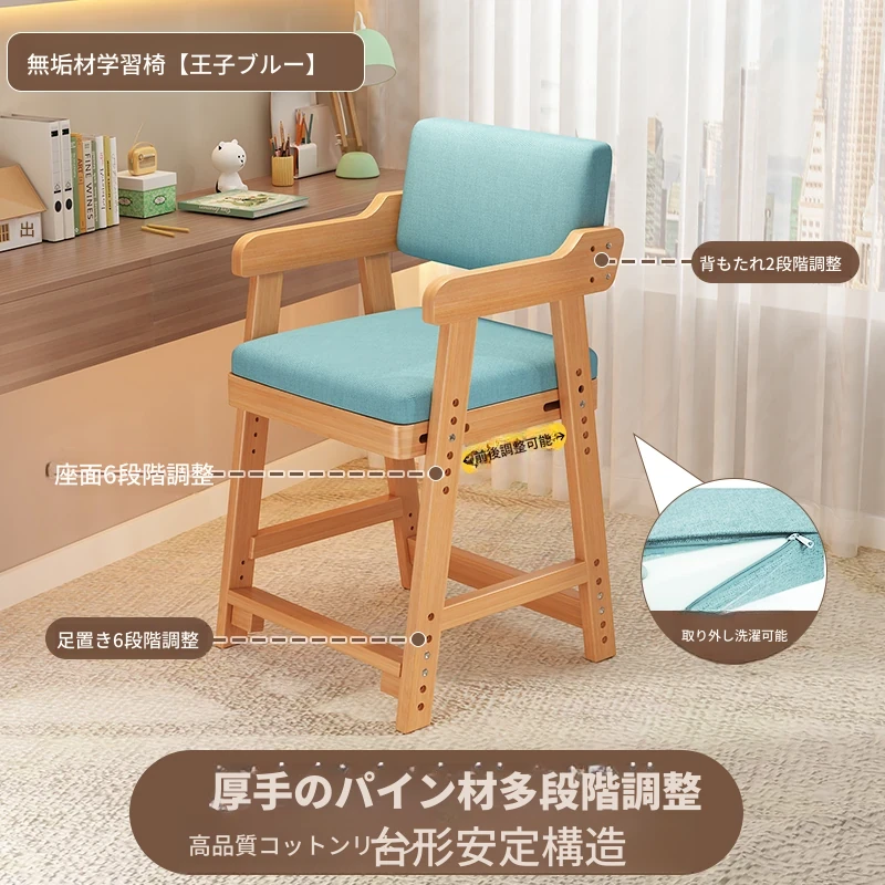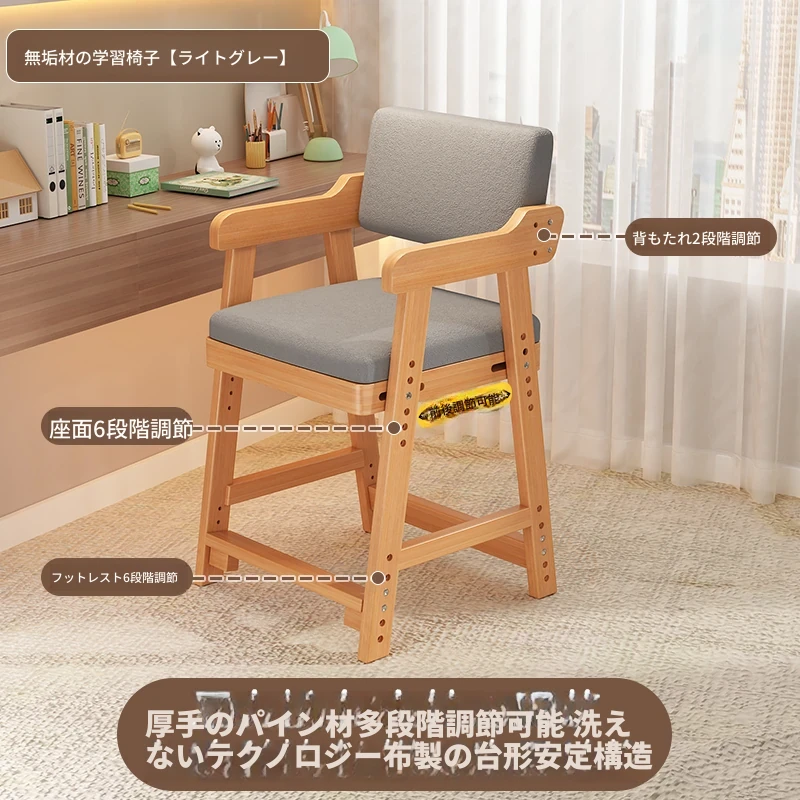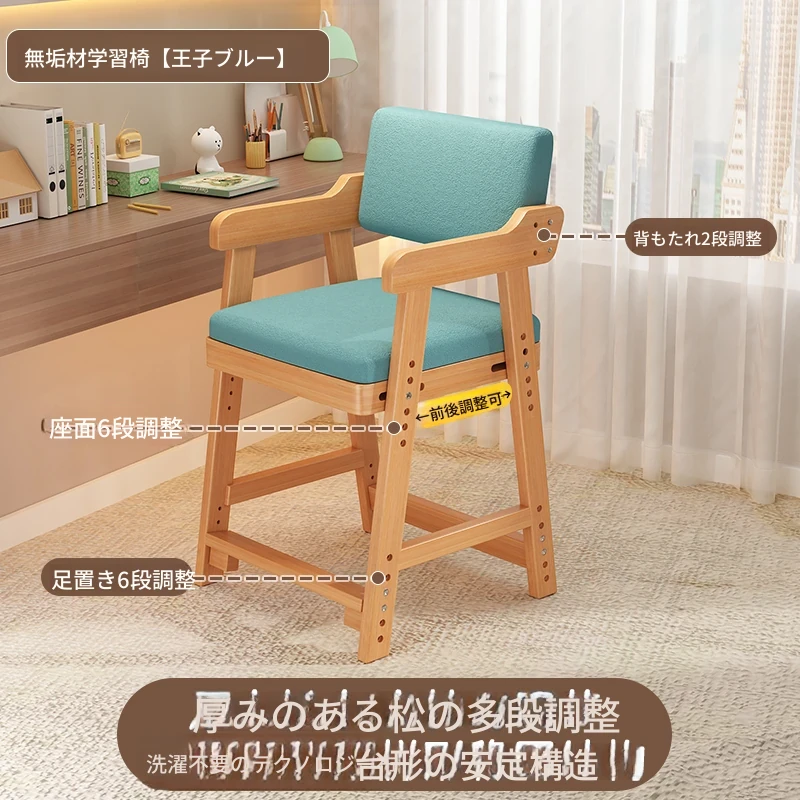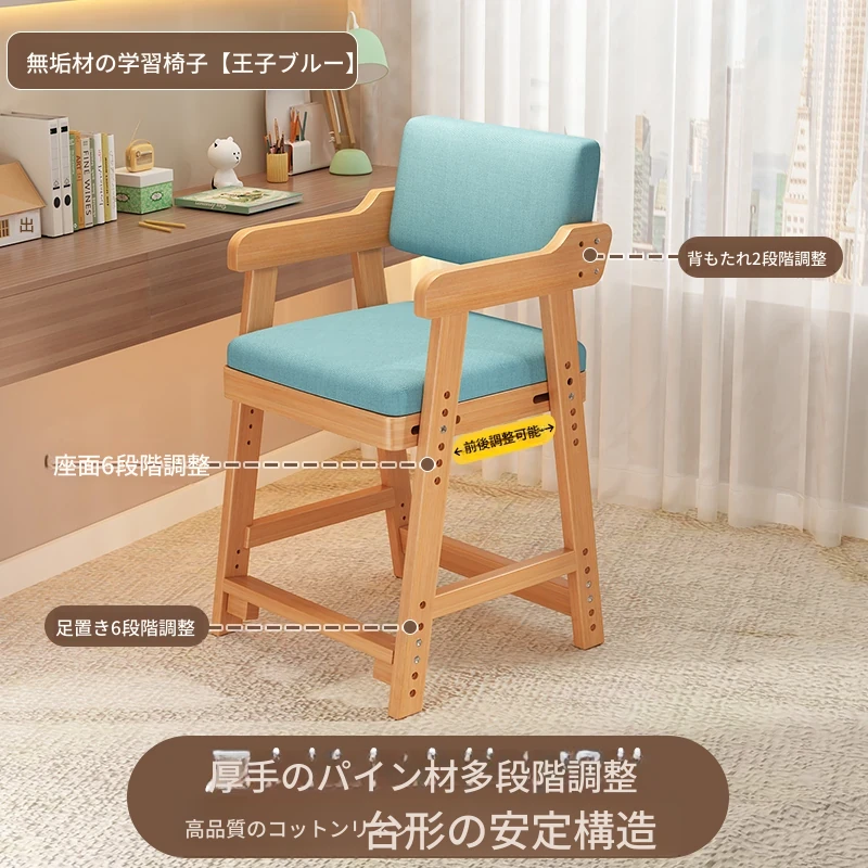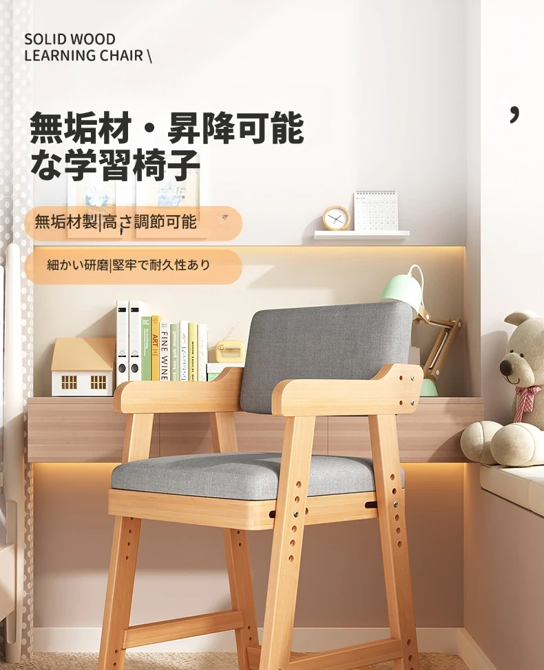 子供用学習チェア、昇降可能な無垢材製!家庭用ダイニングチェアとしても最適。小学生の宿題やお絵かきにぴったりの調整可能な椅子。快適さと成長に合わせたデザインで、学習時間を楽しくサポートします!
