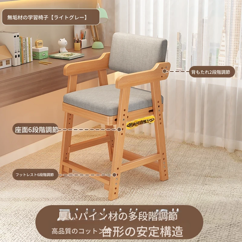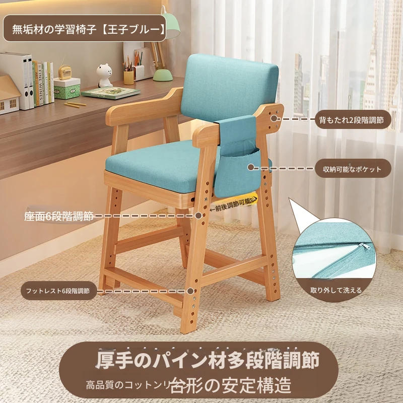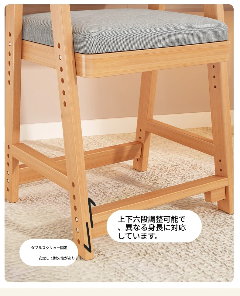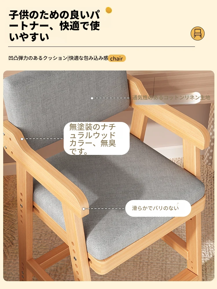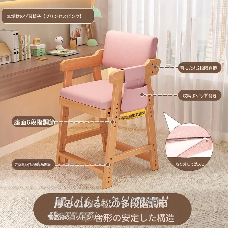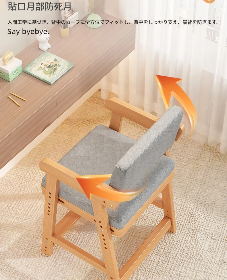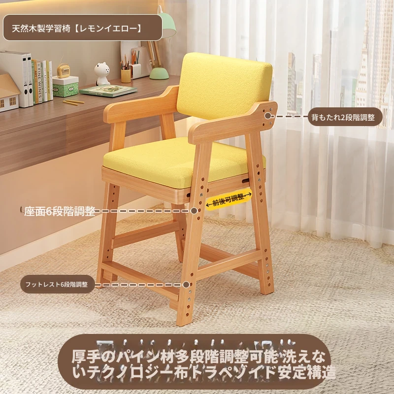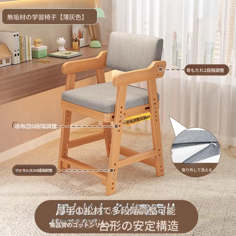 子供用学習チェア、昇降可能な無垢材製!家庭用ダイニングチェアとしても最適。小学生の宿題やお絵かきにぴったりの調整可能な椅子。快適さと成長に合わせたデザインで、学習時間を楽しくサポートします!