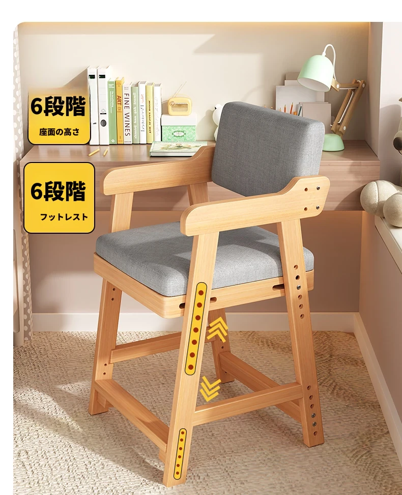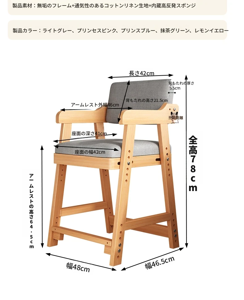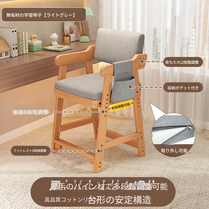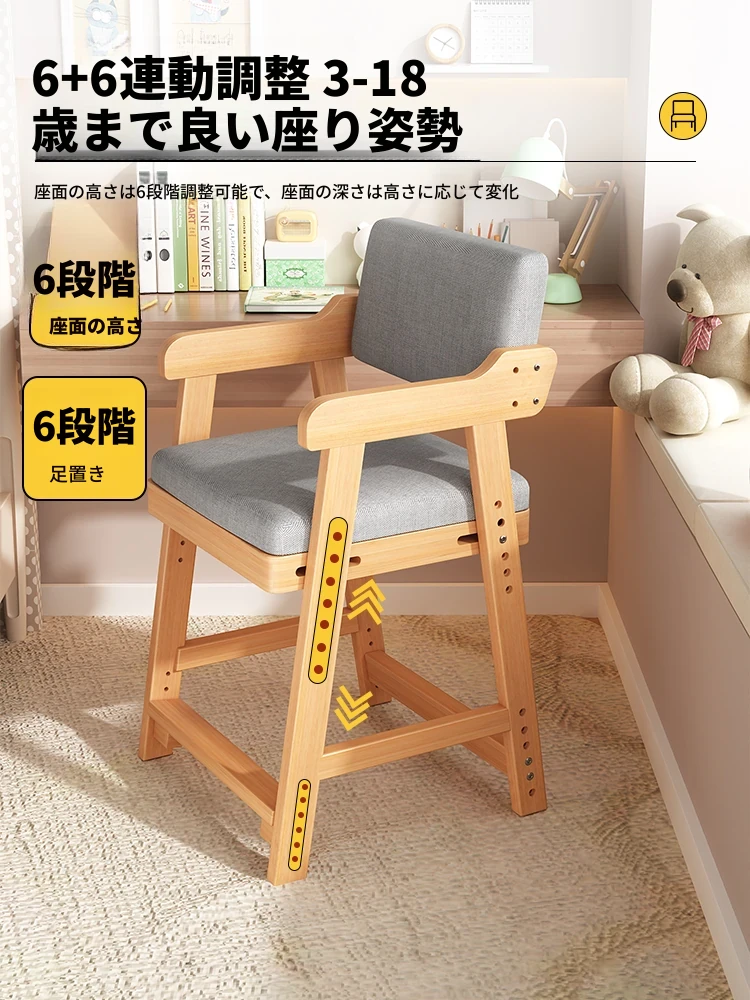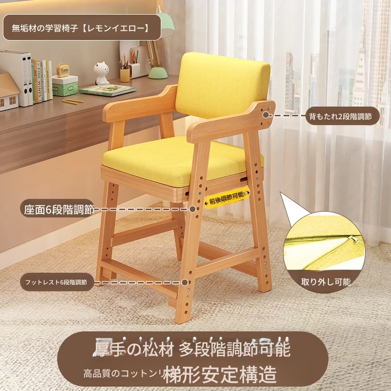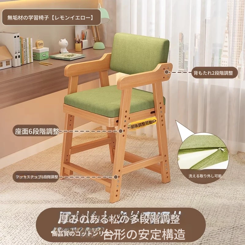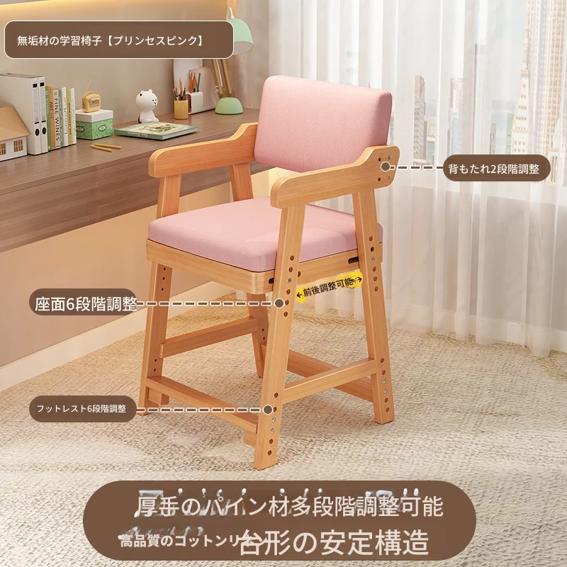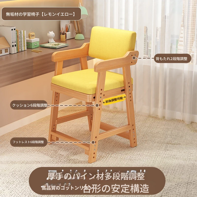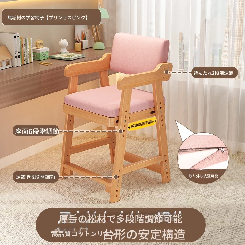子供用学習チェア、昇降可能な無垢材製!家庭用ダイニングチェアとしても最適。小学生の宿題やお絵かきにぴったりの調整可能な椅子。快適さと成長に合わせたデザインで、学習時間を楽しくサポートします!