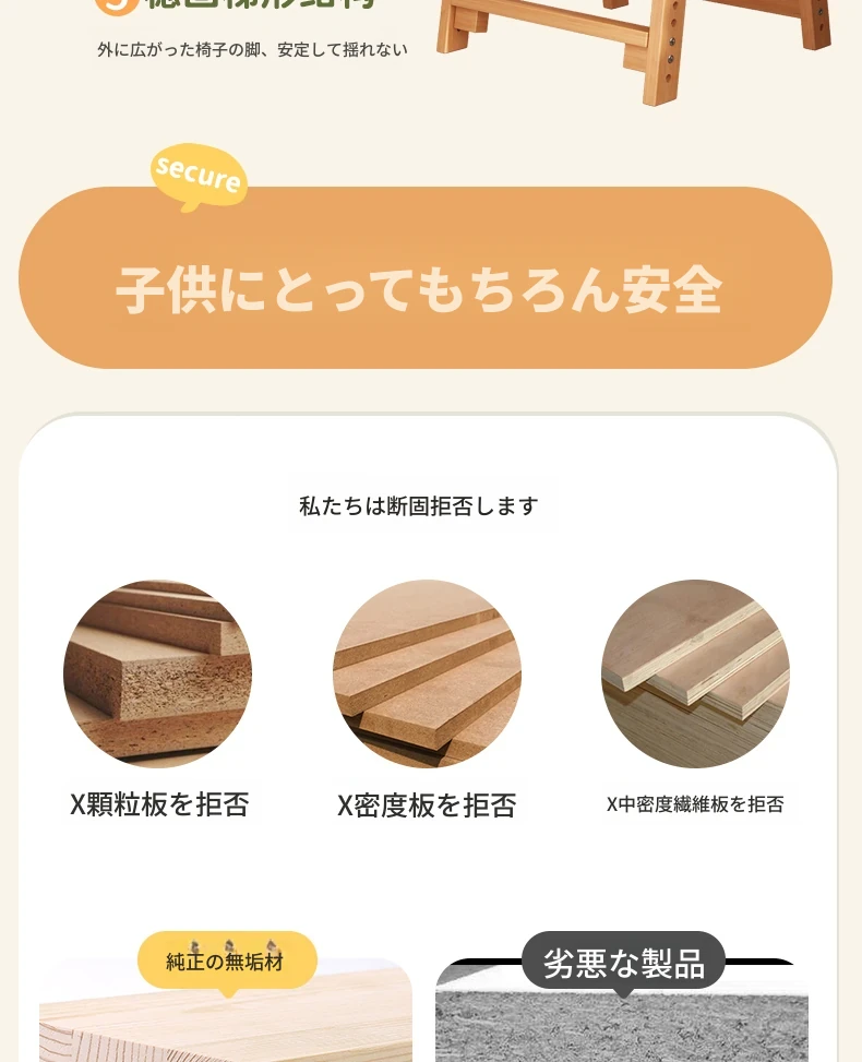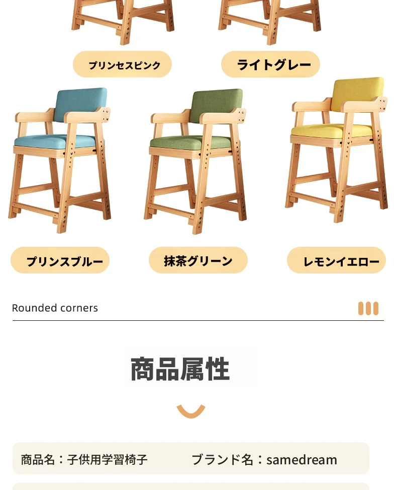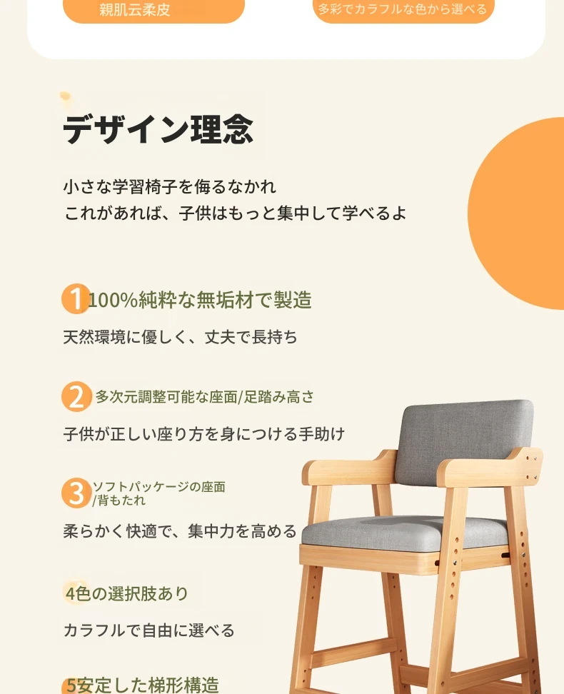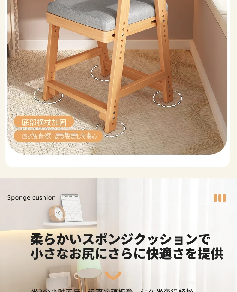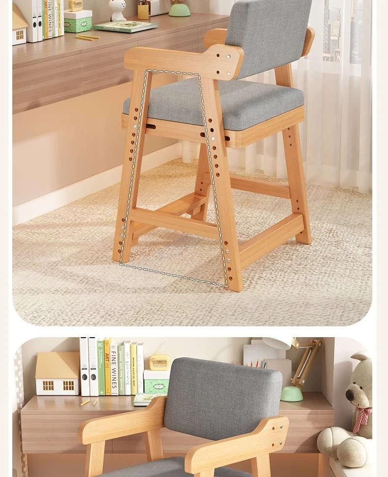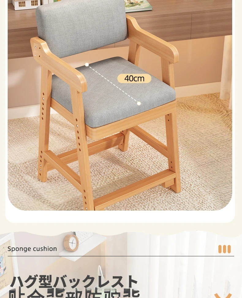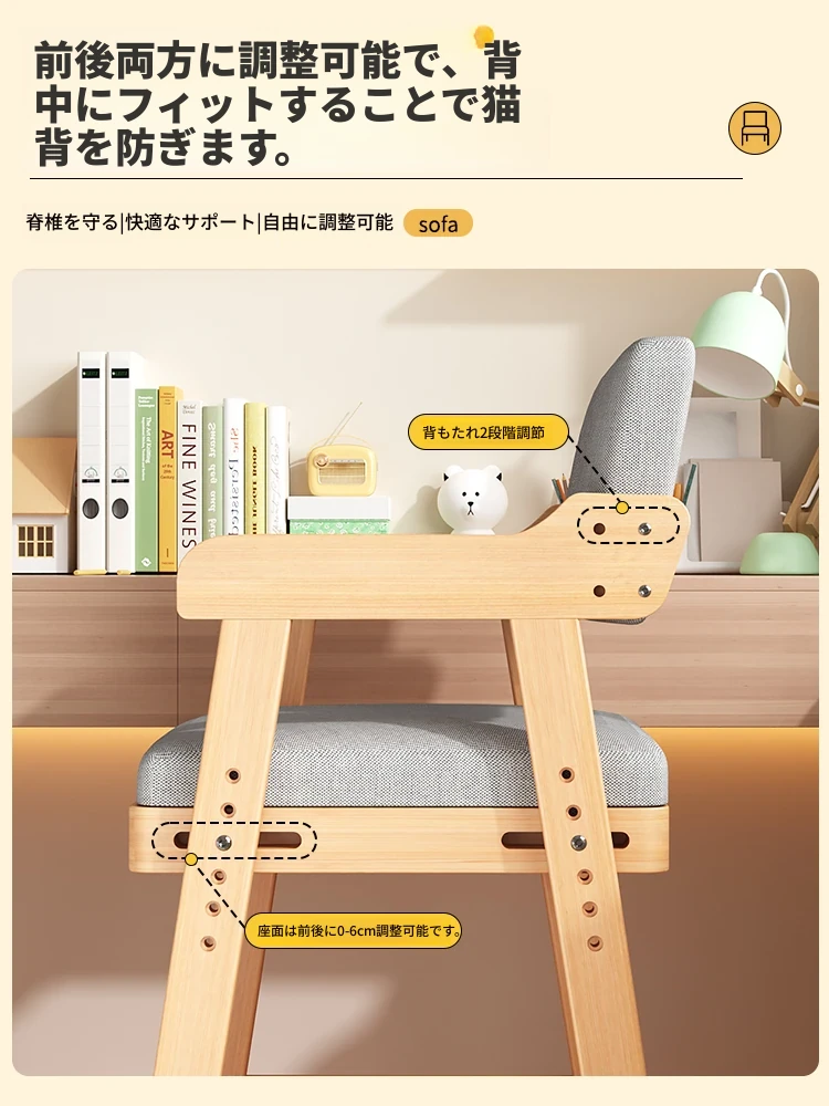 子供用学習チェア、昇降可能な無垢材製!家庭用ダイニングチェアとしても最適。小学生の宿題やお絵かきにぴったりの調整可能な椅子。快適さと成長に合わせたデザインで、学習時間を楽しくサポートします!