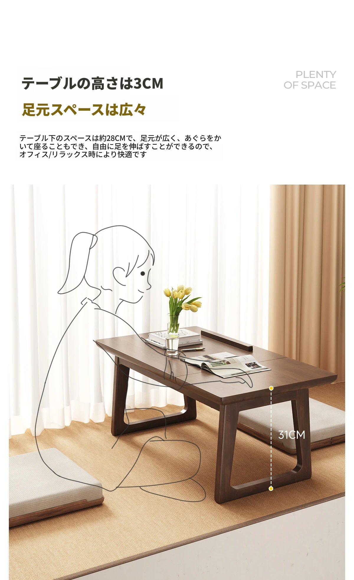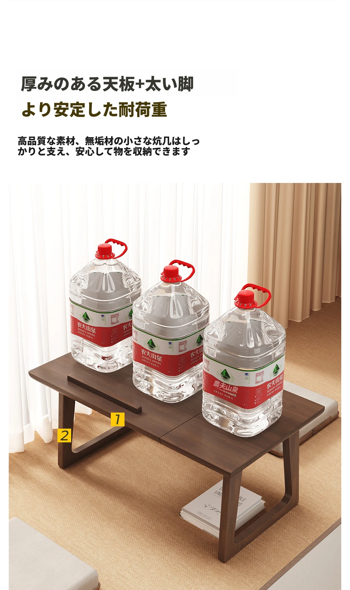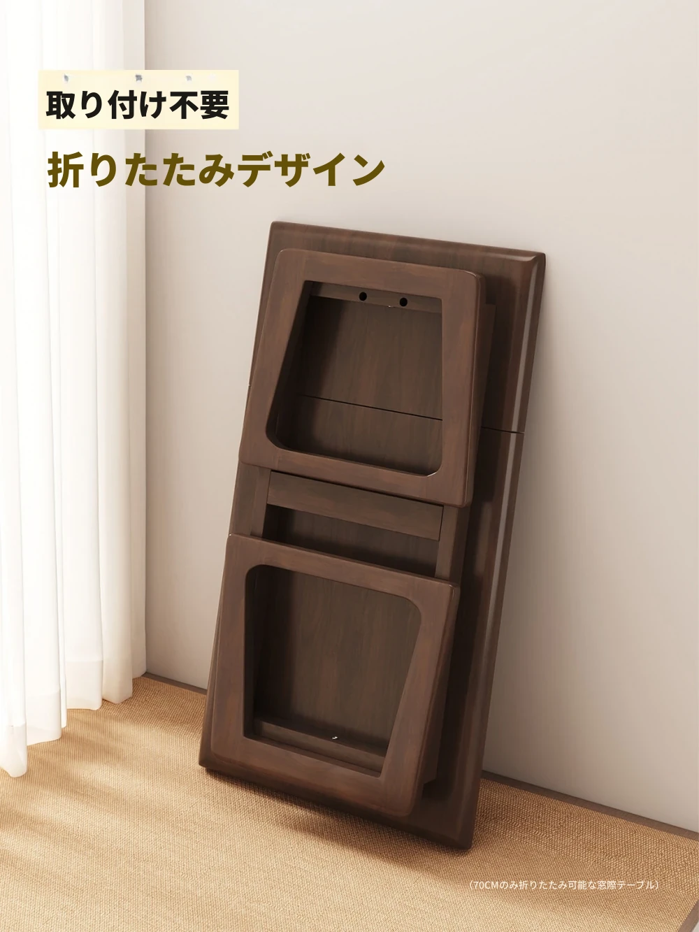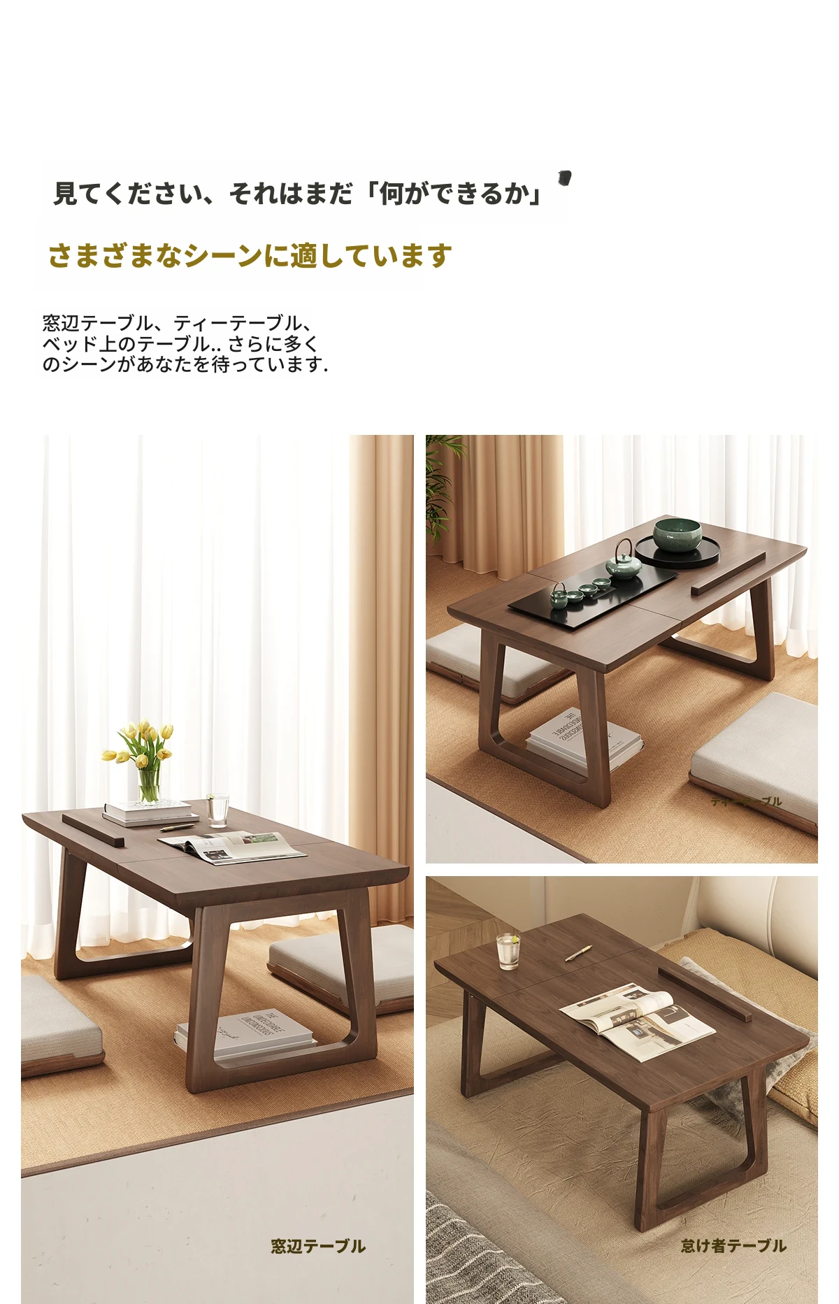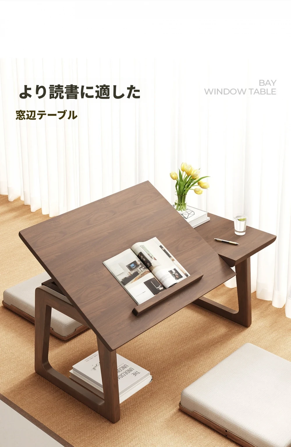 折りたたみ式窓辺テーブル - 和風畳用お茶テーブル、寝室に最適な無垢材製、床に座ってリラックスできる小型テーブル