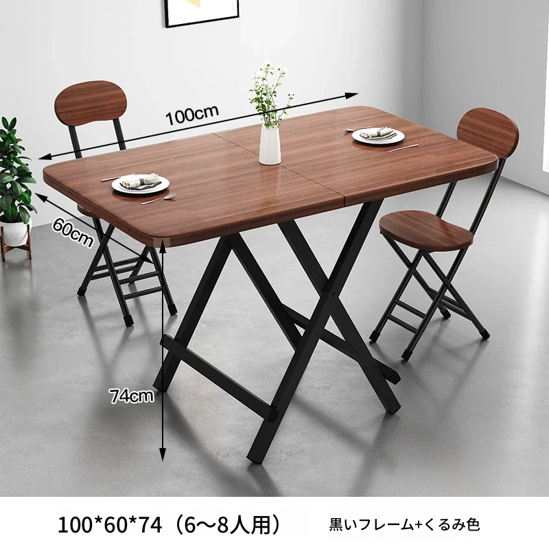 【黒フレーム+ウォールナット】100*60*74cm長方テーブル(6-8人用)