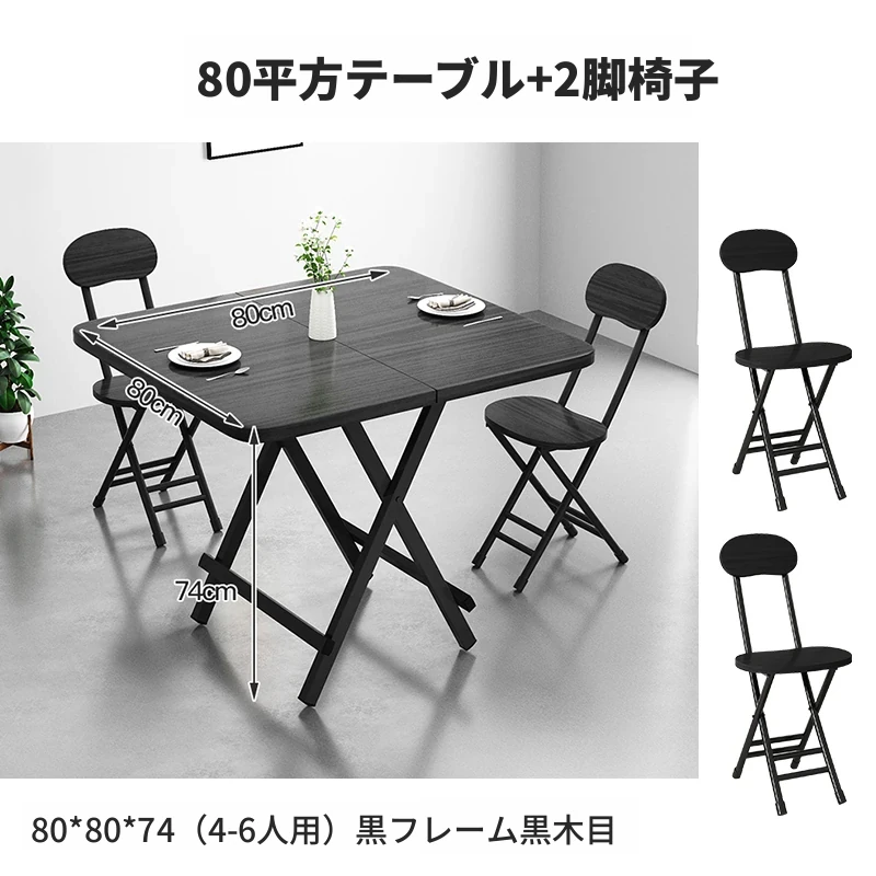 【セット】80平方テーブル+2脚折りたたみ椅子 黒色