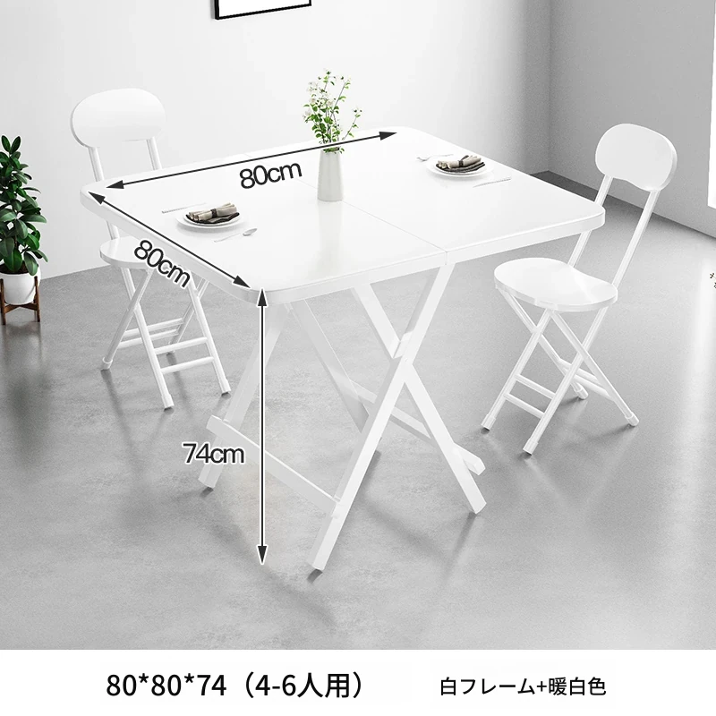 【白脚+ウォームホワイト】80*80*74cm平方テーブル(4-6人用)