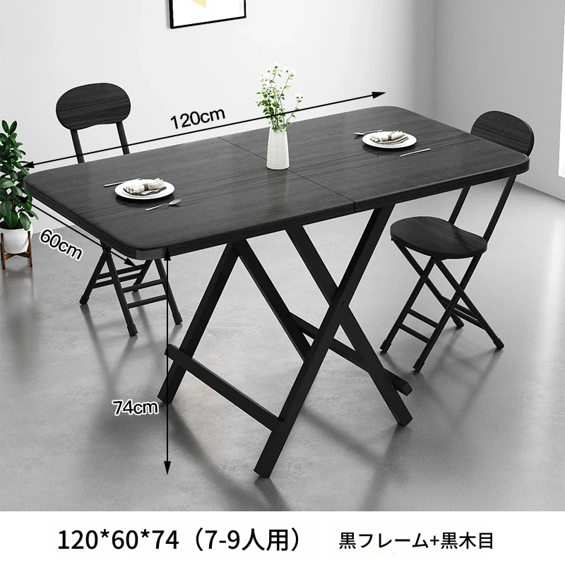 【黒フレーム+ブラックウッド】120*60*74cm長方テーブル(7-9人用)