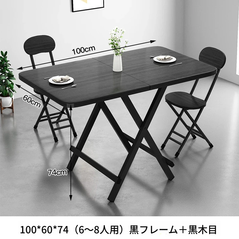 【セット】100*60長方テーブル+2脚折りたたみ椅子 黒色