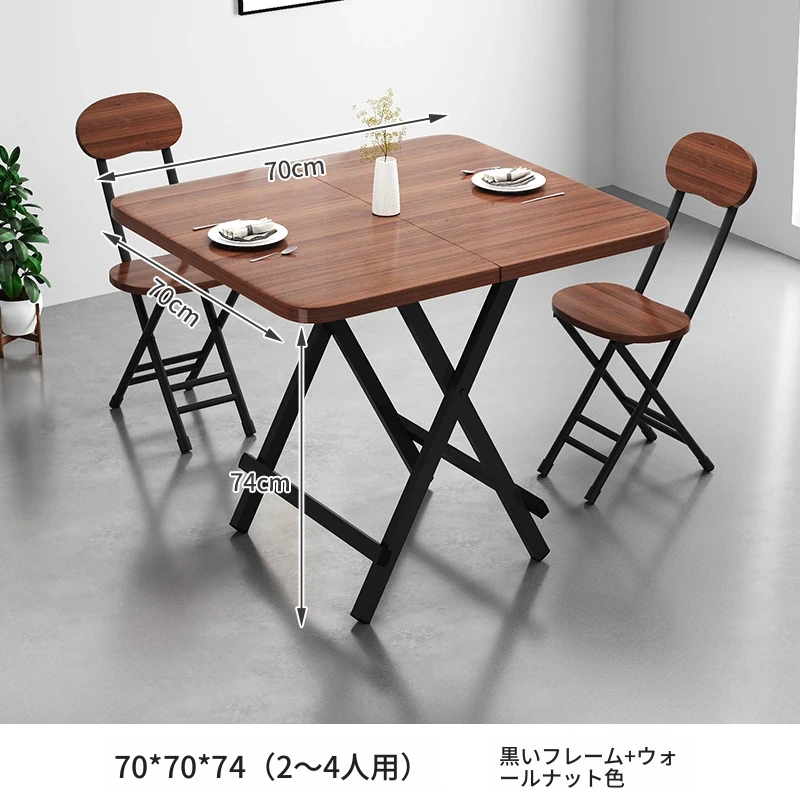 【黒フレーム+ウォールナット】70*70*74cm平方テーブル(2-4人用)