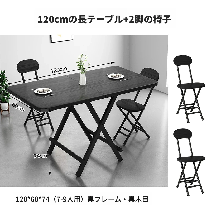 【セット】120*60長方テーブル+2脚折りたたみ椅子 黒色