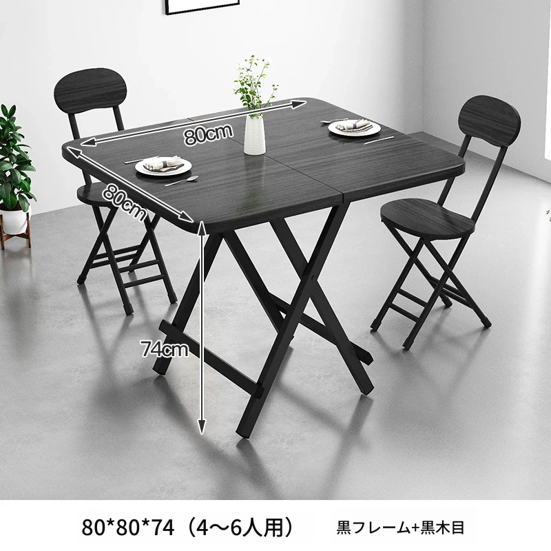 【黒フレーム+ブラックウッド】80*80*74cm平方テーブル(4-6人用)