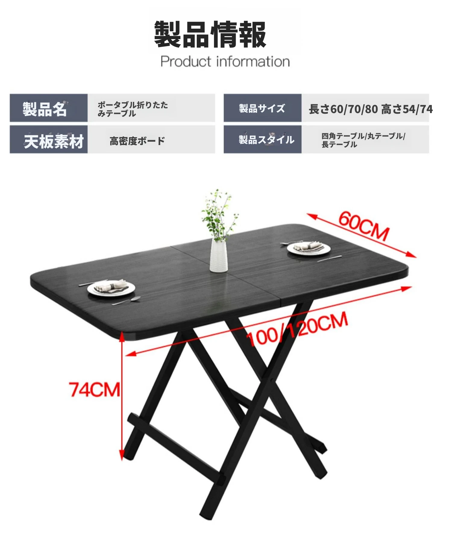 折りたたみ式ダイニングテーブル|省スペースの小型長方形デザイン|家庭用・アウトドアにも最適|便利なバルコニー用|コンパクトで持ち運び簡単!快適な食事空間をお楽しみください。