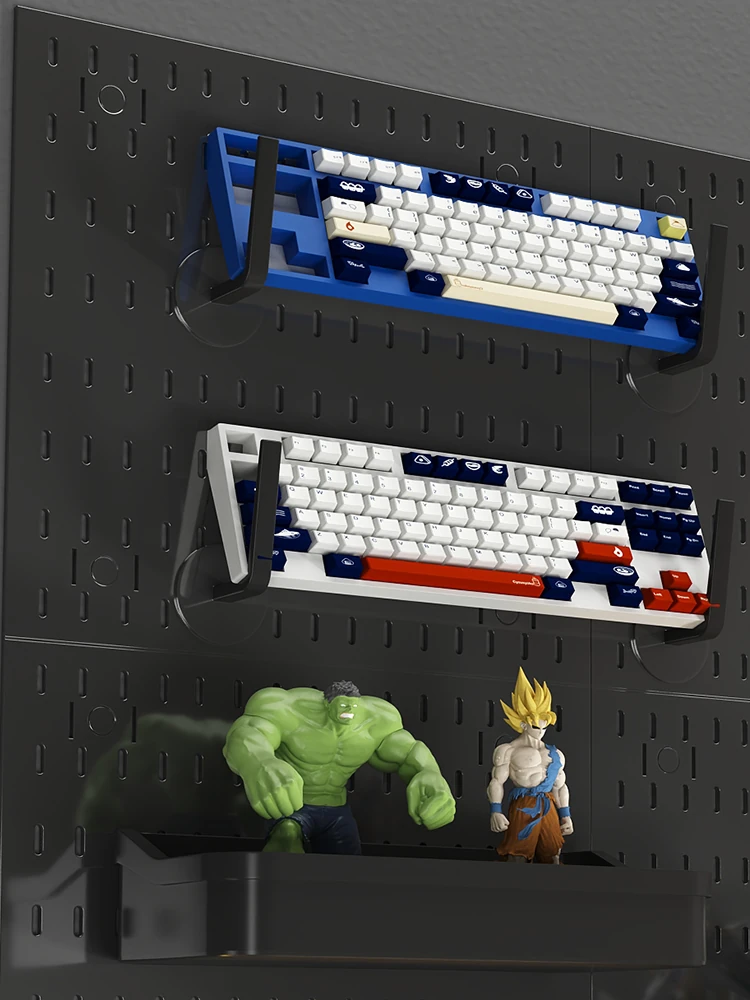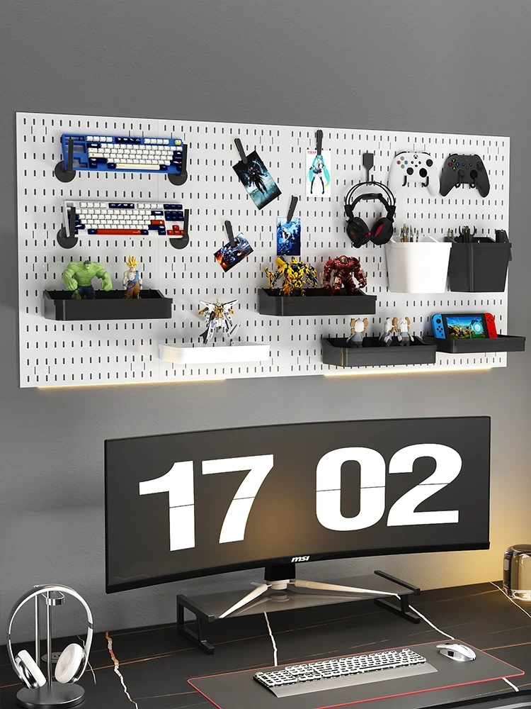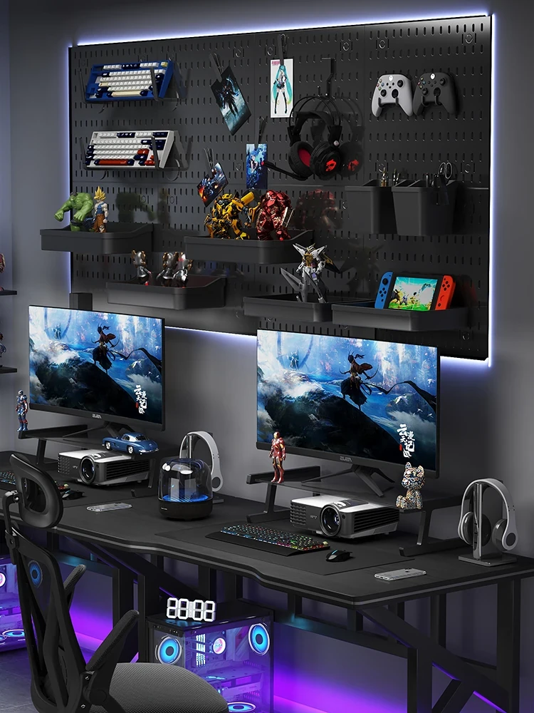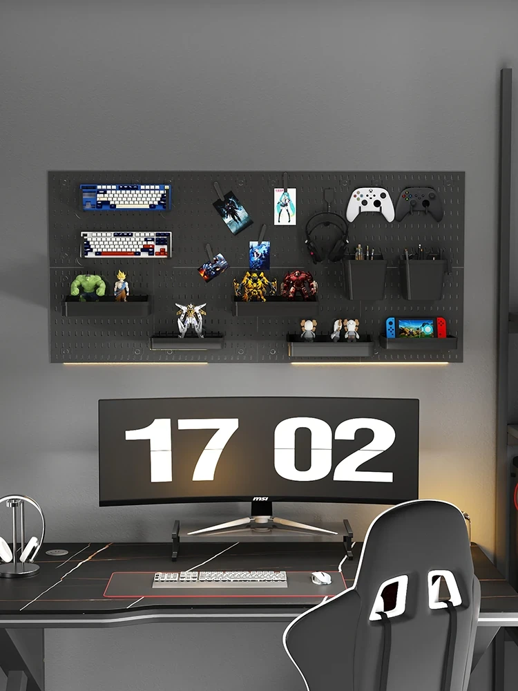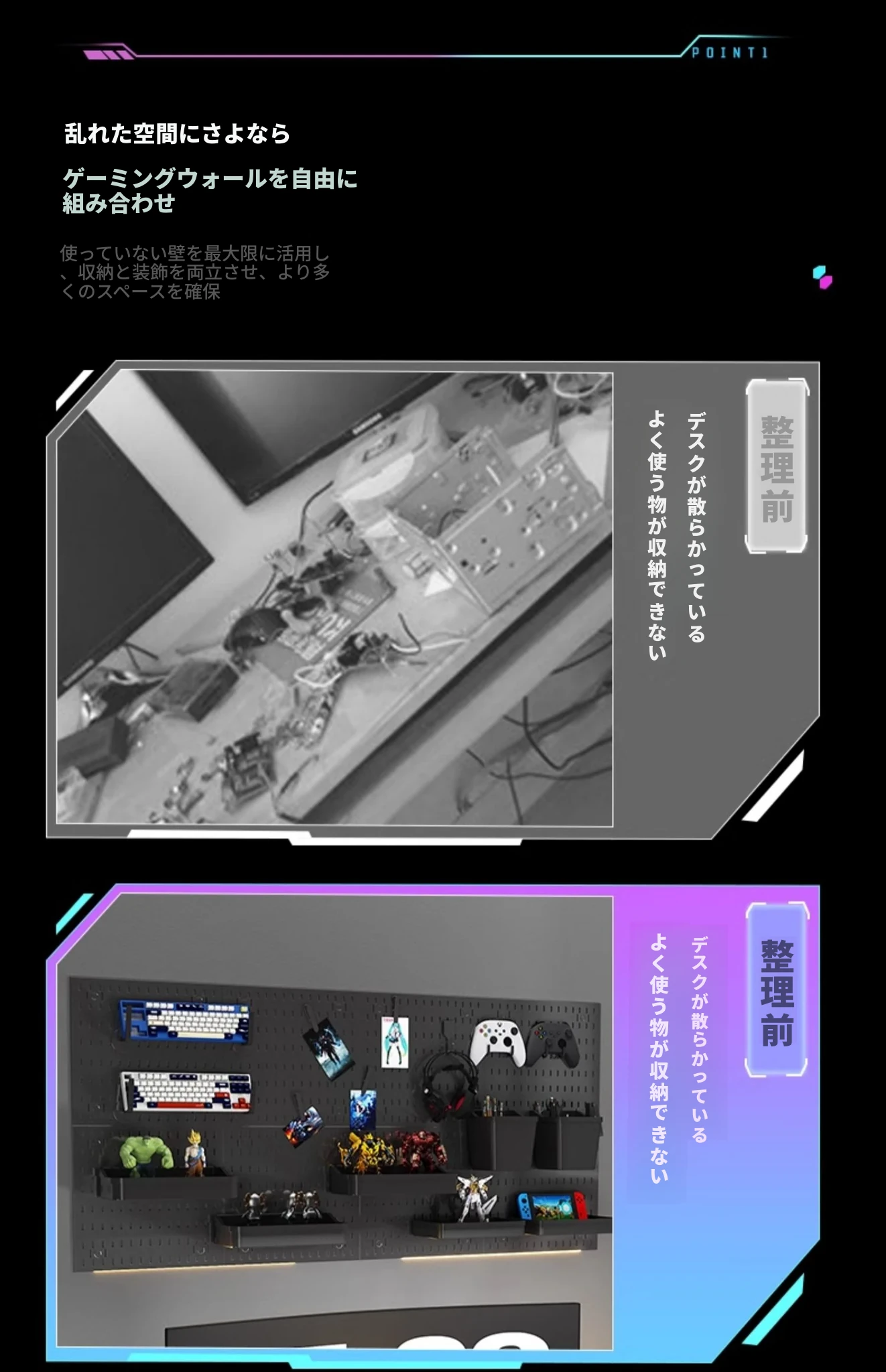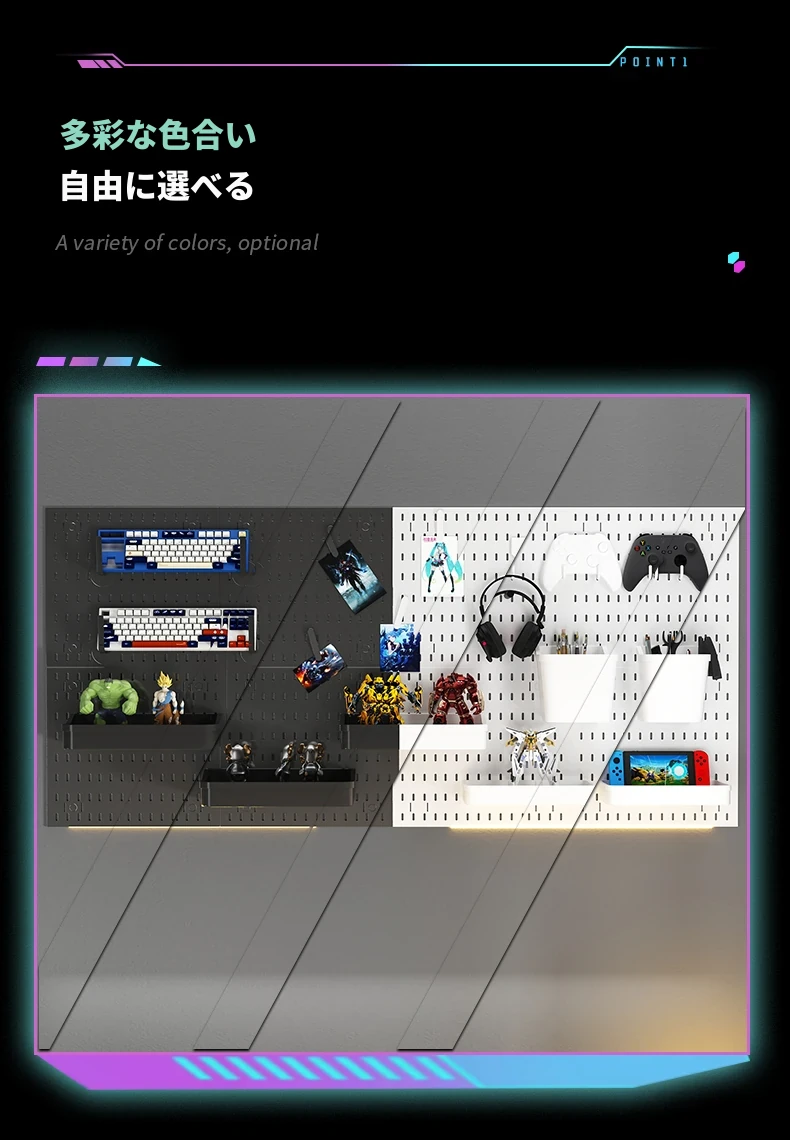 三夢eスポーツルーム用壁掛け収納棚 - 穴あけ不要で簡単取り付け!ゲーミングデスクに最適なアクセサリーやディスプレイを美しく収納。あなたのゲーム空間をスタイリッシュに演出!