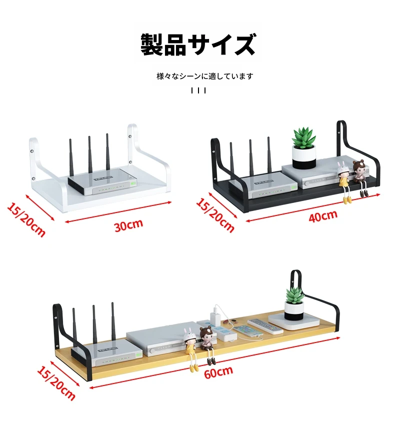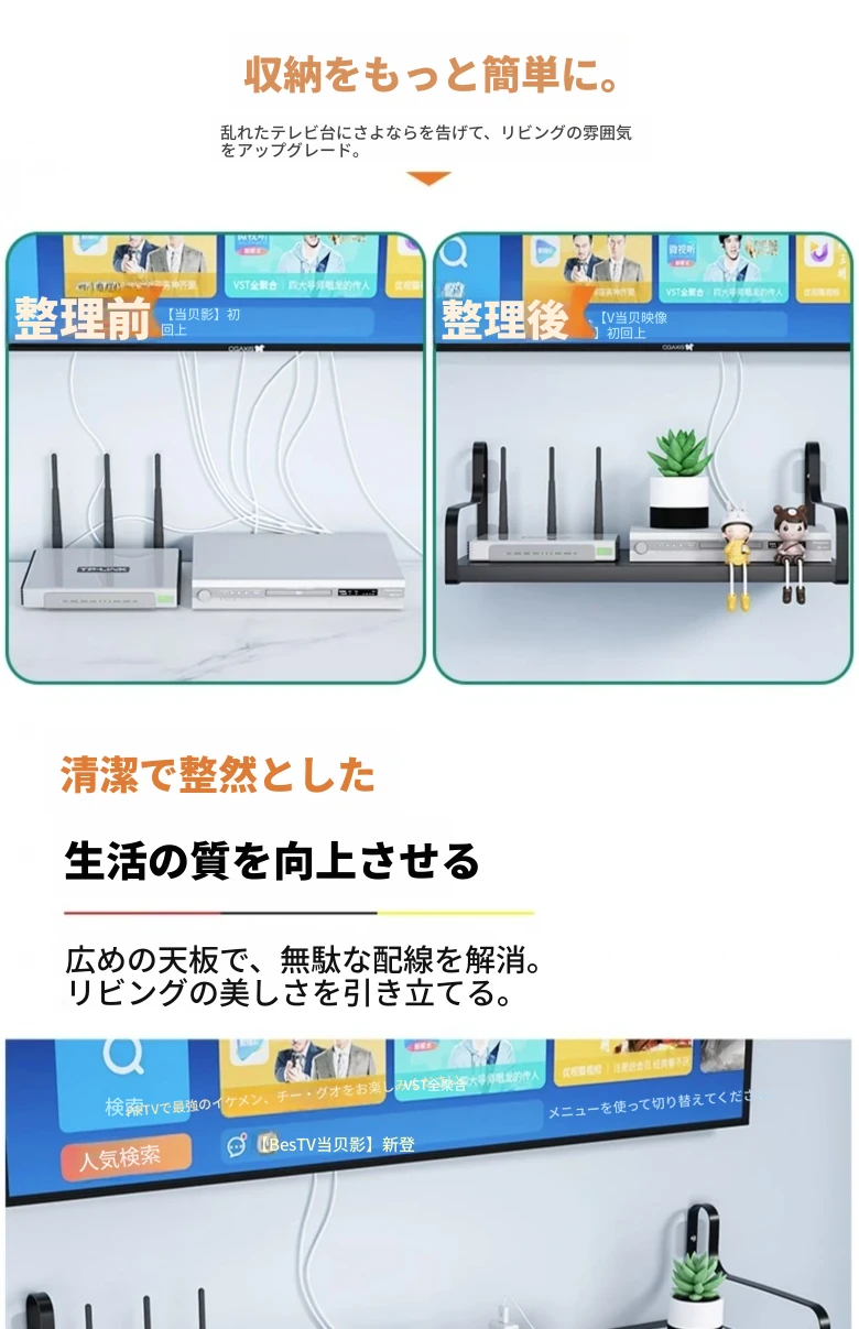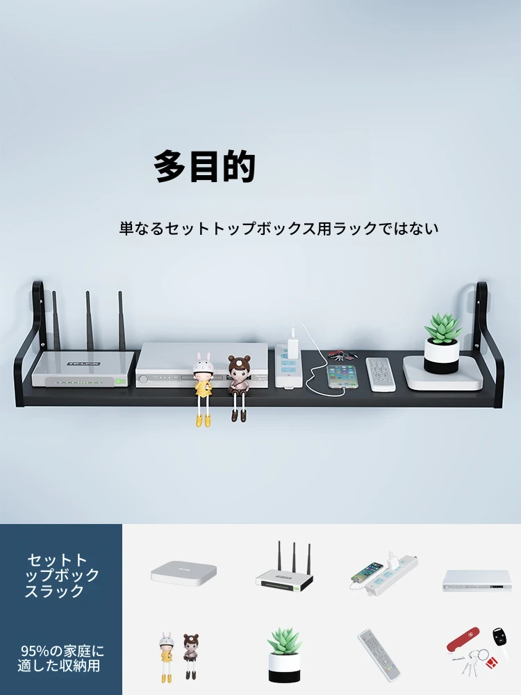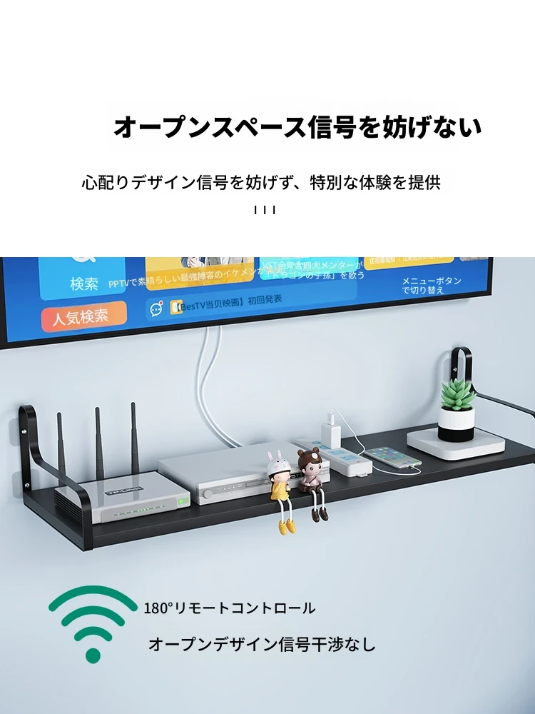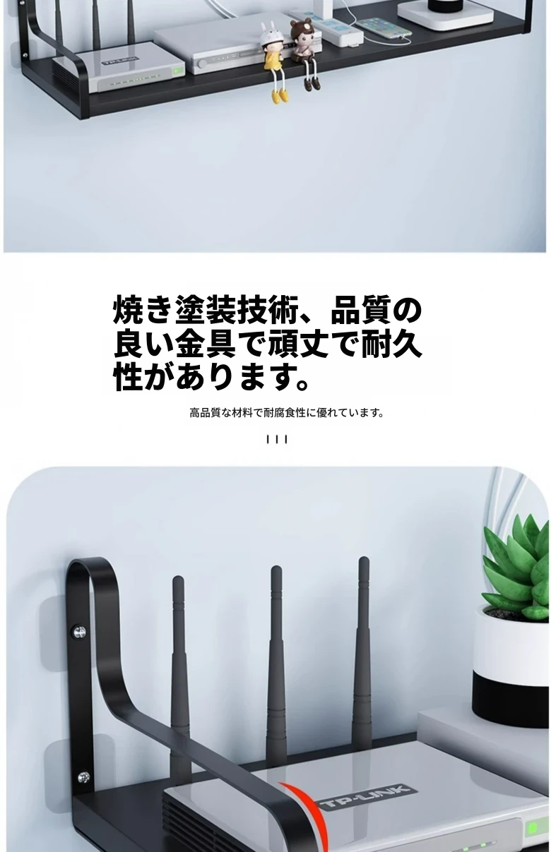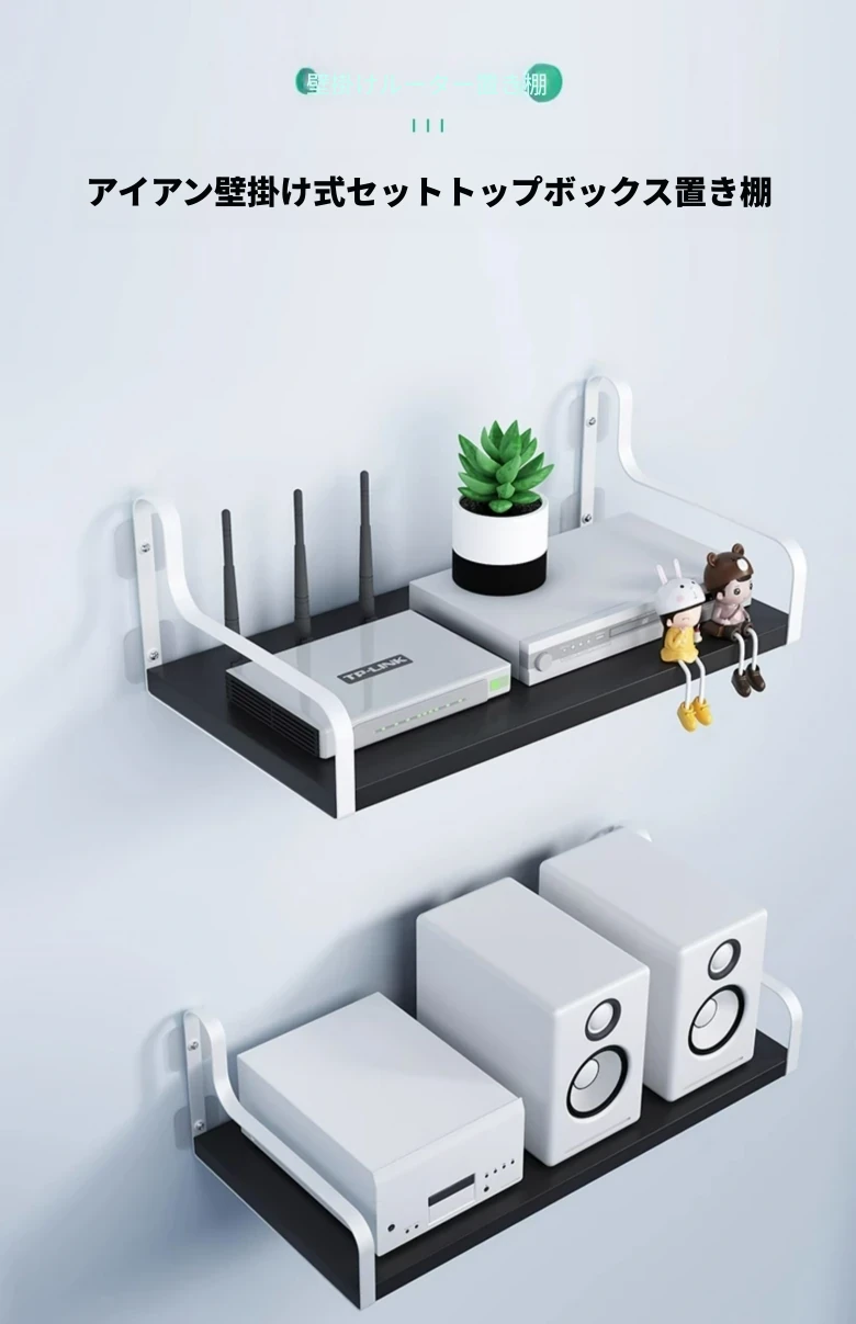 三夢Wi-Fiルーター壁掛け収納ラック - テレビボックスやデバイスをすっきり整理!ネジ不要で簡単取り付け、スタイリッシュなアイアン製でお部屋をおしゃれに演出します。