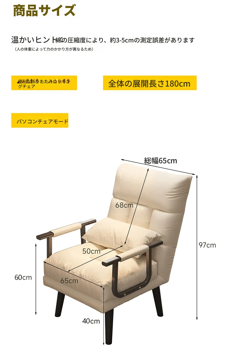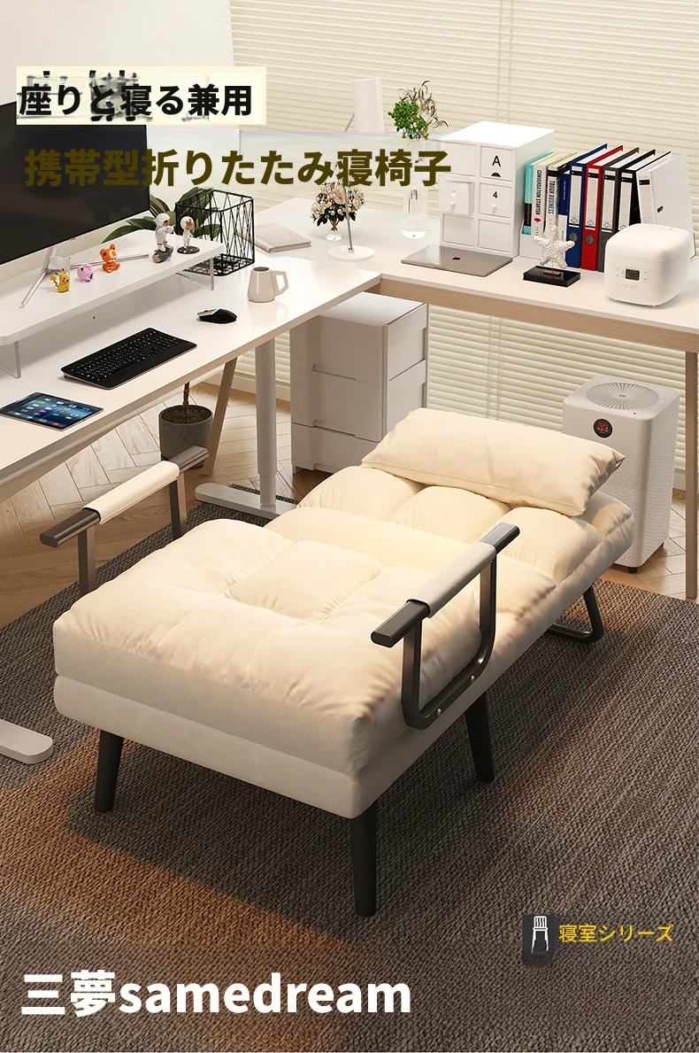 三夢折りたたみリクライニングチェア - オフィスでの昼寝や自宅でのくつろぎに最適!座ることも寝ることもできる、多機能デザインの快適なソファチェア。あなたのリラックスタイムを贅沢に演出します!